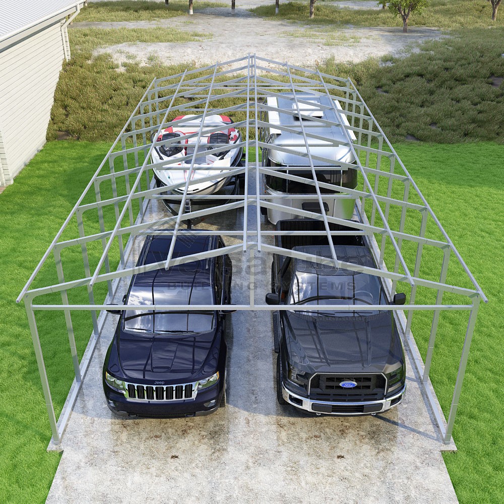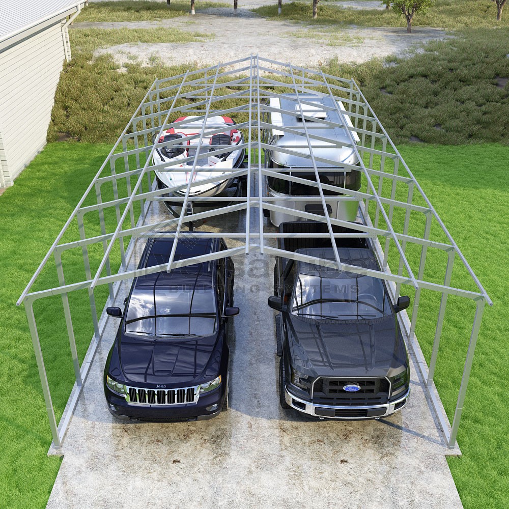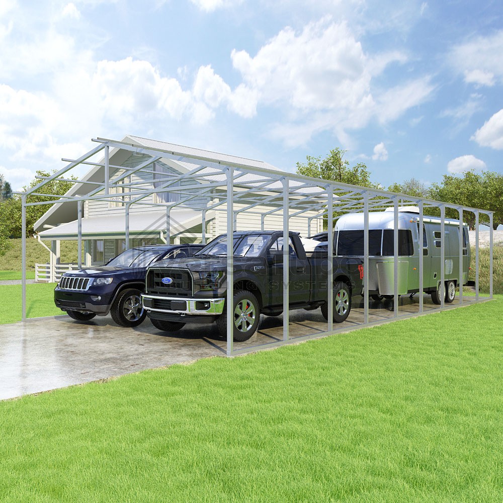 Pinnacle Series DIY carport frame kit includes roof purlins for applying sheet metal panels vertically (sold separately) in a traditional or common gable style manner.