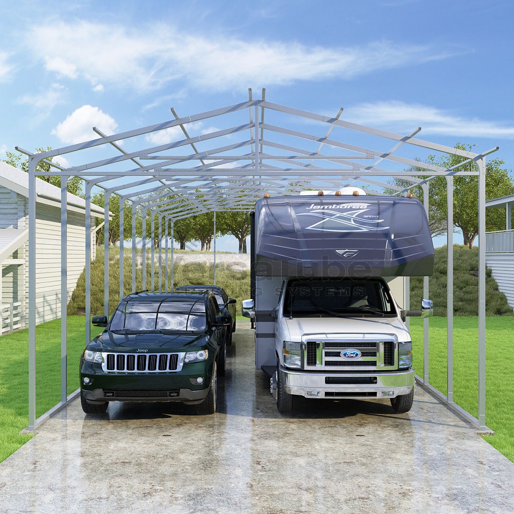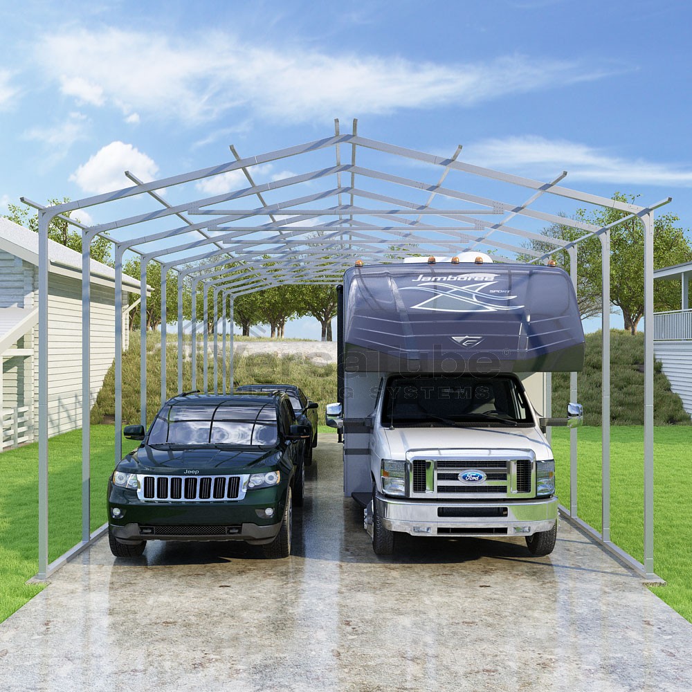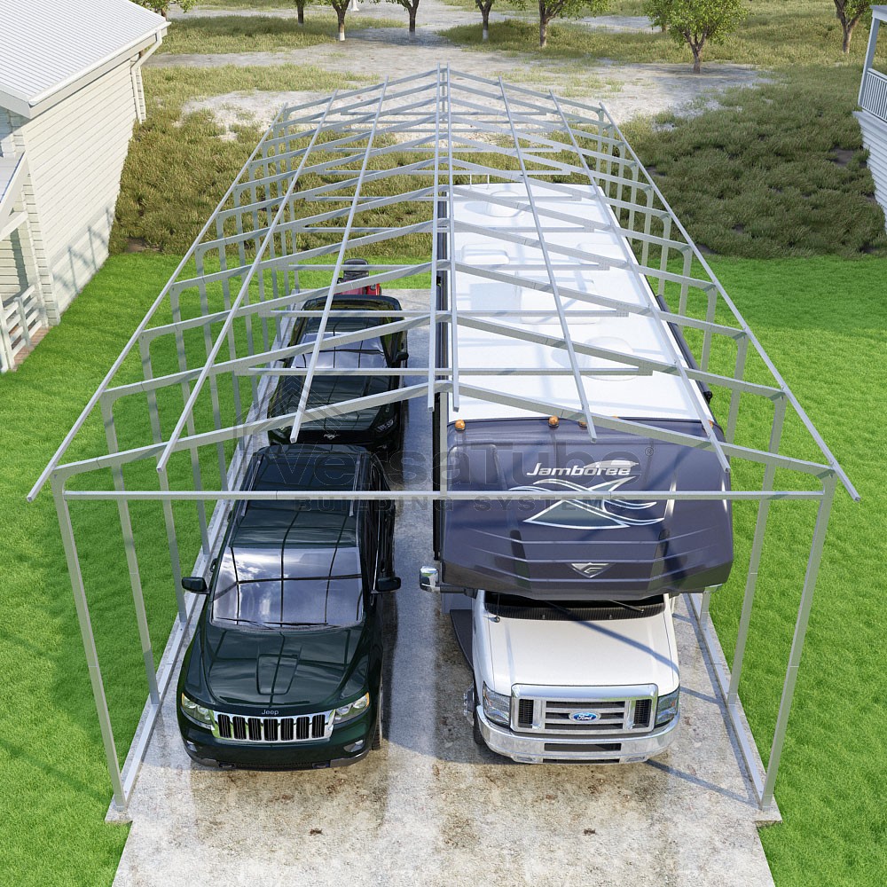 The Pinnacle design utilizes a vertical sheet metal roof application allowing for greater snow, rain, and debris run-off which is ideal for higher snow load areas. Adding a side kit run ensures structural performance in more extreme snow or high wind areas, as well, additional protection from elements entering from the sides. With the VersaTube Slip-Fit frame system, you can get your carport frame kit assembled in a single afternoon using common tools.