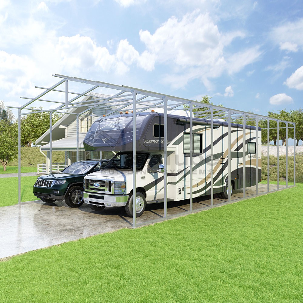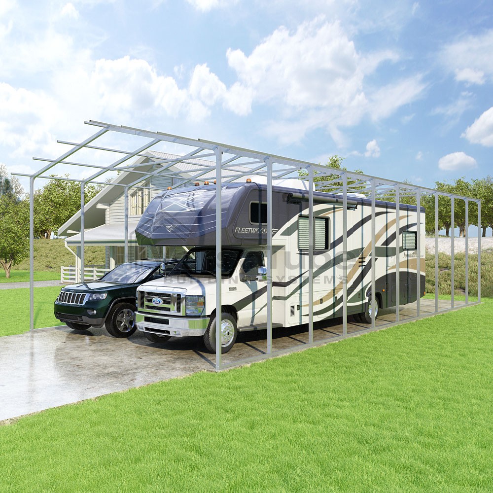 Pinnacle Series DIY carport frame kit includes roof purlins for applying sheet metal panels vertically (sold separately) in a traditional or common gable style manner.