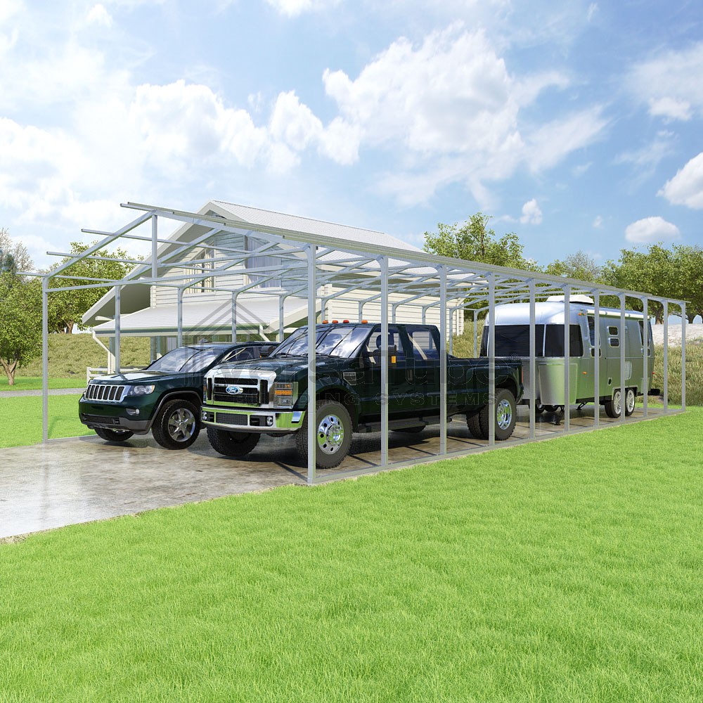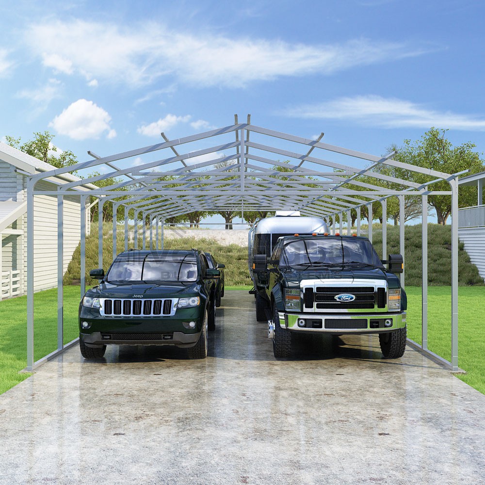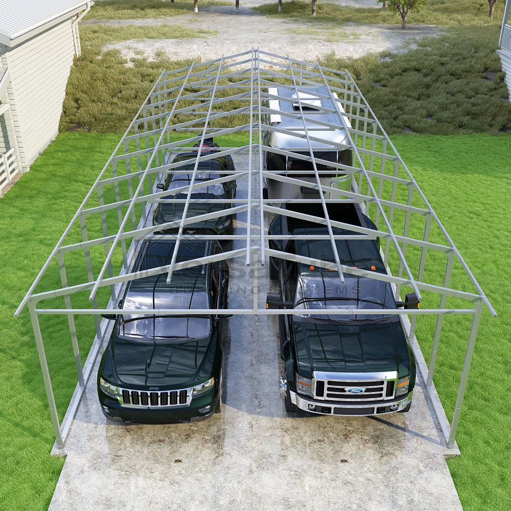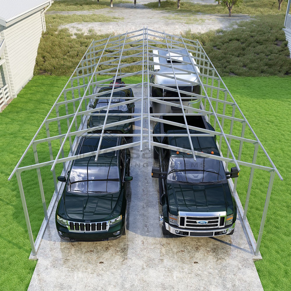 Pinnacle Series DIY carport frame kit includes roof purlins for applying sheet metal panels vertically (sold separately) in a traditional or common gable style manner.