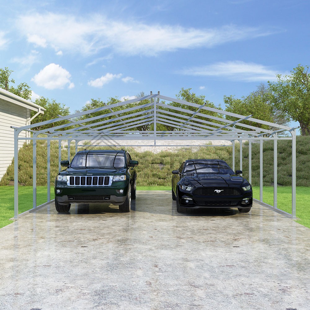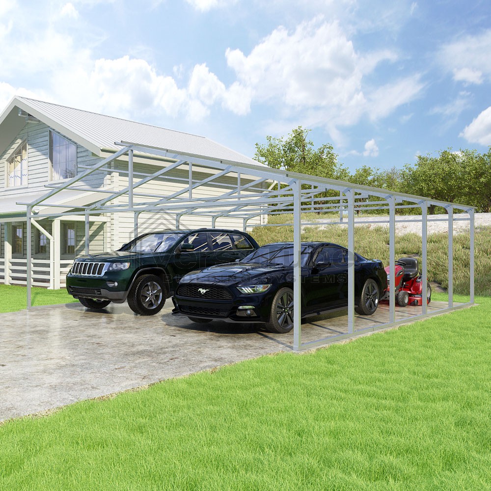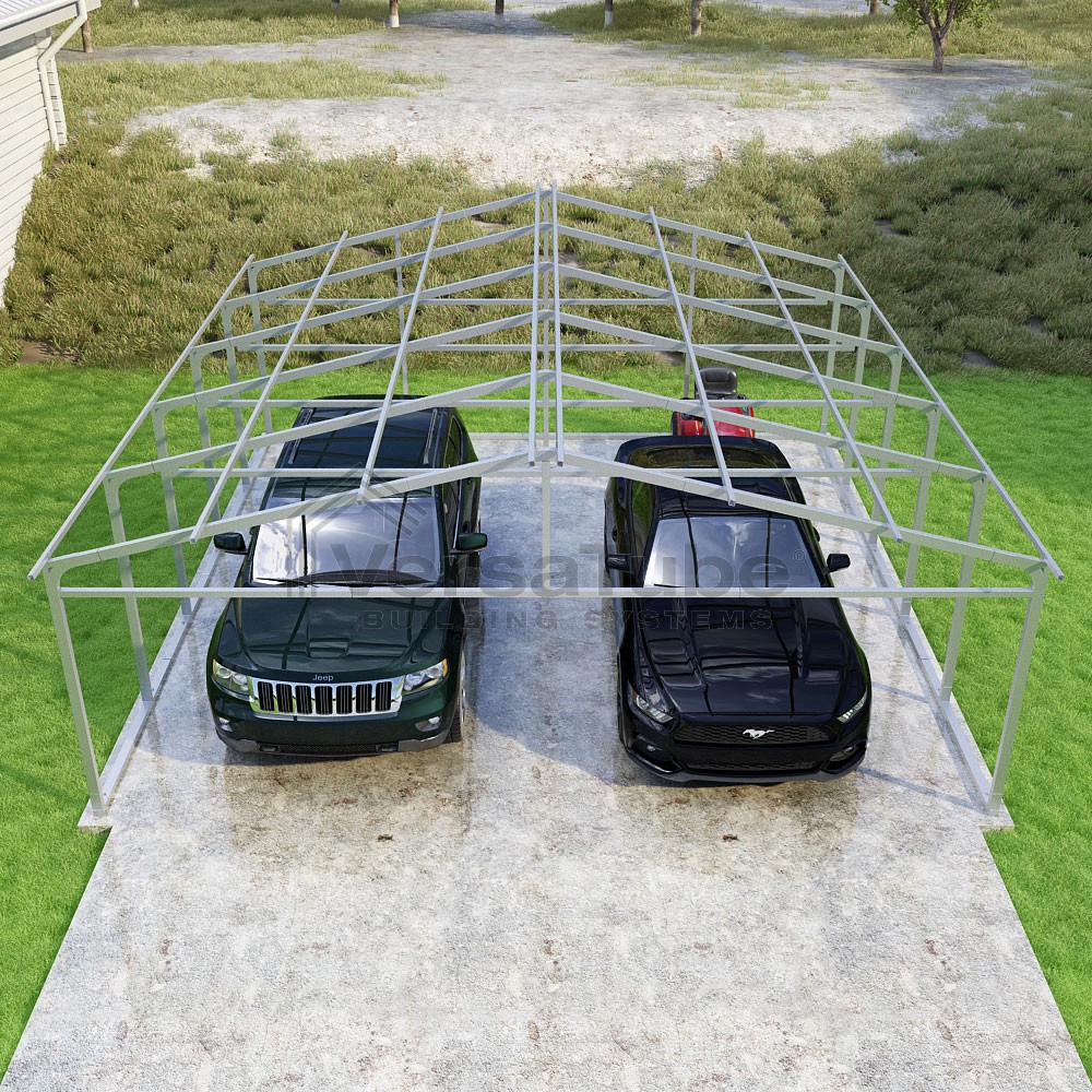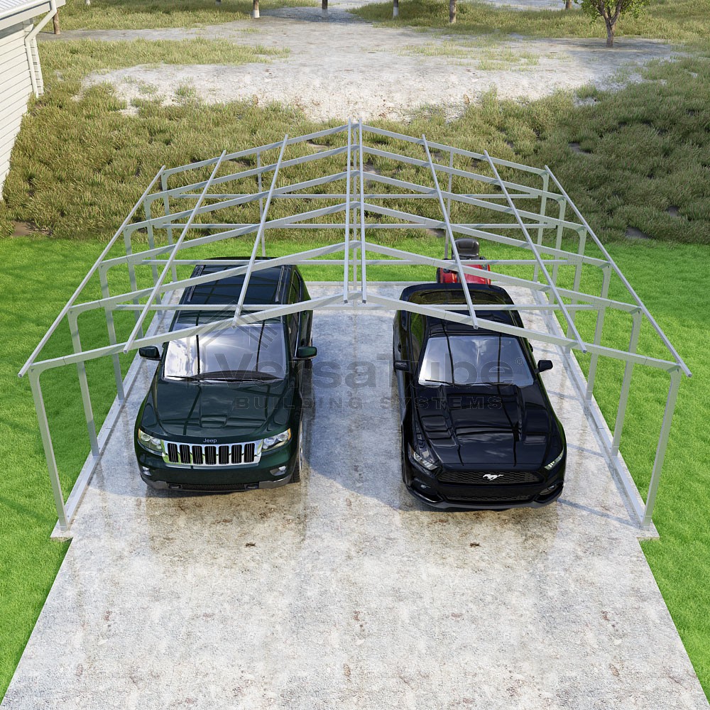 Pinnacle Series DIY carport frame kit includes roof purlins for applying sheet metal panels vertically (sold separately) in a traditional or common gable style manner.