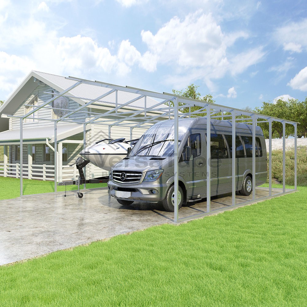 The Pinnacle design utilizes a vertical sheet metal roof application allowing for greater snow, rain, and debris run-off which is ideal for higher snow load areas. Adding a side kit run ensures structural performance in more extreme snow or high wind areas, as well, additional protection from elements entering from the sides. With the VersaTube Slip-Fit frame system, you can get your carport frame kit assembled in a single afternoon using common tools.