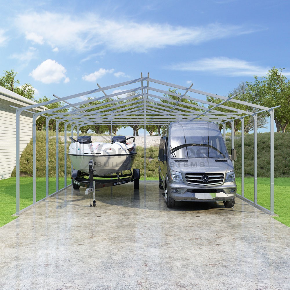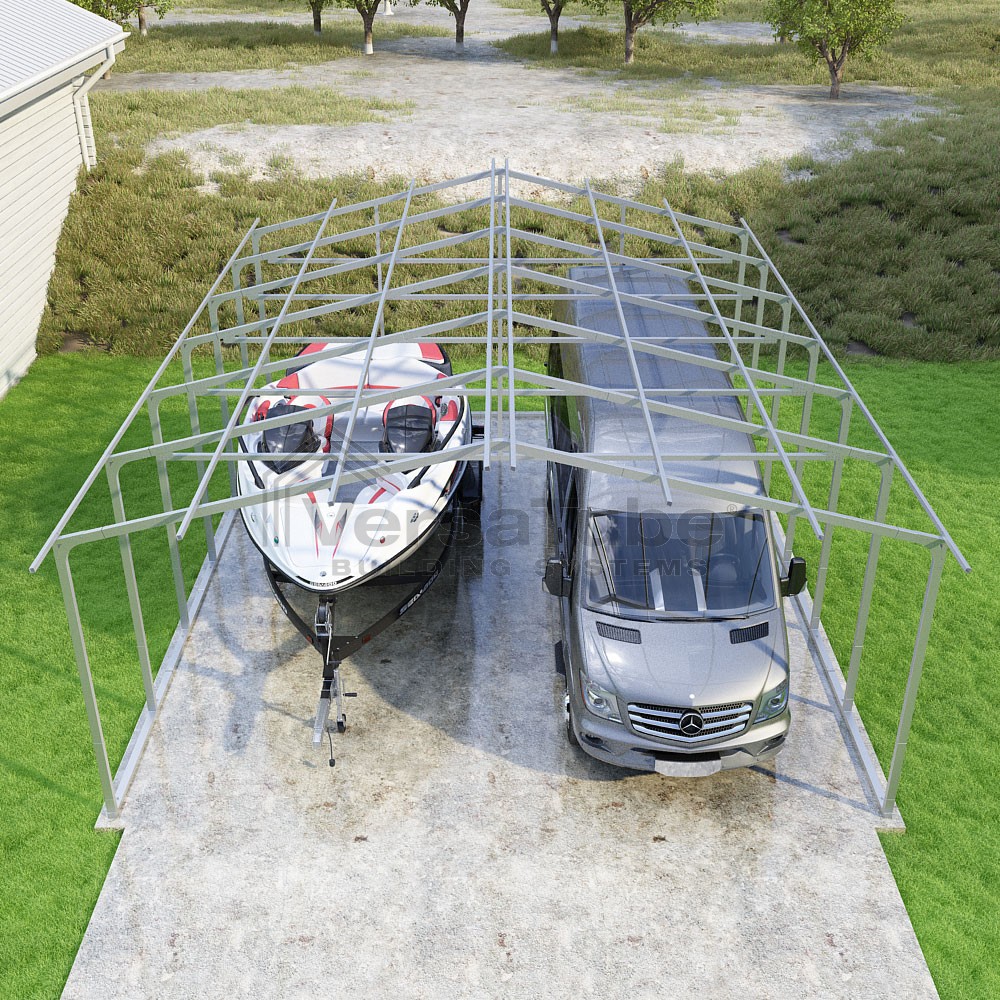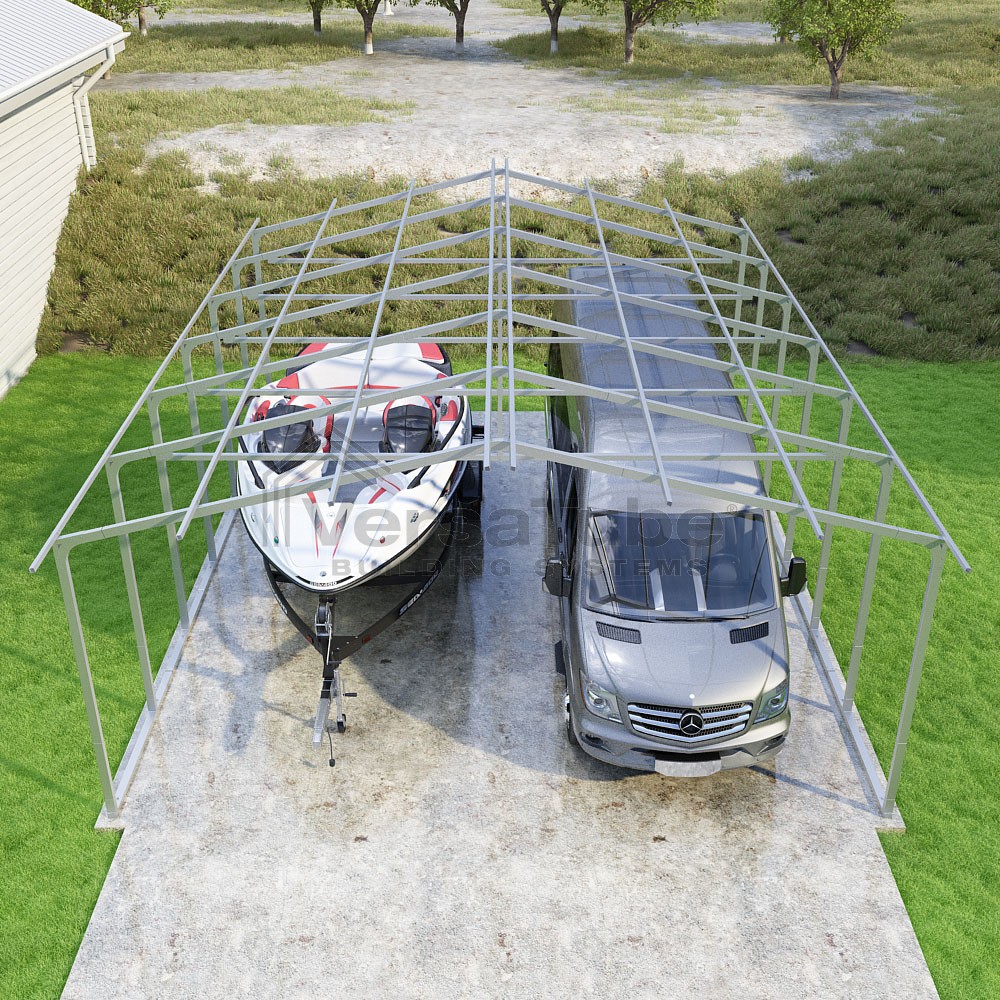 Pinnacle Series DIY carport frame kit includes roof purlins for applying sheet metal panels vertically (sold separately) in a traditional or common gable style manner.