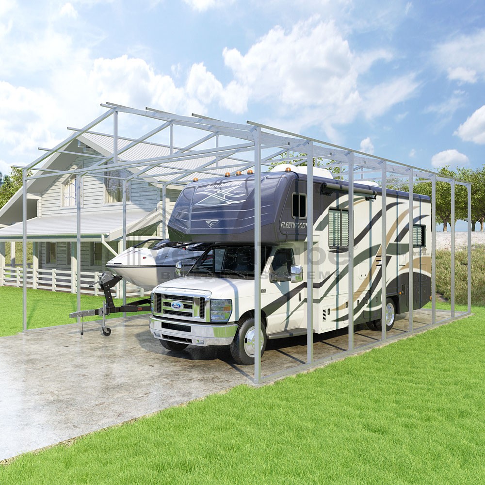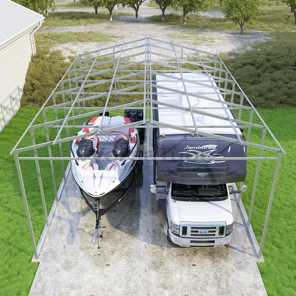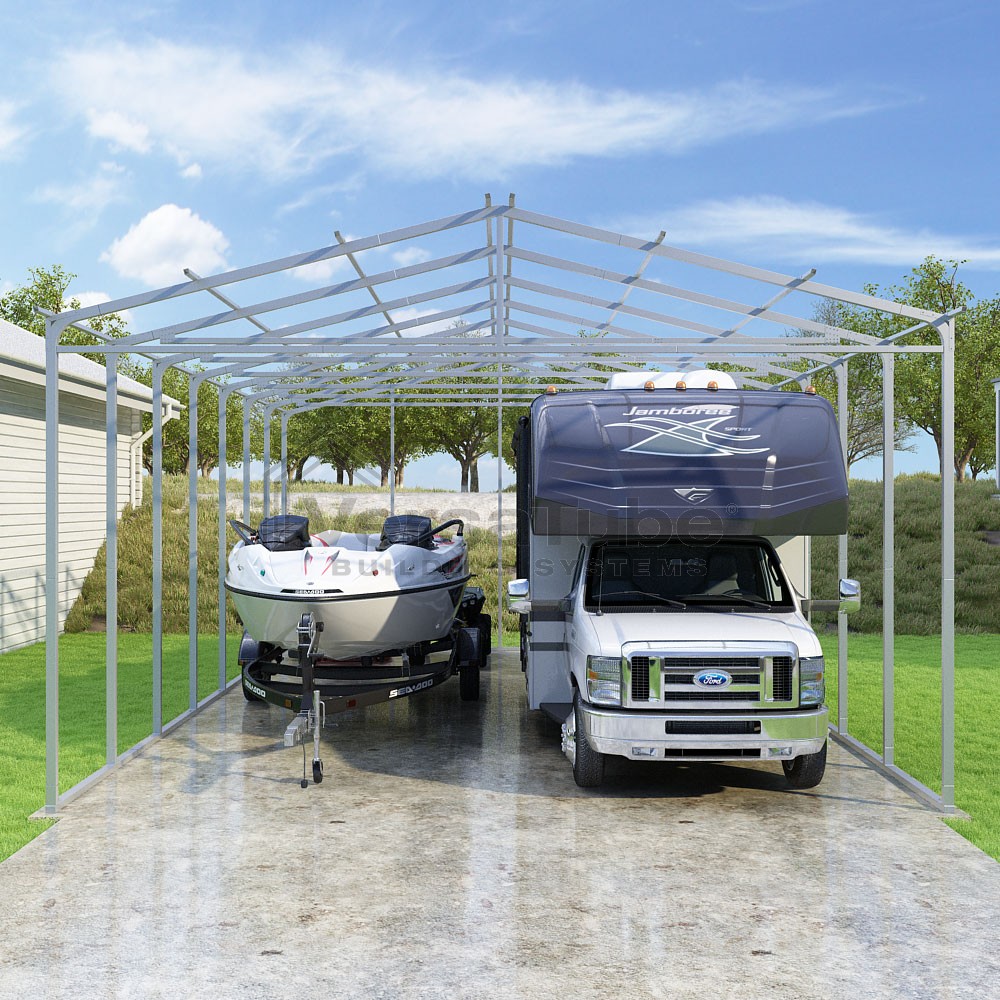 Pinnacle Series DIY carport frame kit includes roof purlins for applying sheet metal panels vertically (sold separately) in a traditional or common gable style manner.