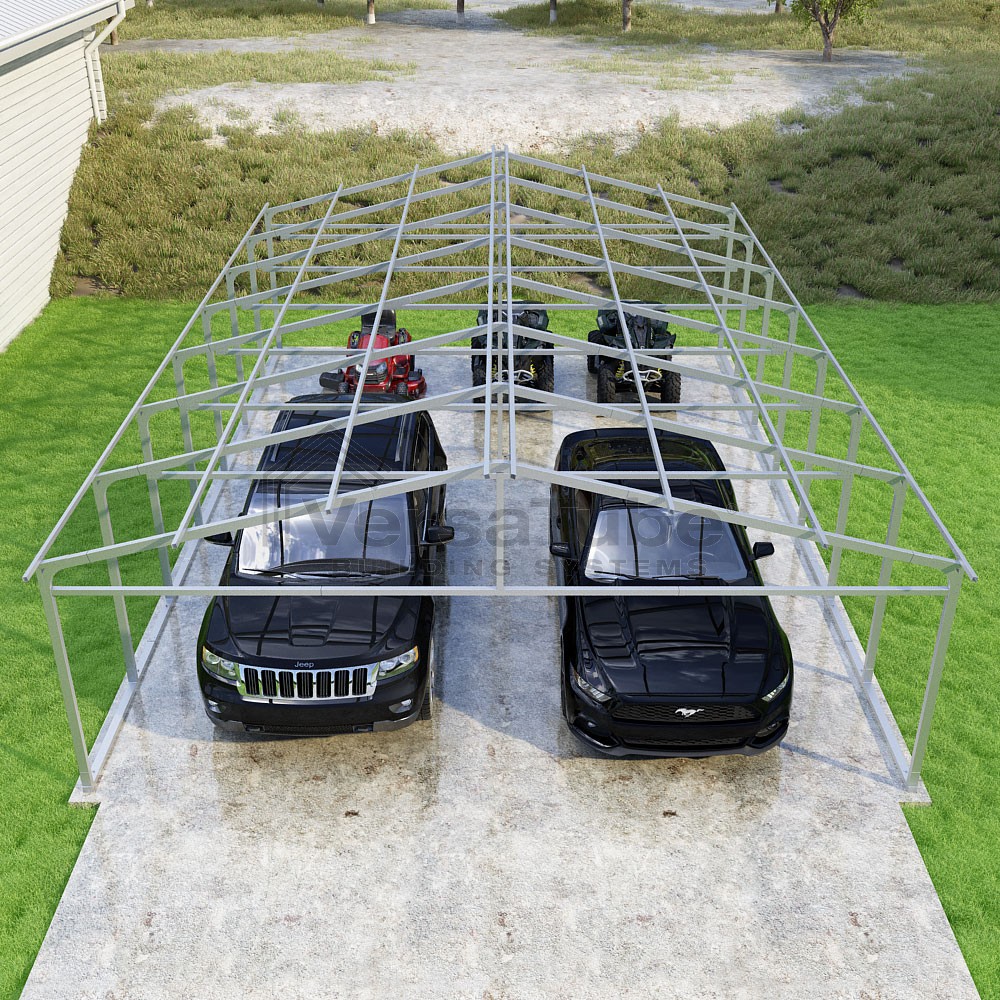 The Pinnacle design utilizes a vertical sheet metal roof application allowing for greater snow, rain, and debris run-off which is ideal for higher snow load areas. Adding a side kit run ensures structural performance in more extreme snow or high wind areas, as well, additional protection from elements entering from the sides. With the VersaTube Slip-Fit frame system, you can get your carport frame kit assembled in a single afternoon using common tools.