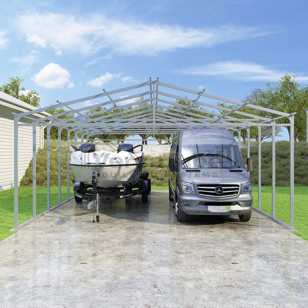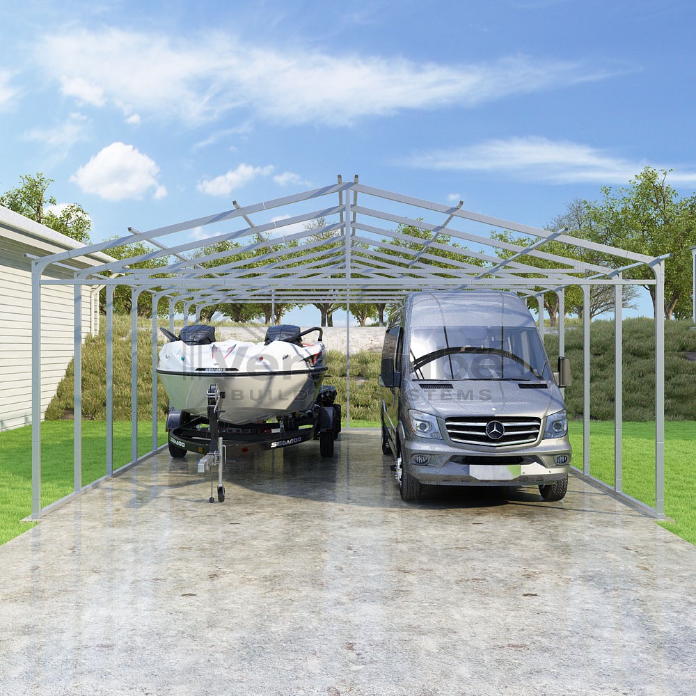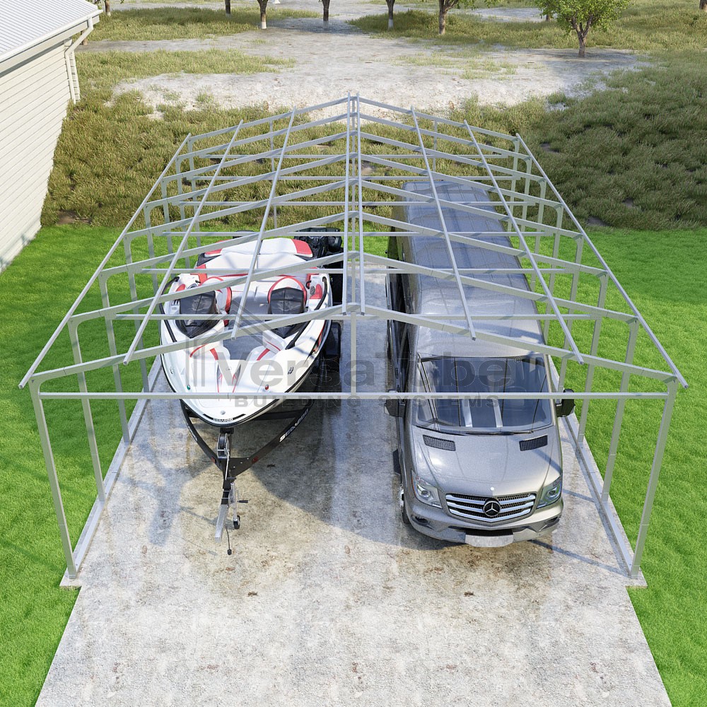 Pinnacle Series DIY carport frame kit includes roof purlins for applying sheet metal panels vertically (sold separately) in a traditional or common gable style manner.