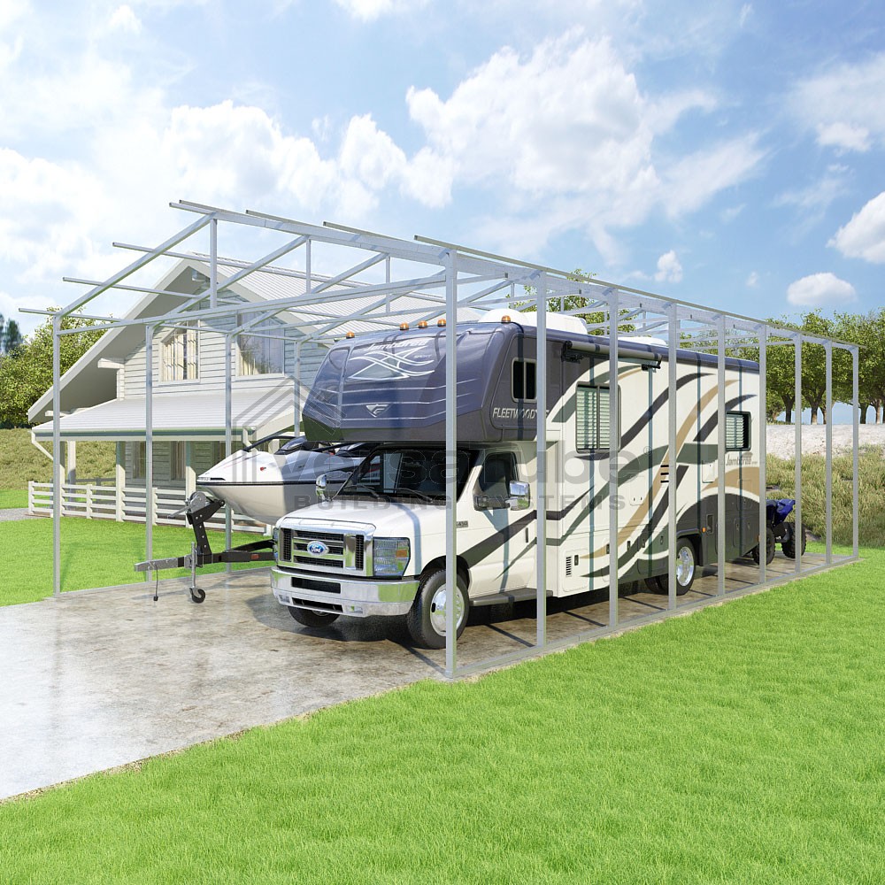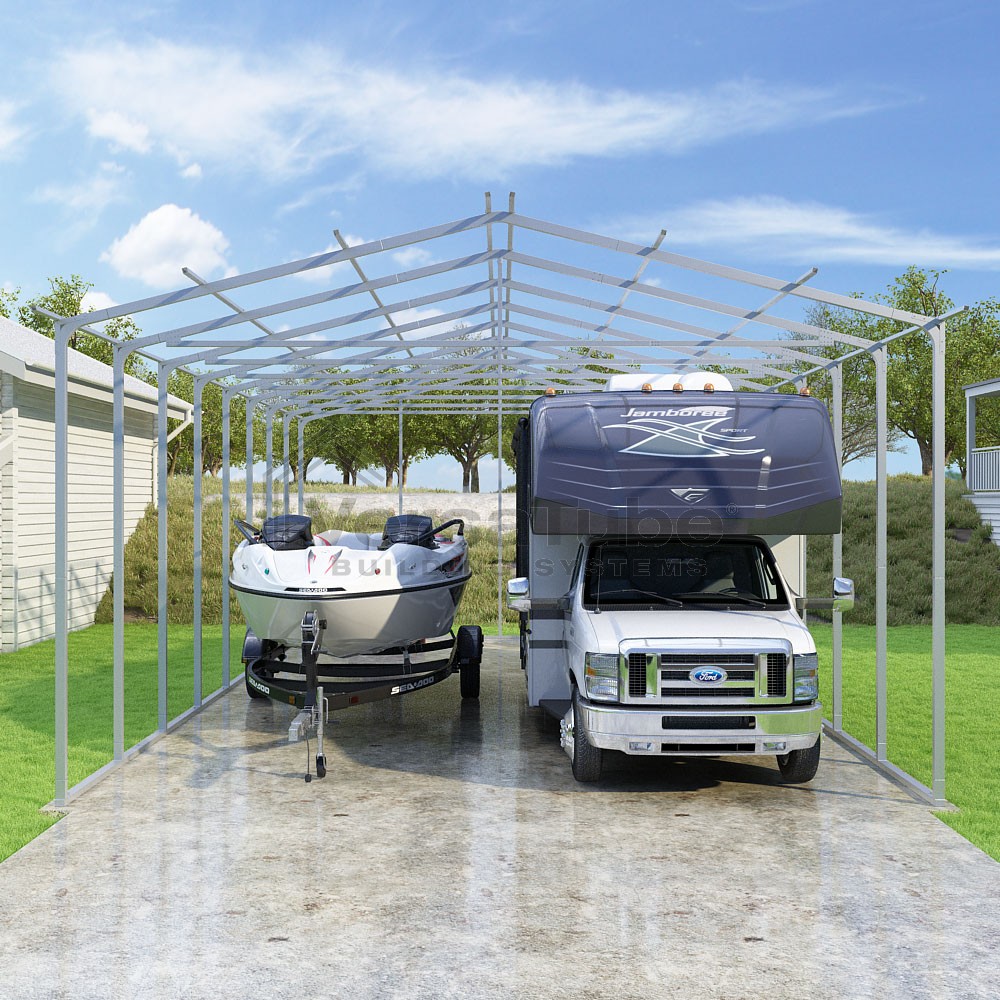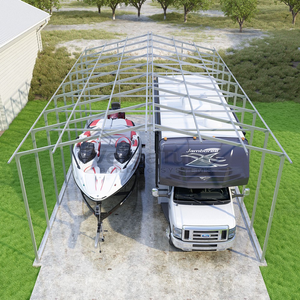 Pinnacle Series DIY carport frame kit includes roof purlins for applying sheet metal panels vertically (sold separately) in a traditional or common gable style manner.
