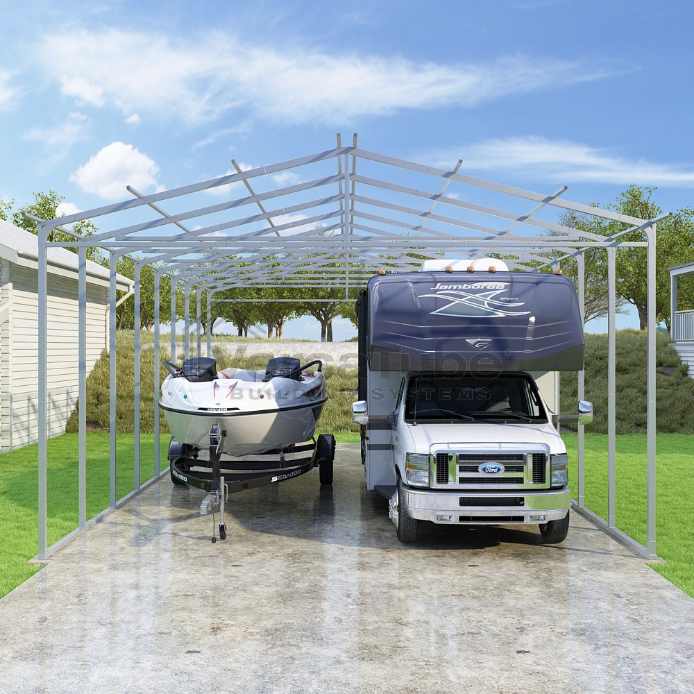 The Pinnacle design utilizes a vertical sheet metal roof application allowing for greater snow, rain, and debris run-off which is ideal for higher snow load areas. Adding a side kit run ensures structural performance in more extreme snow or high wind areas, as well, additional protection from elements entering from the sides. With the VersaTube Slip-Fit frame system, you can get your carport frame kit assembled in a single afternoon using common tools.