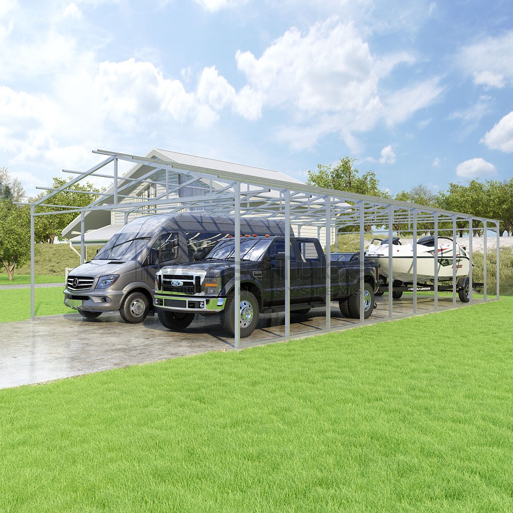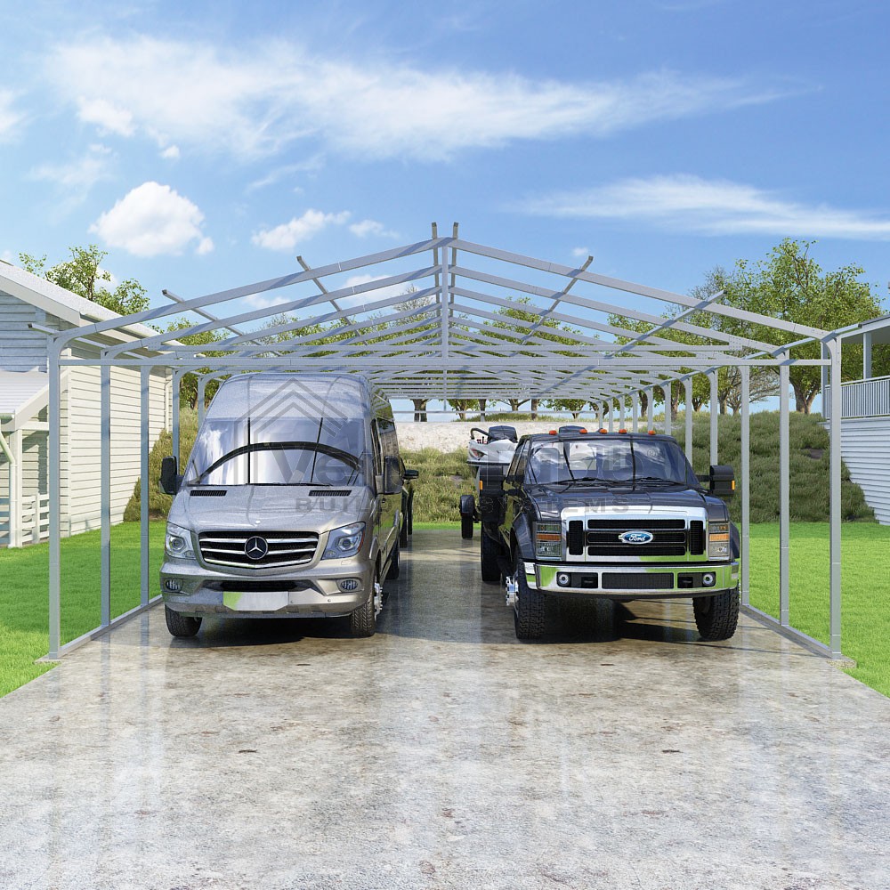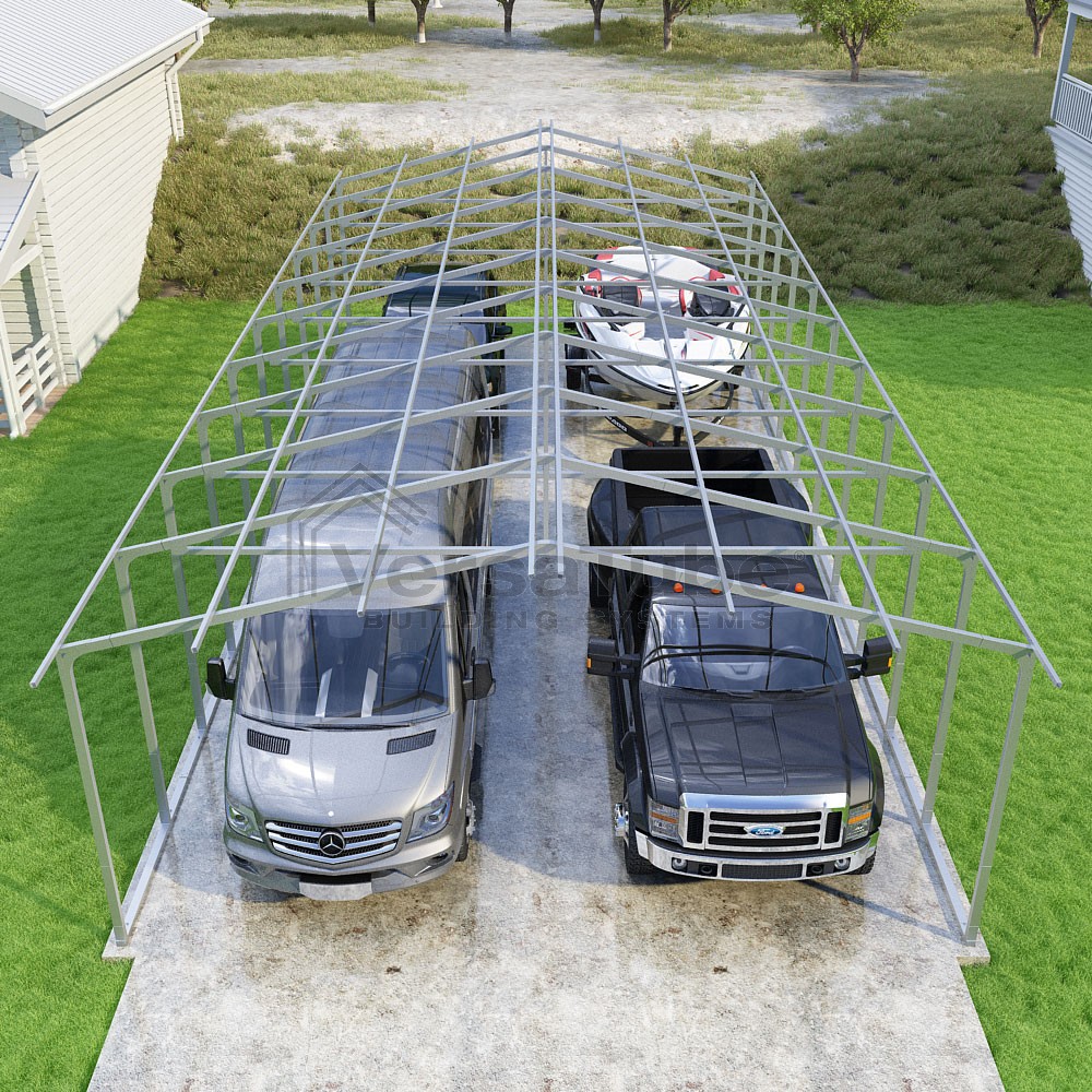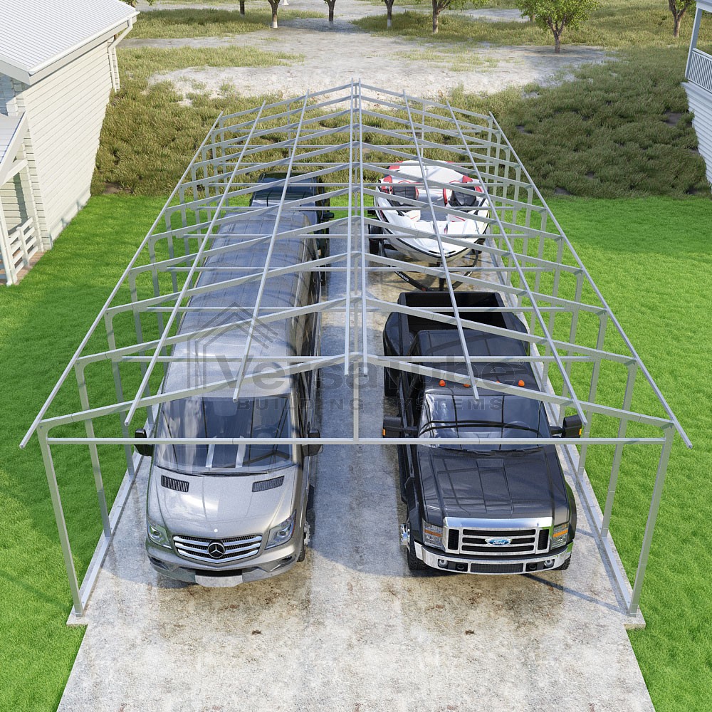 Pinnacle Series DIY carport frame kit includes roof purlins for applying sheet metal panels vertically (sold separately) in a traditional or common gable style manner.
