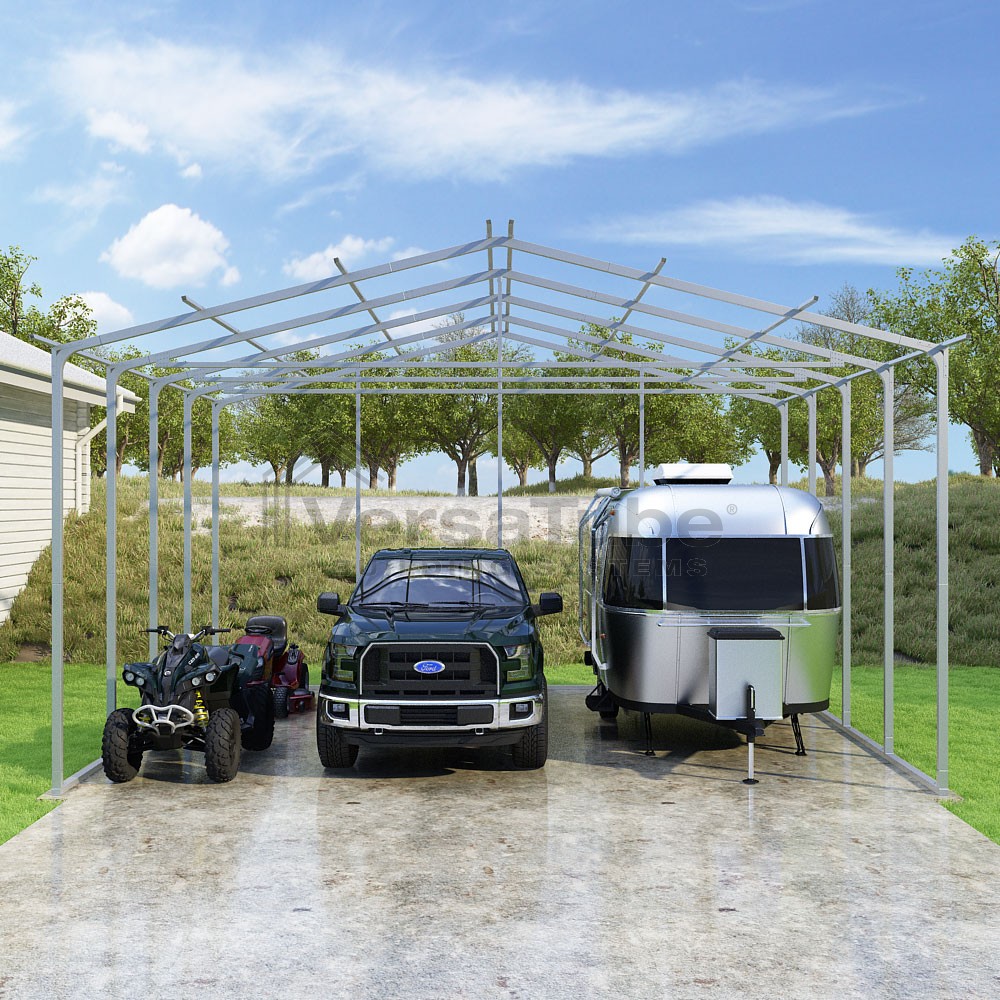 The Pinnacle design utilizes a vertical sheet metal roof application allowing for greater snow, rain, and debris run-off which is ideal for higher snow load areas. Adding a side kit run ensures structural performance in more extreme snow or high wind areas, as well, additional protection from elements entering from the sides. With the VersaTube Slip-Fit frame system, you can get your carport frame kit assembled in a single afternoon using common tools.