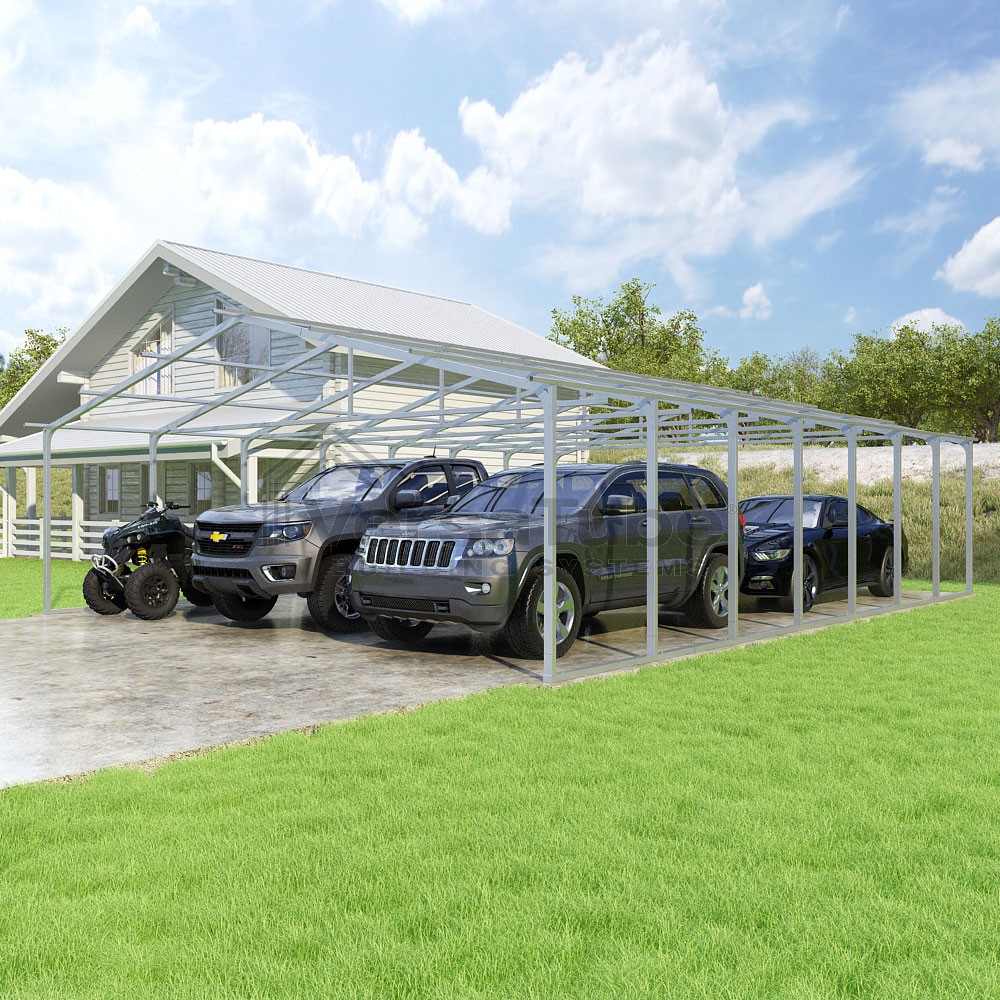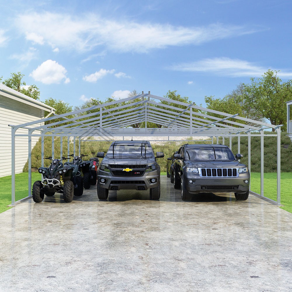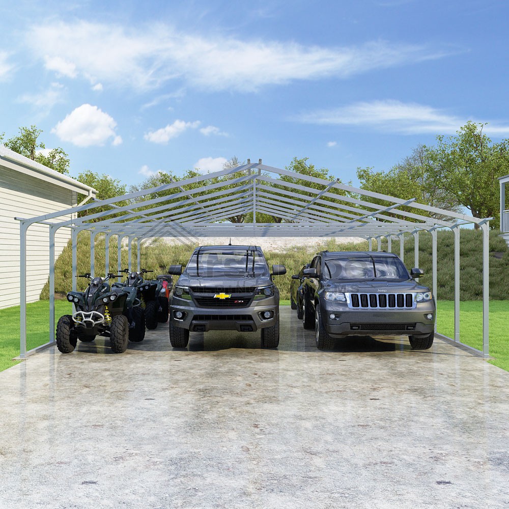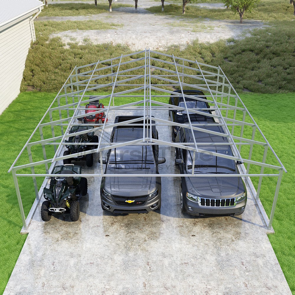 Pinnacle Series DIY carport frame kit includes roof purlins for applying sheet metal panels vertically (sold separately) in a traditional or common gable style manner.