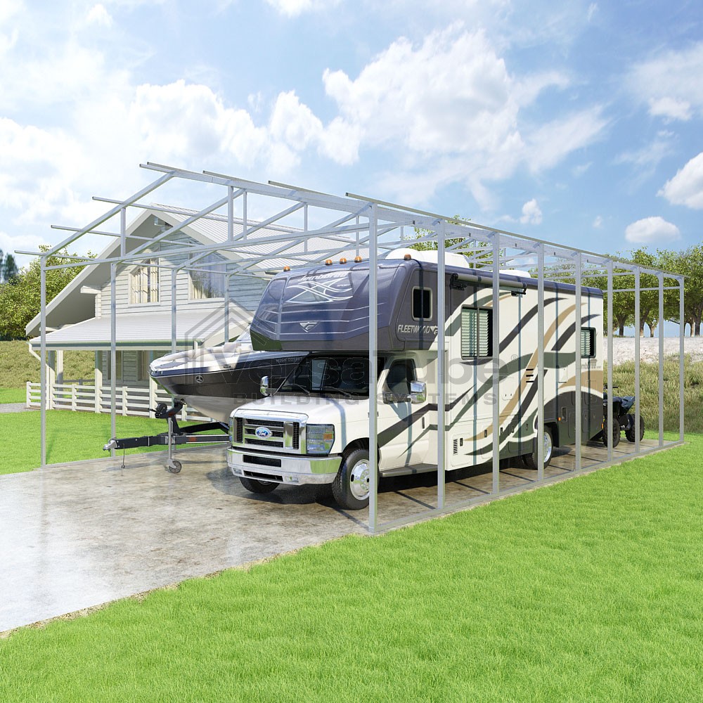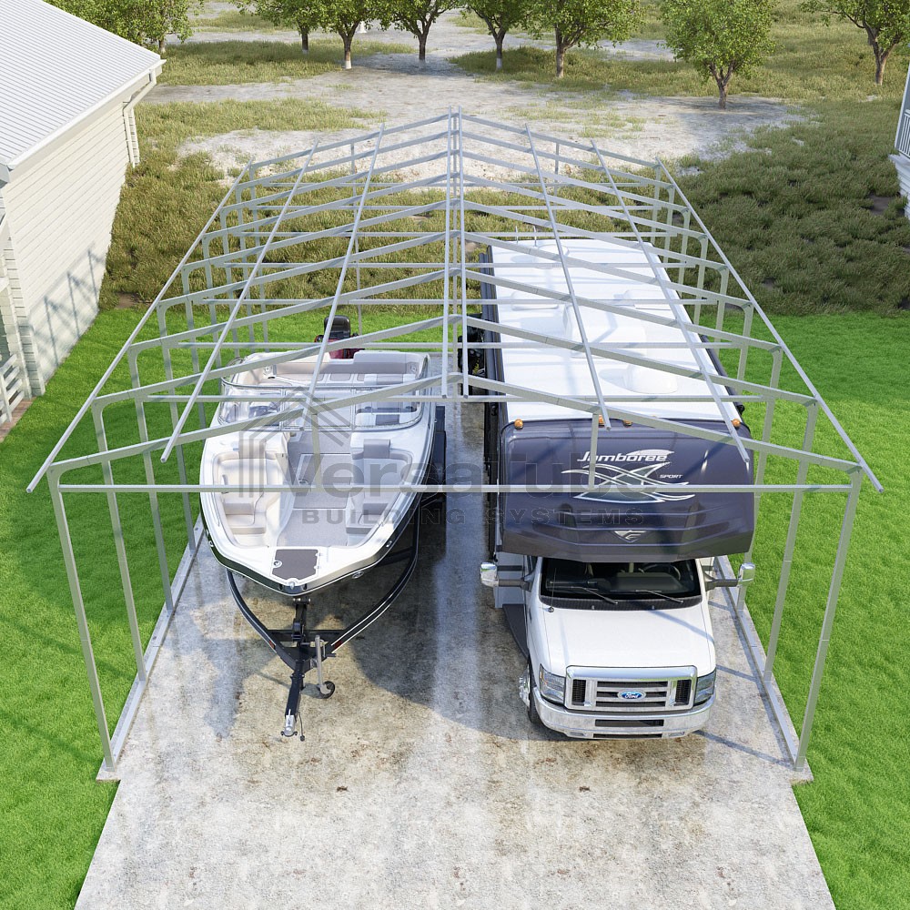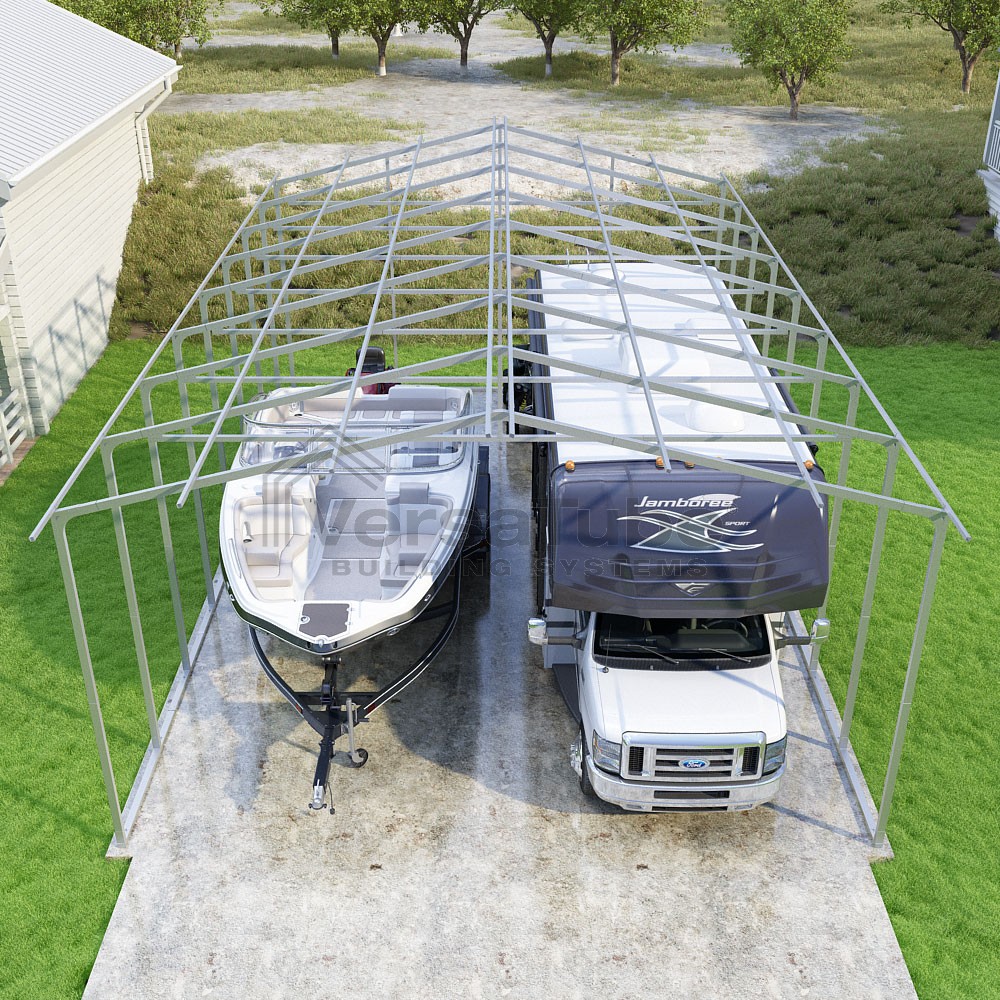 Pinnacle Series DIY carport frame kit includes roof purlins for applying sheet metal panels vertically (sold separately) in a traditional or common gable style manner.