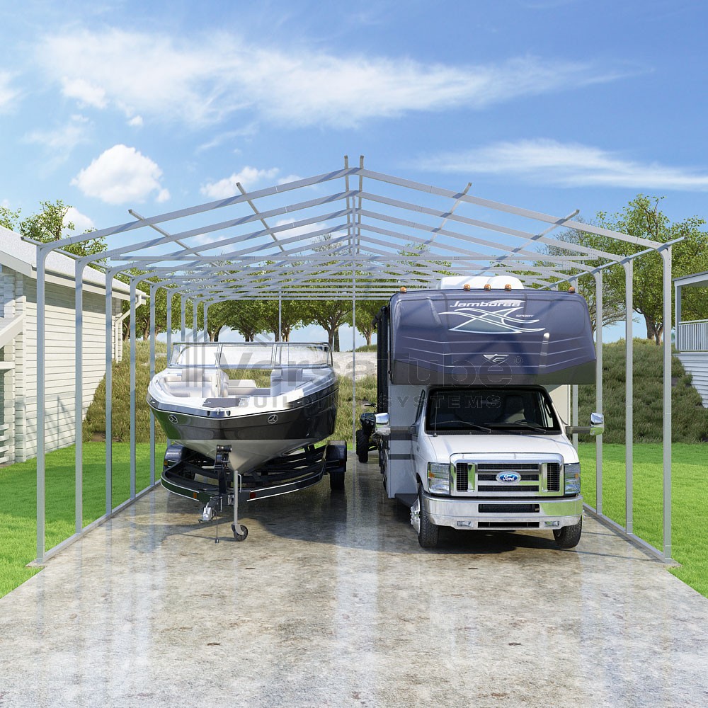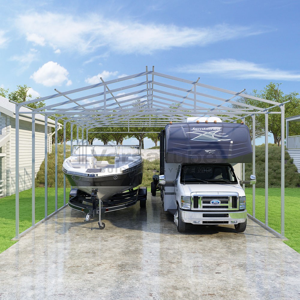 The Pinnacle design utilizes a vertical sheet metal roof application allowing for greater snow, rain, and debris run-off which is ideal for higher snow load areas. Adding a side kit run ensures structural performance in more extreme snow or high wind areas, as well, additional protection from elements entering from the sides. With the VersaTube Slip-Fit frame system, you can get your carport frame kit assembled in a single afternoon using common tools.