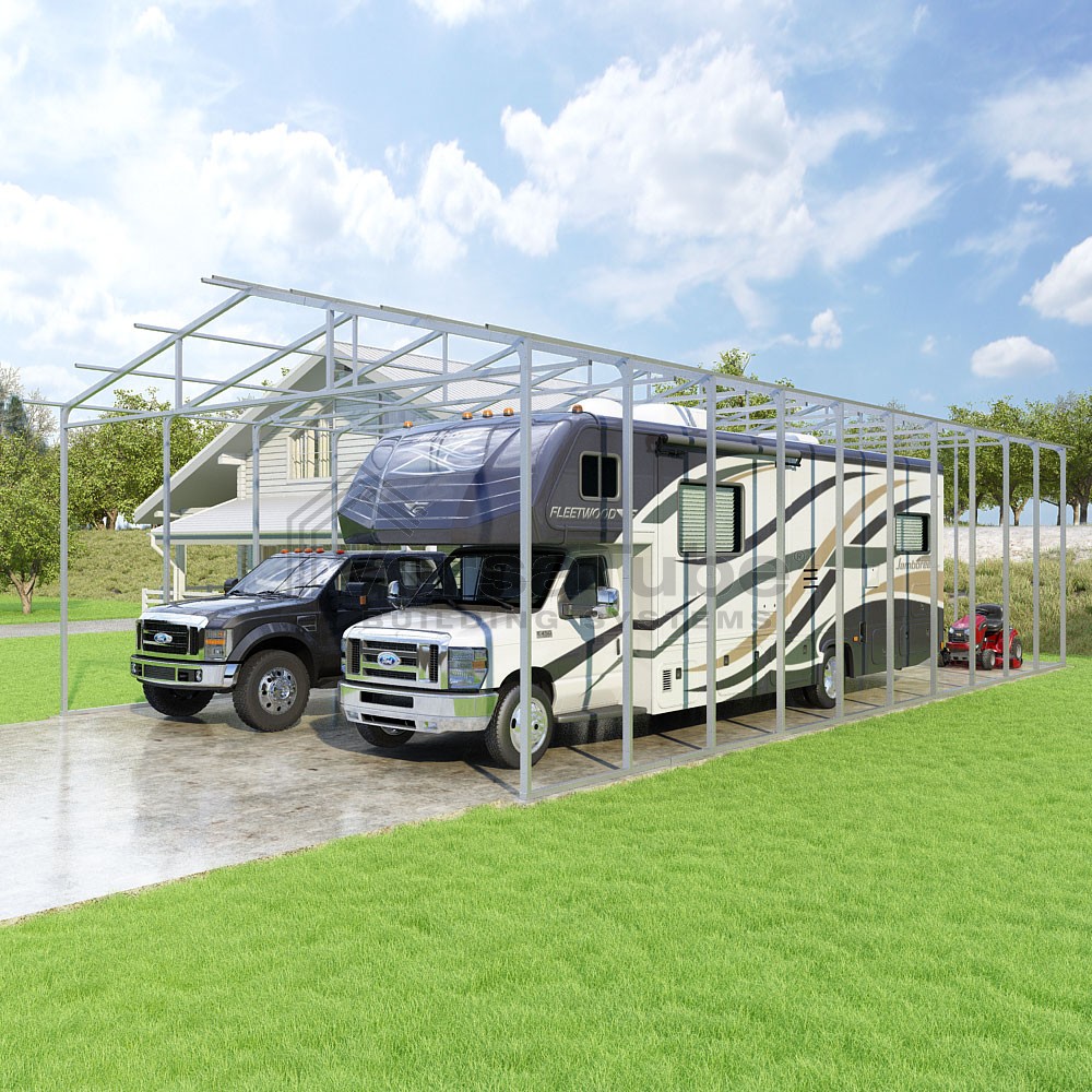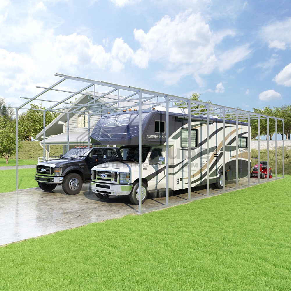 Pinnacle Series DIY carport frame kit includes roof purlins for applying sheet metal panels vertically (sold separately) in a traditional or common gable style manner.