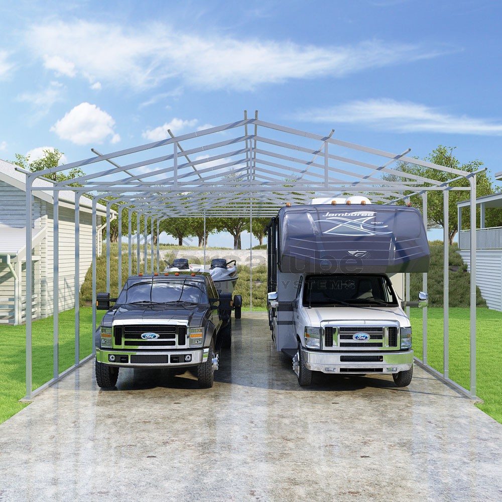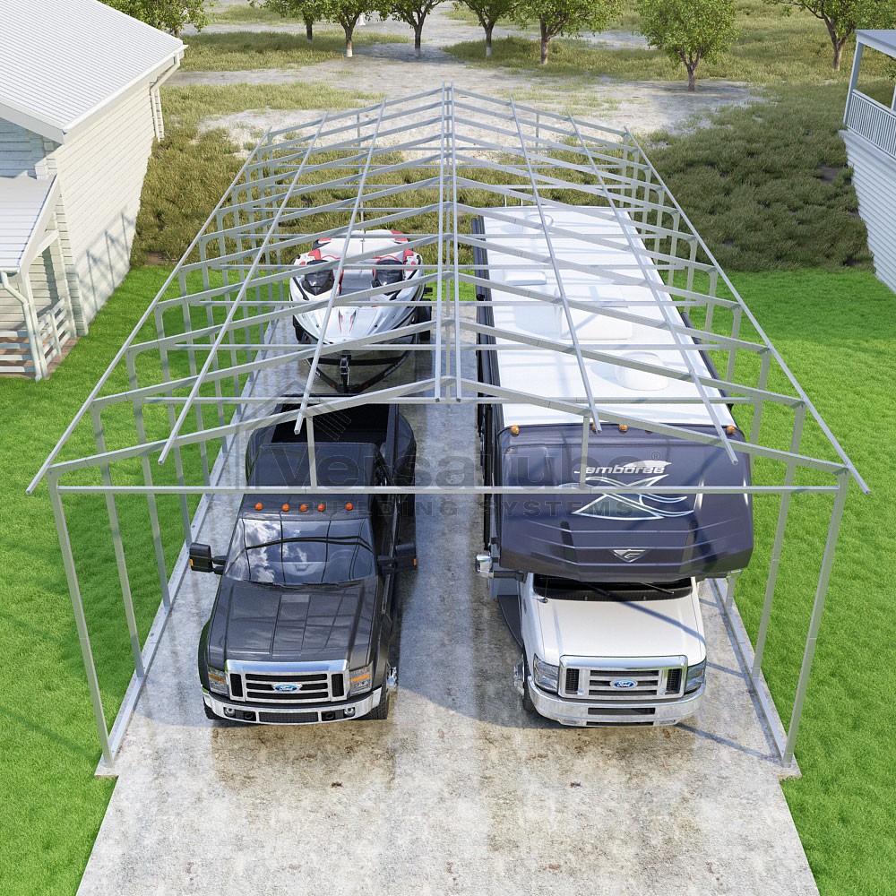The Pinnacle design utilizes a vertical sheet metal roof application allowing for greater snow, rain, and debris run-off which is ideal for higher snow load areas. Adding a side kit run ensures structural performance in more extreme snow or high wind areas, as well, additional protection from elements entering from the sides. With the VersaTube Slip-Fit frame system, you can get your carport frame kit assembled in a single afternoon using common tools.