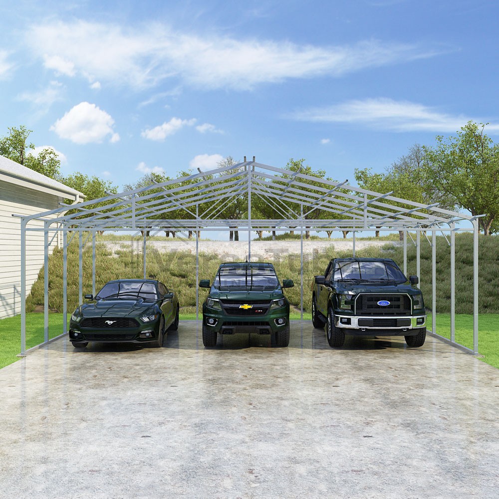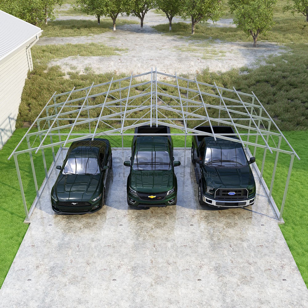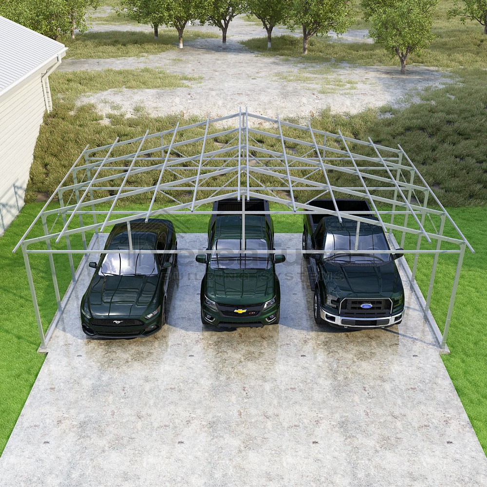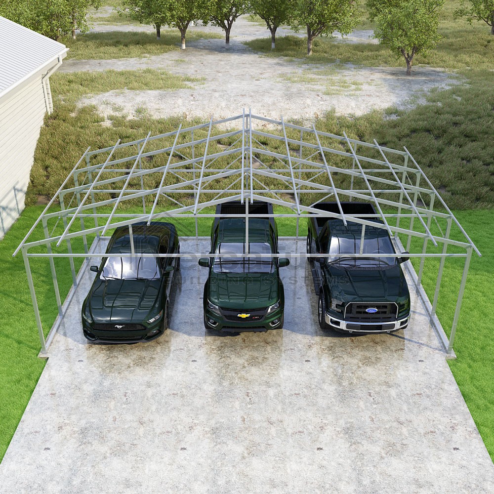 Pinnacle Series DIY carport frame kit includes roof purlins for applying sheet metal panels vertically (sold separately) in a traditional or common gable style manner.