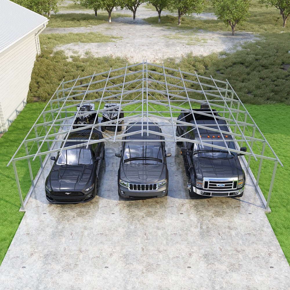 Pinnacle Series DIY carport frame kit includes roof purlins for applying sheet metal panels vertically (sold separately) in a traditional or common gable style manner.