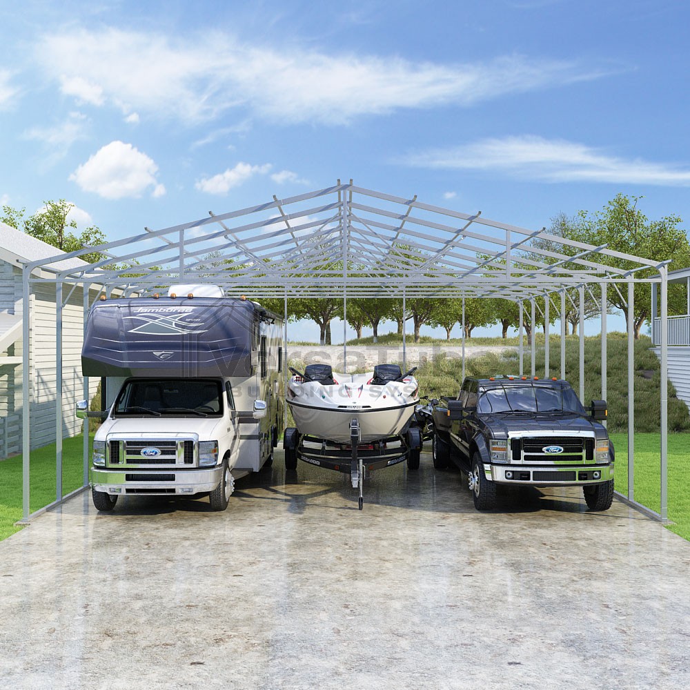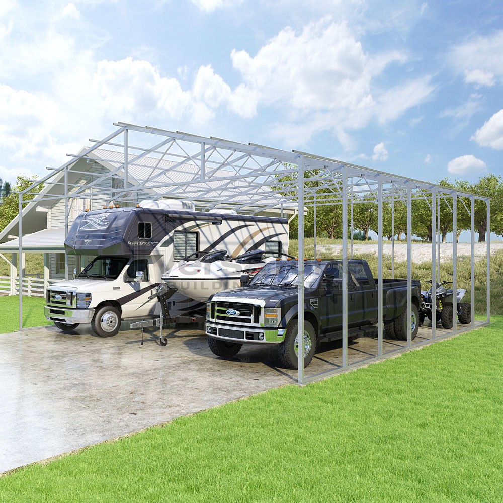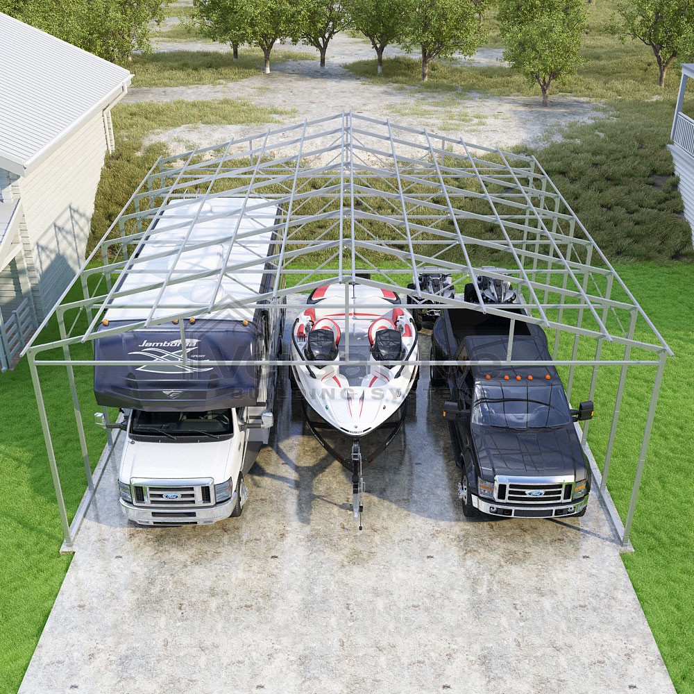 Pinnacle Series DIY carport frame kit includes roof purlins for applying sheet metal panels vertically (sold separately) in a traditional or common gable style manner.