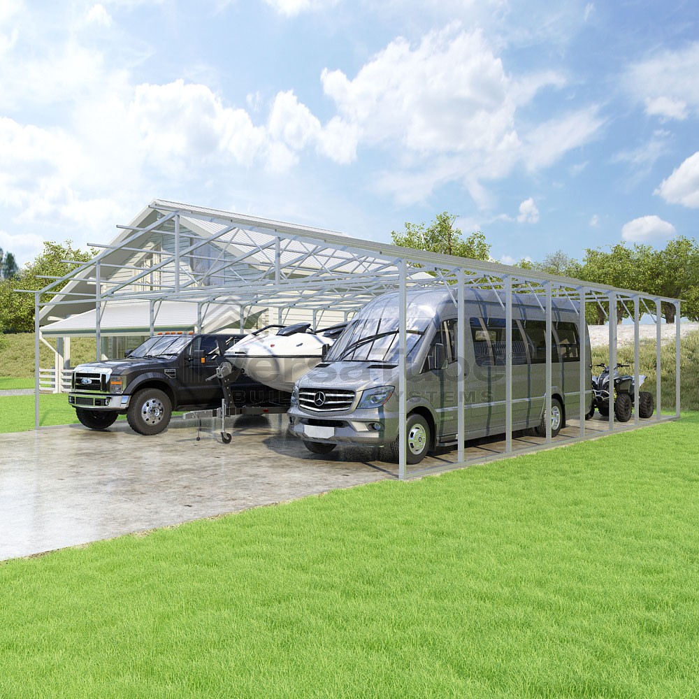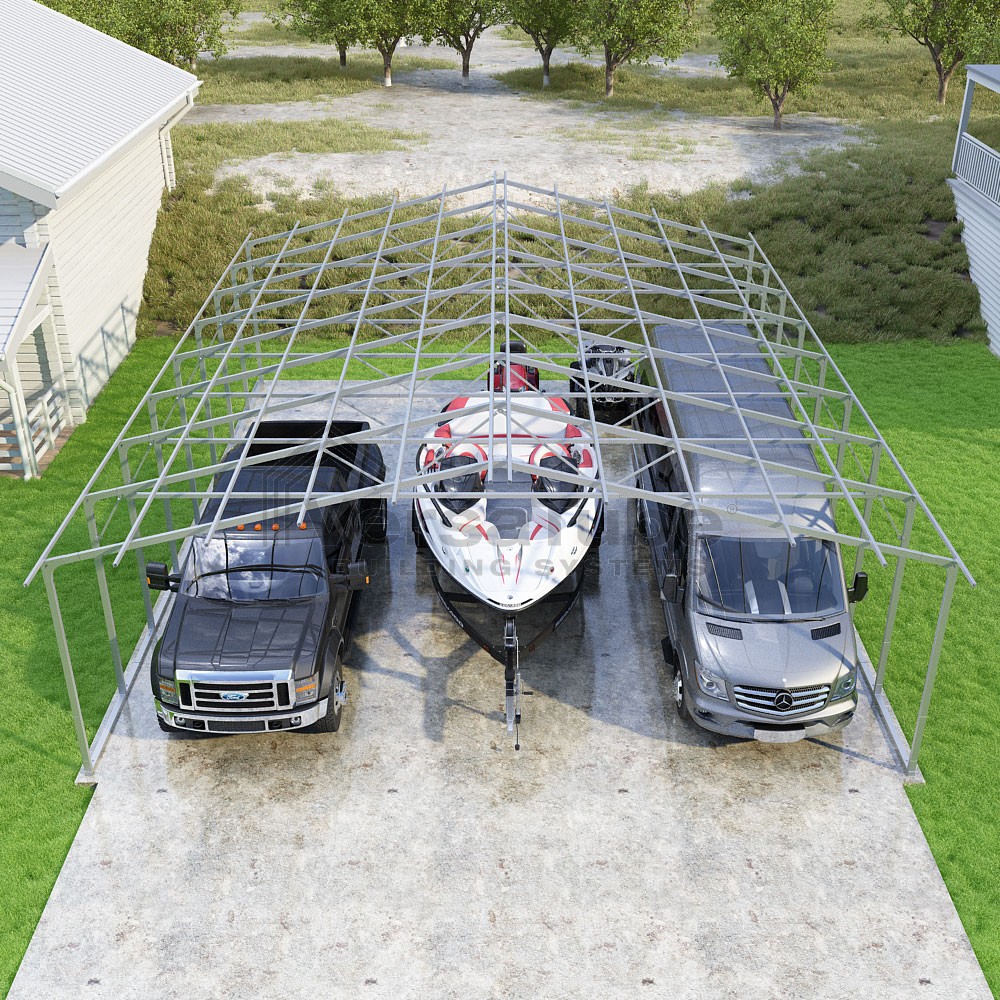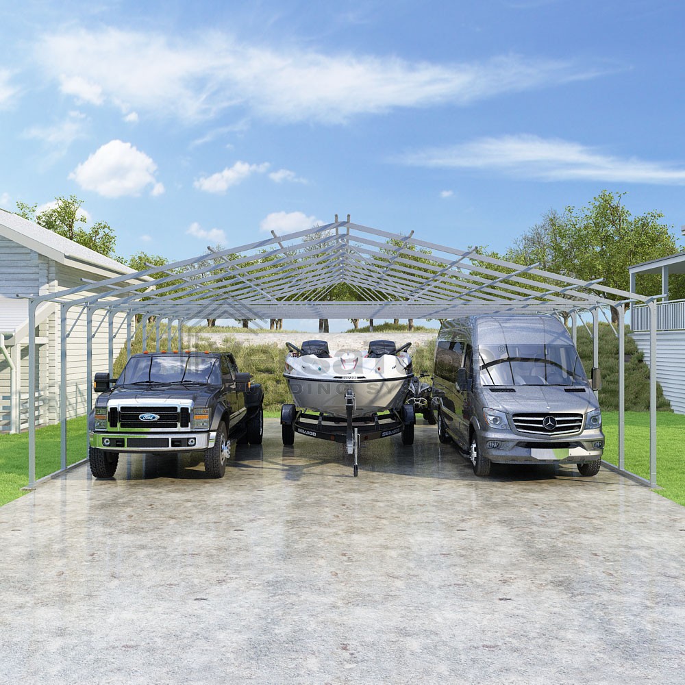 Pinnacle Series DIY carport frame kit includes roof purlins for applying sheet metal panels vertically (sold separately) in a traditional or common gable style manner.