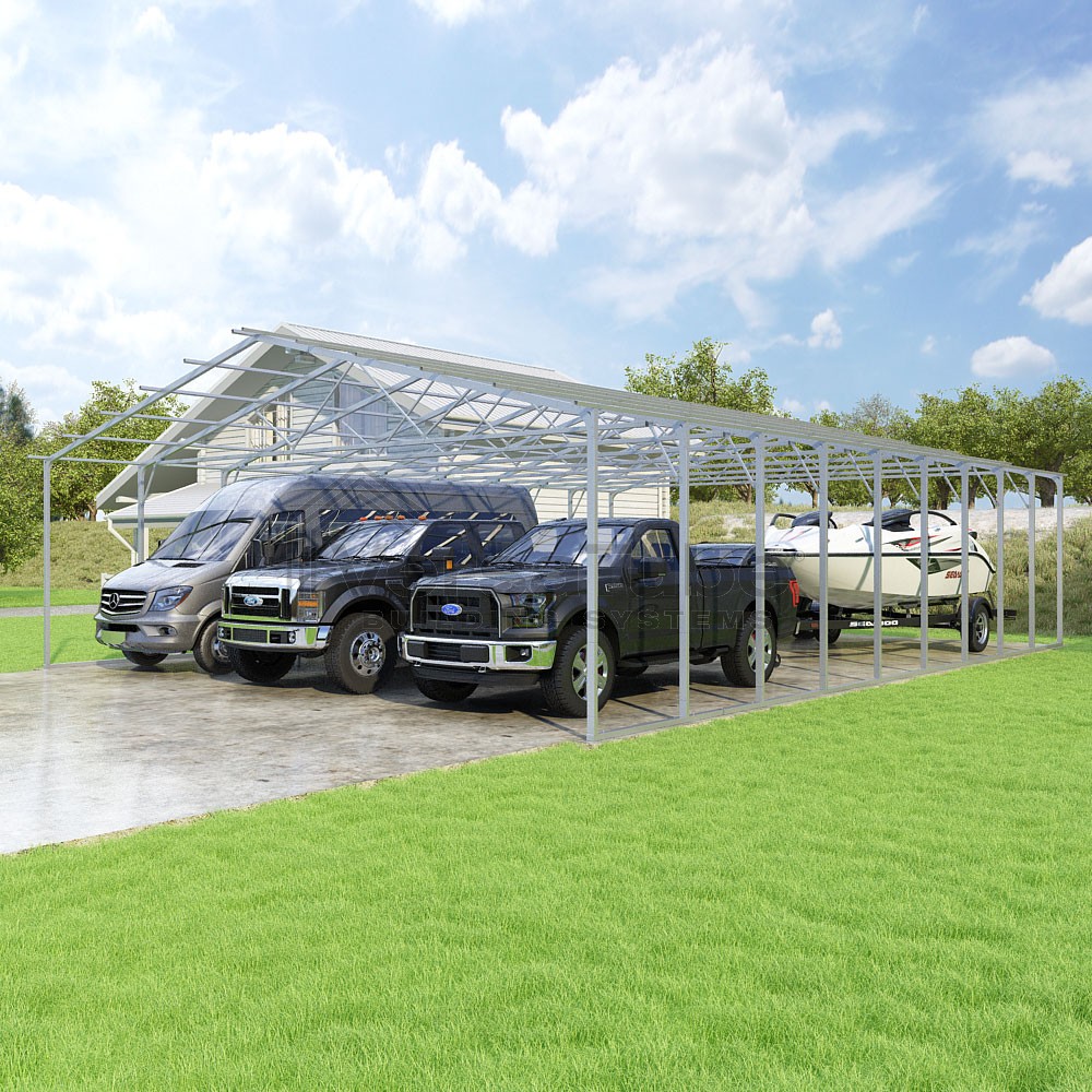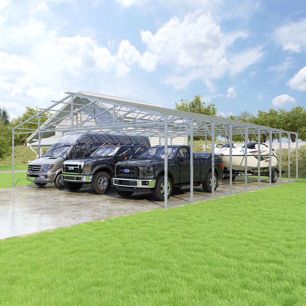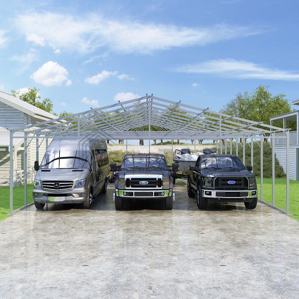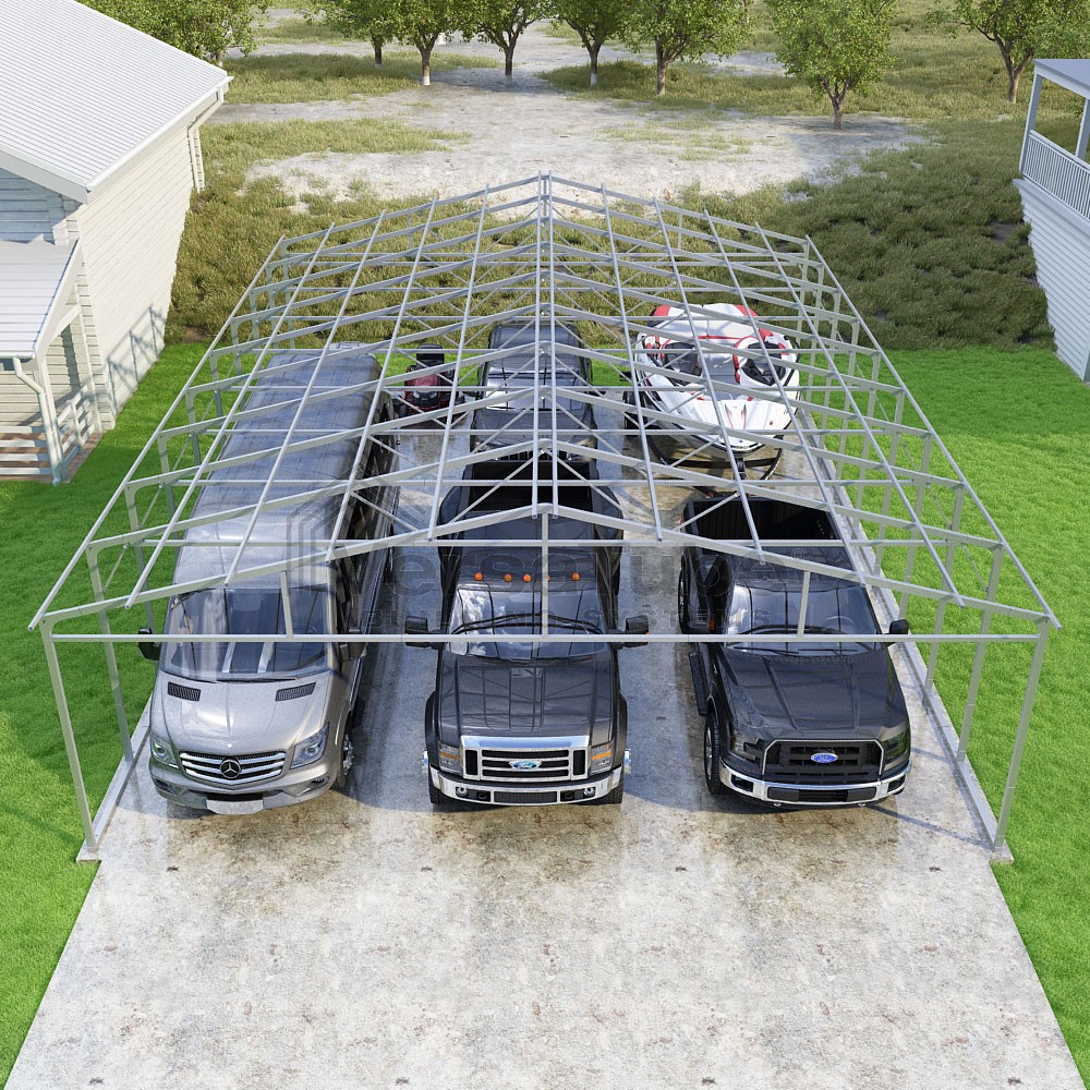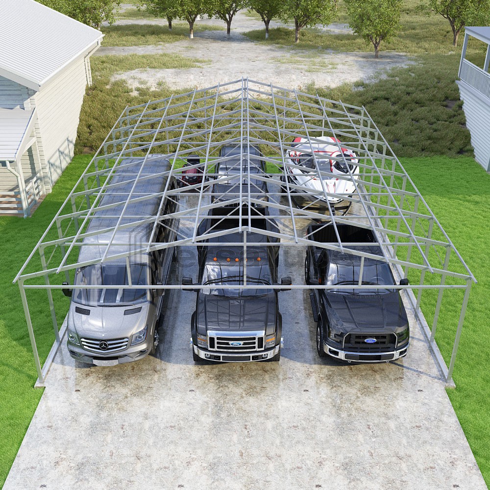 Pinnacle Series DIY carport frame kit includes roof purlins for applying sheet metal panels vertically (sold separately) in a traditional or common gable style manner.