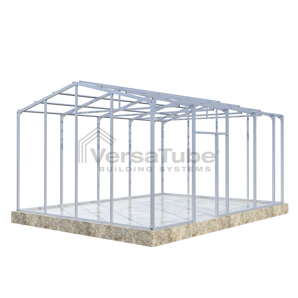 Ground anchoring requires VersaTube rebar anchors centered in post holes and backfilled with concrete. Anchoring to a concrete slab or concrete footing requires concrete wedge anchor bolts. Anchors are provided with each building and carport kit. You will make your selection prior to checkout.