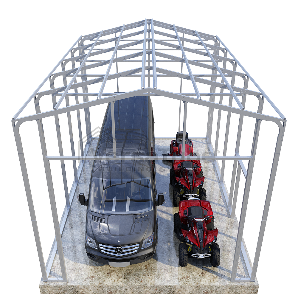 Frontier Series DIY garage frame kit includes roof purlins for applying vertical sheet metal panels or other roofing materials. No side girts are included with the Frontier frame kit.