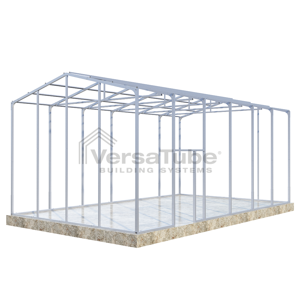 Ground anchoring requires VersaTube rebar anchors centered in post holes and backfilled with concrete. Anchoring to a concrete slab or concrete footing requires concrete wedge anchor bolts. Anchors are provided with each building and carport kit. You will make your selection prior to checkout.