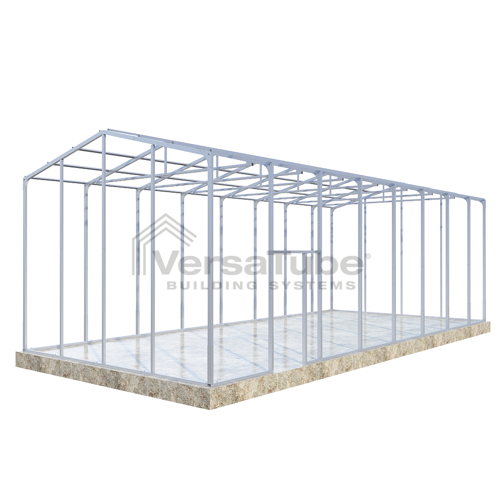 Ground anchoring requires VersaTube rebar anchors centered in post holes and backfilled with concrete. Anchoring to a concrete slab or concrete footing requires concrete wedge anchor bolts. Anchors are provided with each building and carport kit. You will make your selection prior to checkout.