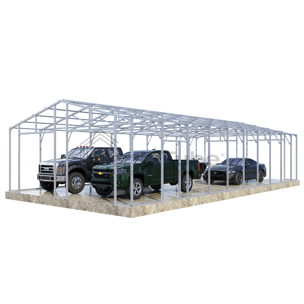 Frontier Series DIY garage frame kit includes roof purlins for applying vertical sheet metal panels or other roofing materials. No side girts are included with the Frontier frame kit.