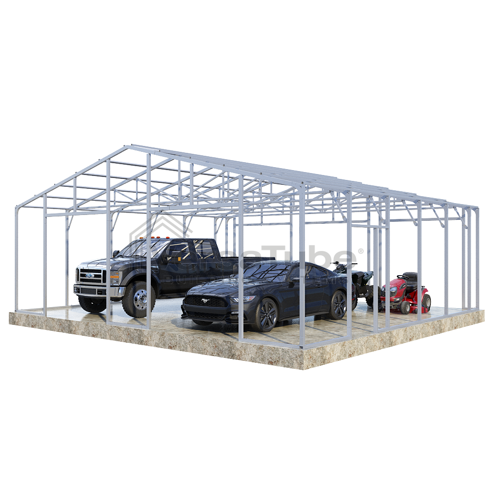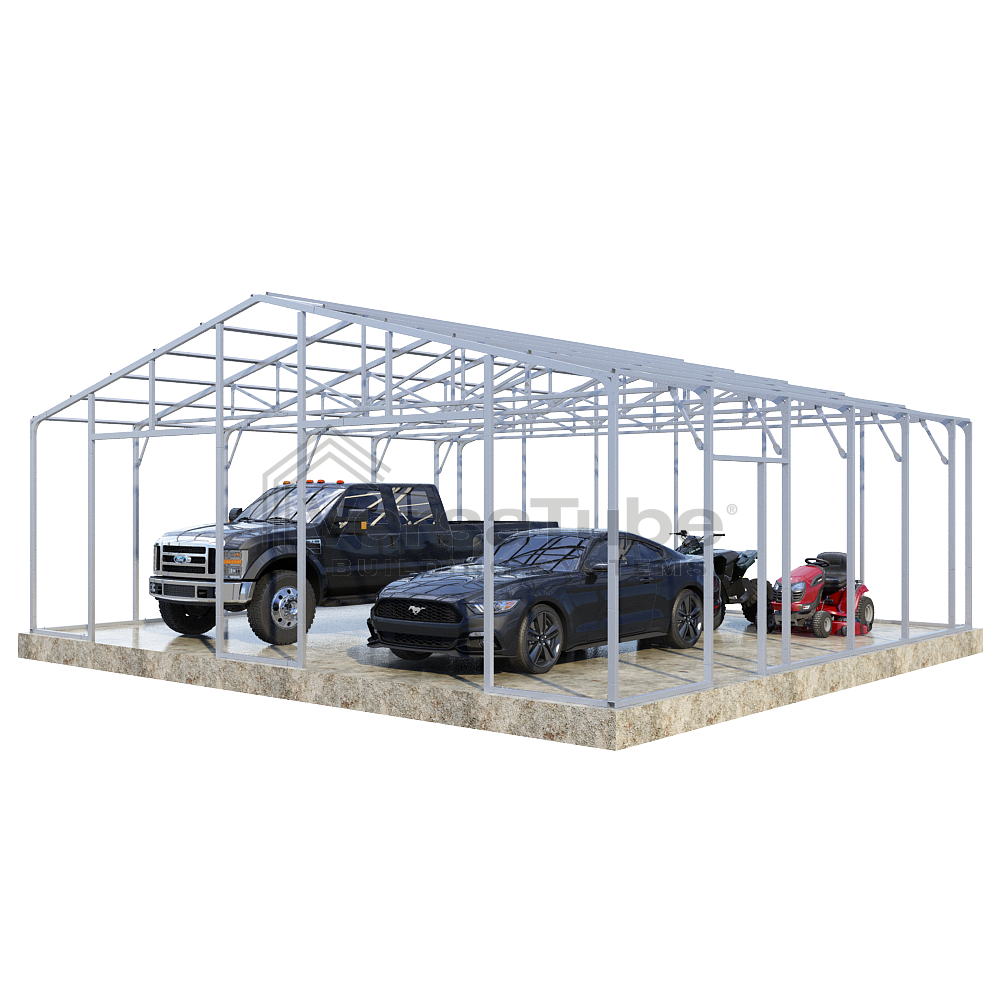 Ground anchoring requires VersaTube rebar anchors centered in post holes and backfilled with concrete. Anchoring to a concrete slab or concrete footing requires concrete wedge anchor bolts. Anchors are provided with each building and carport kit. You will make your selection prior to checkout.