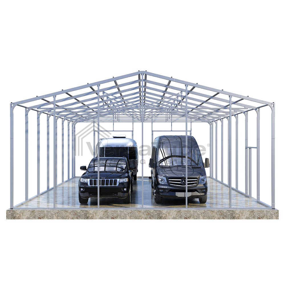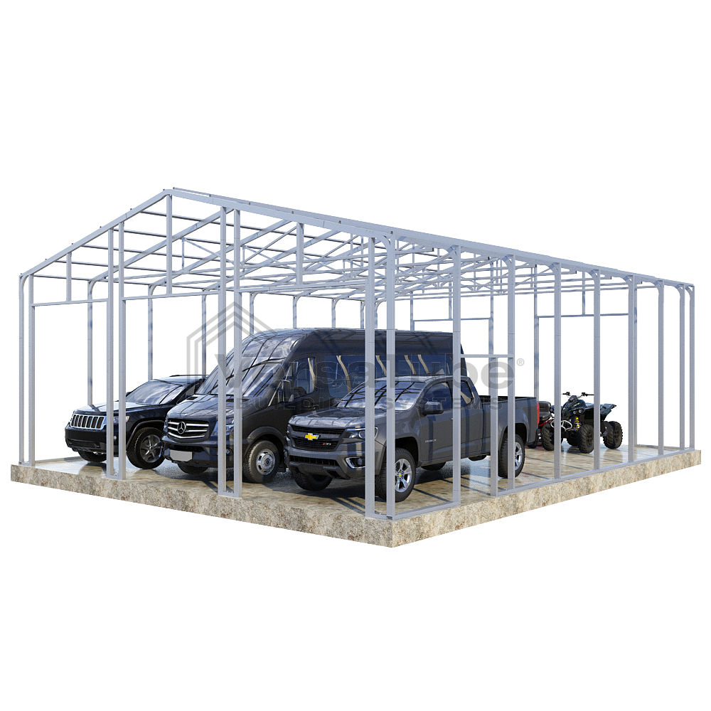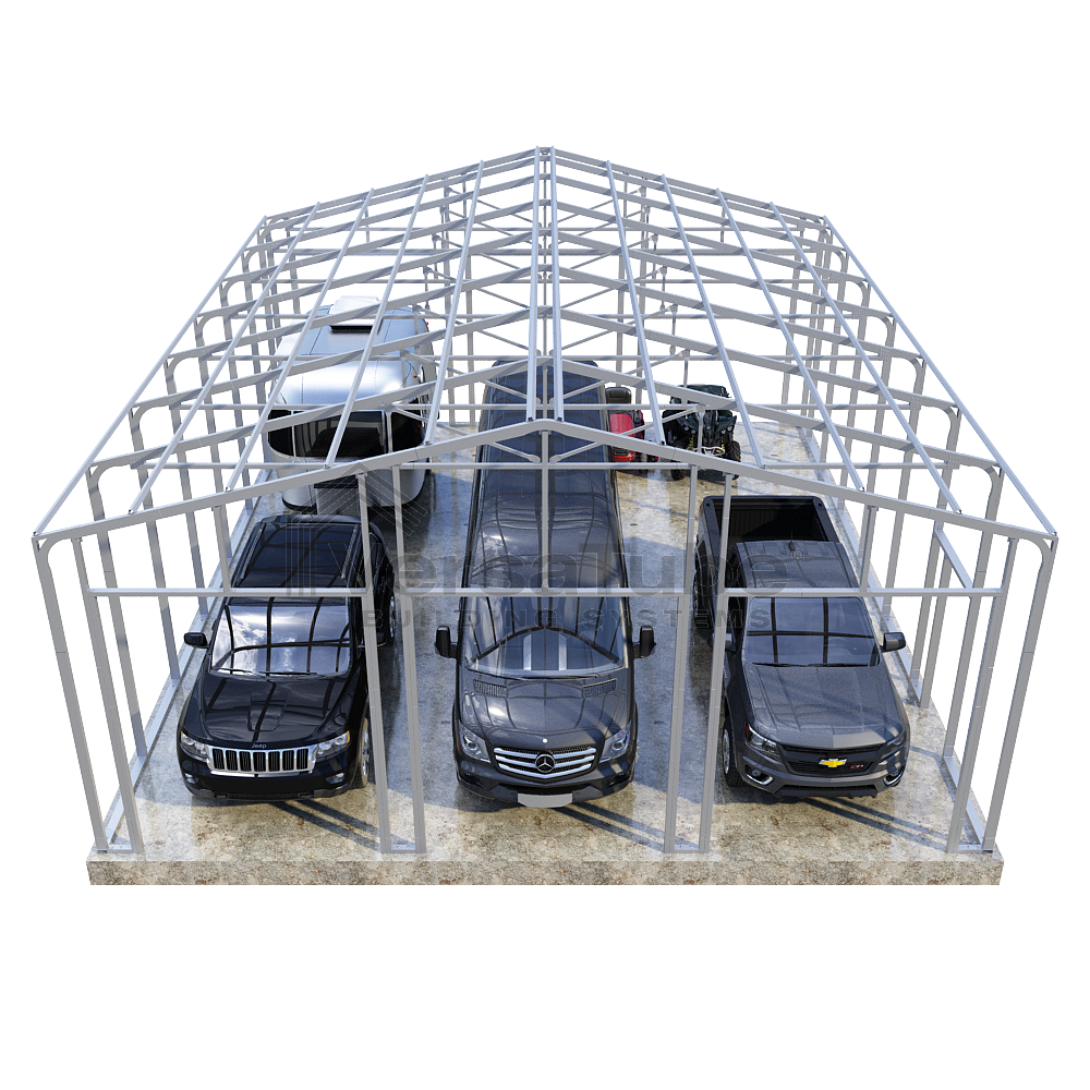 Frontier Series DIY garage frame kit includes roof purlins for applying vertical sheet metal panels or other roofing materials. No side girts are included with the Frontier frame kit.