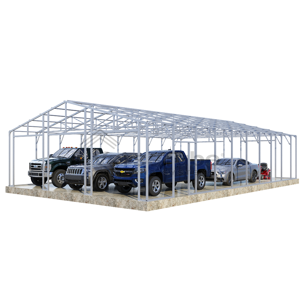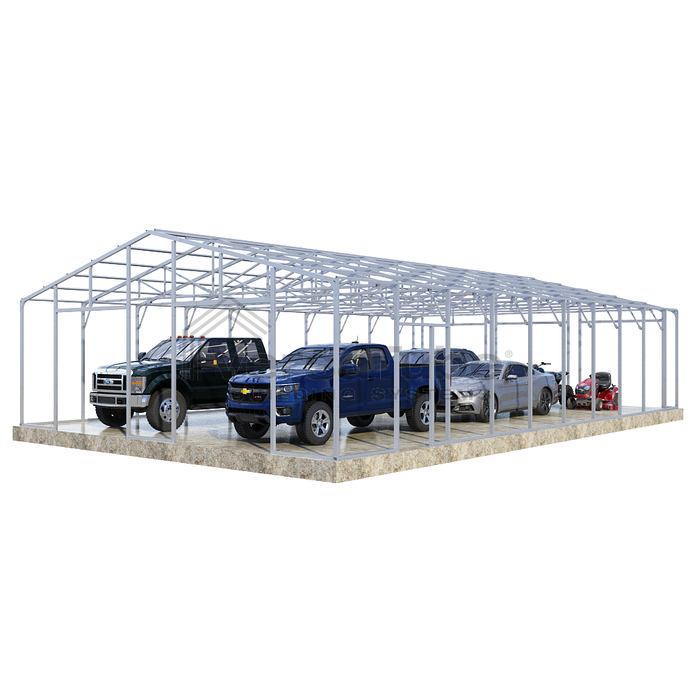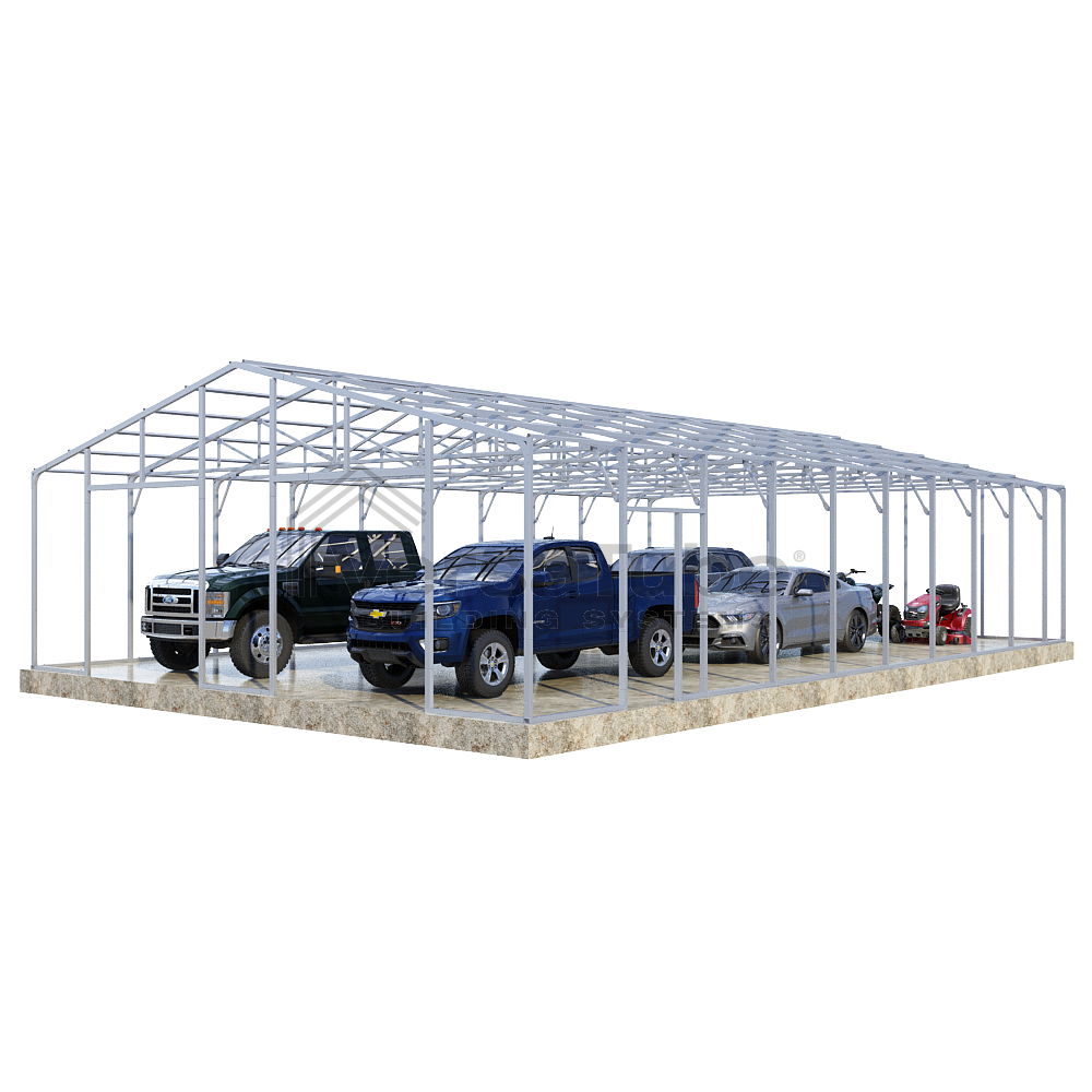 Frontier Series DIY garage frame kit includes roof purlins for applying vertical sheet metal panels or other roofing materials. No side girts are included with the Frontier frame kit.