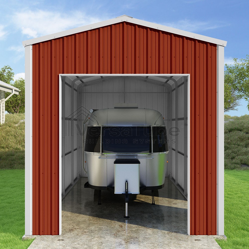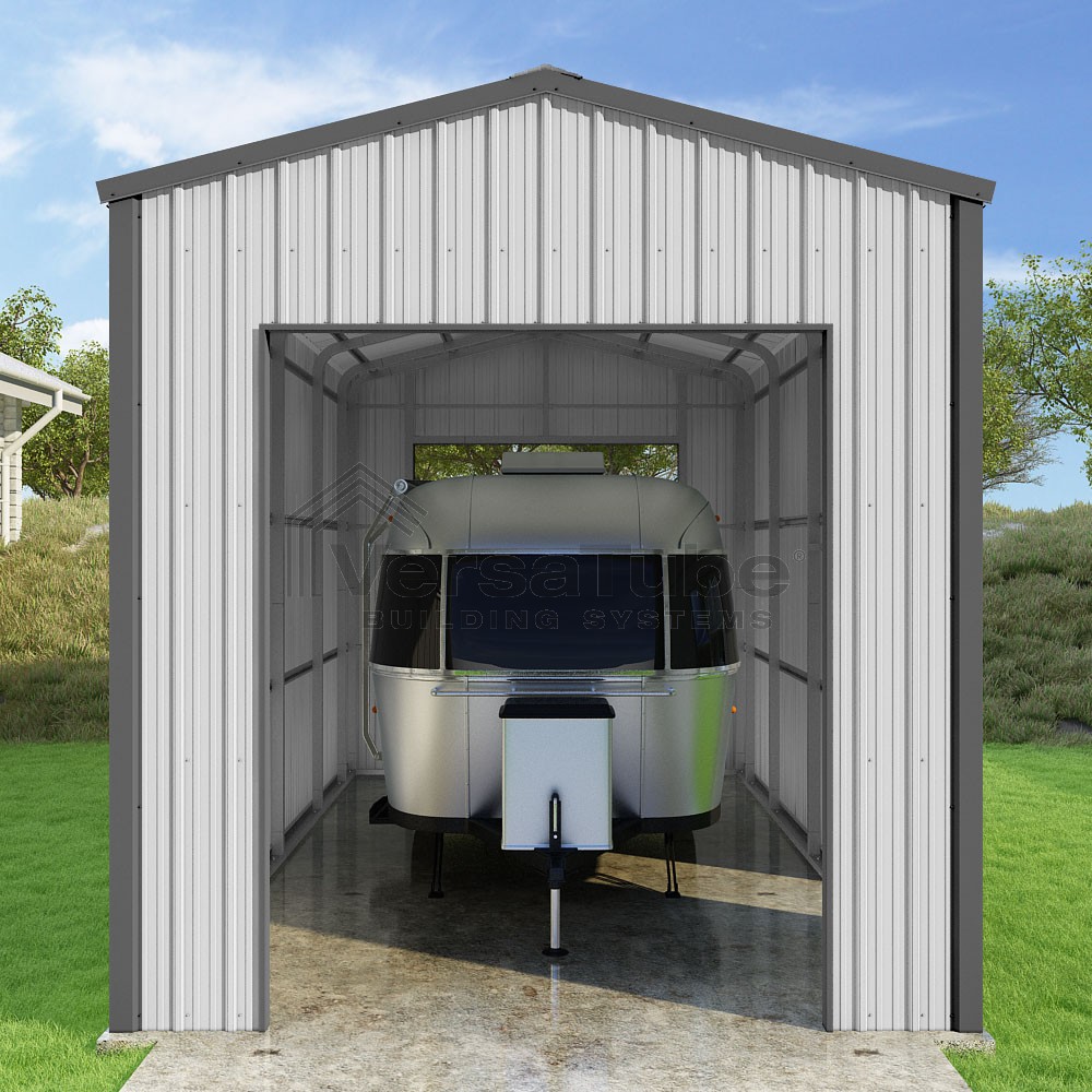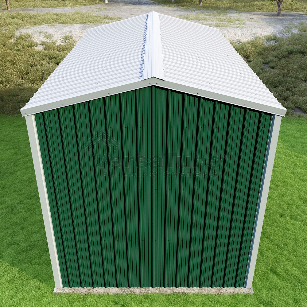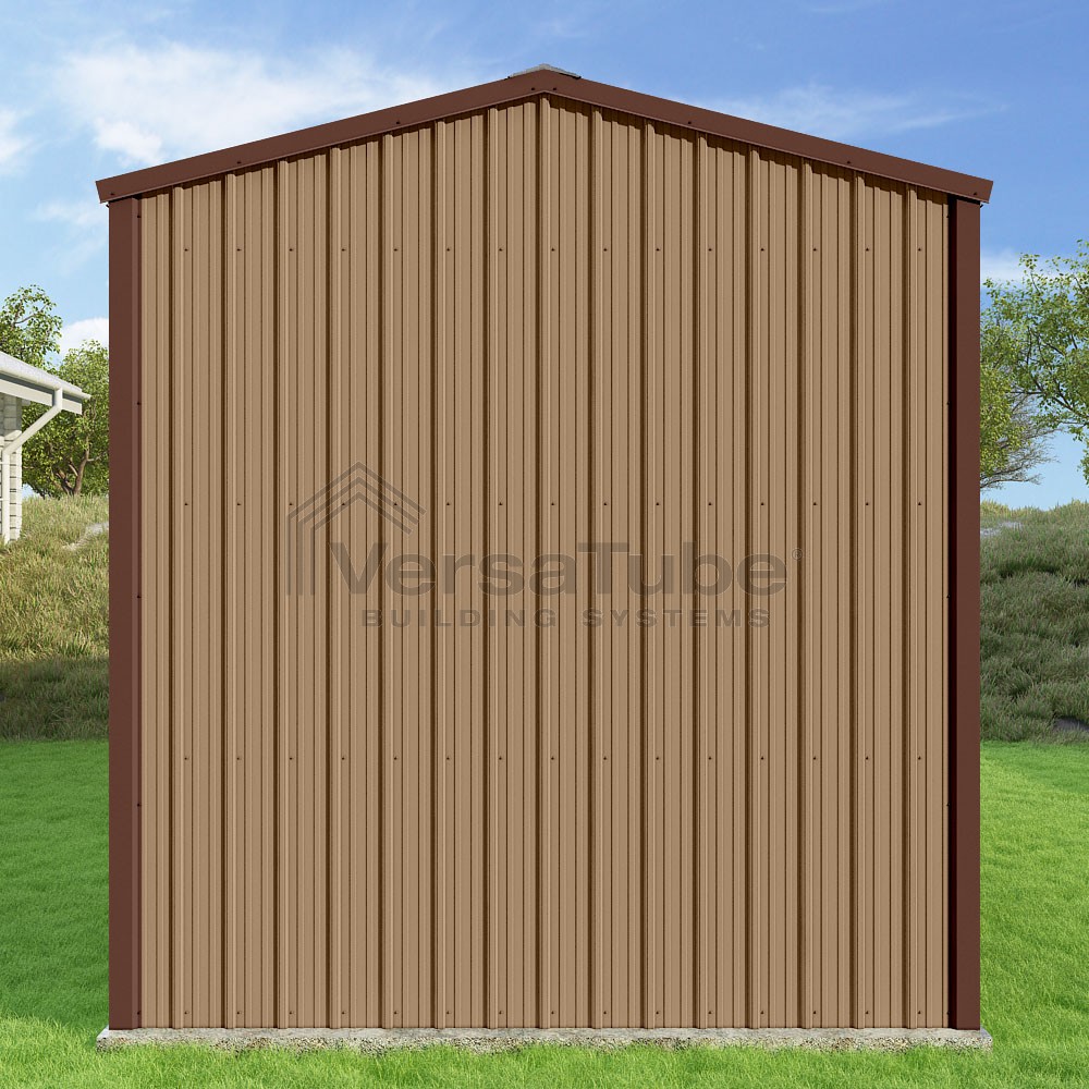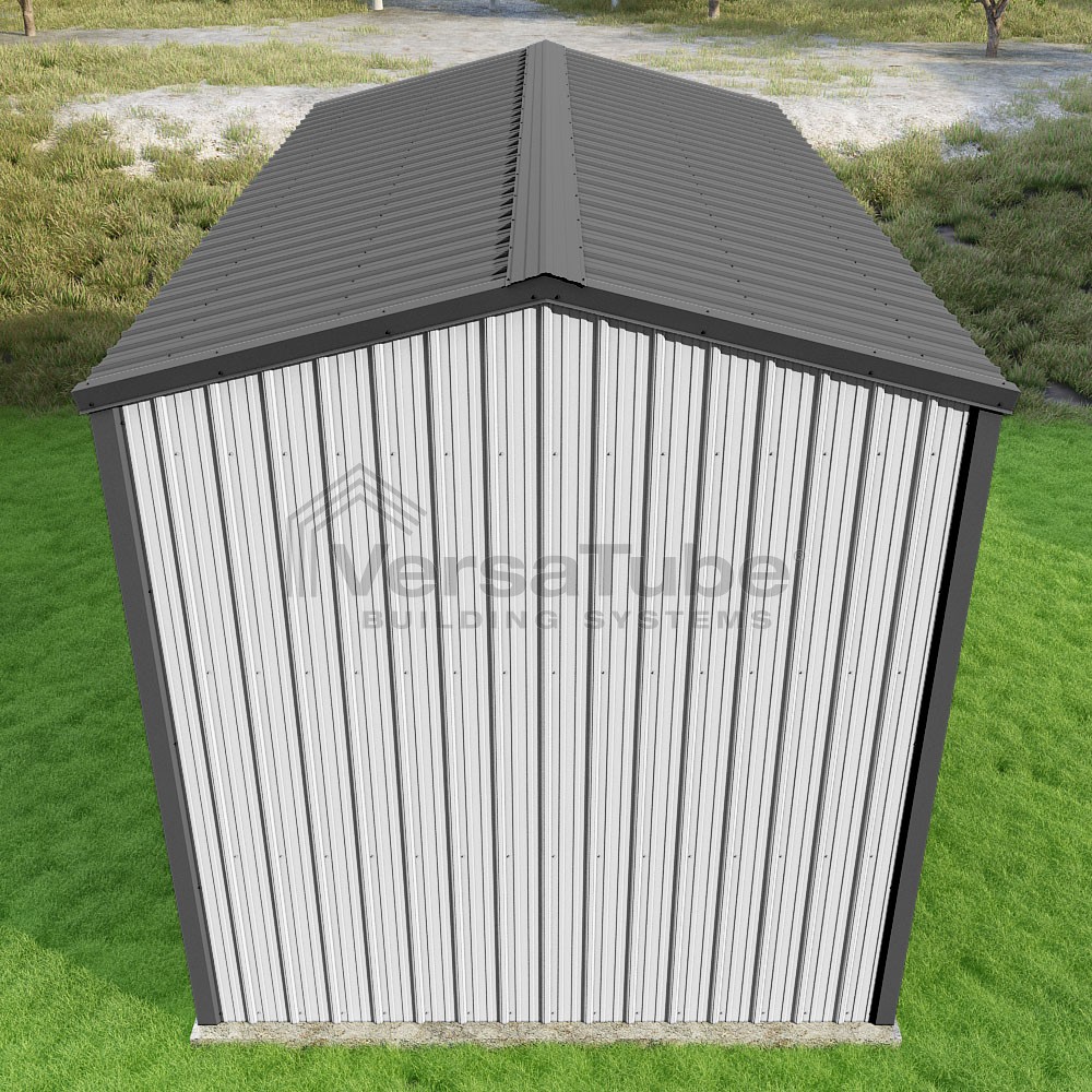 Summit Series DIY garage kit features vertical sheet metal roof and siding panels for a consistent look.