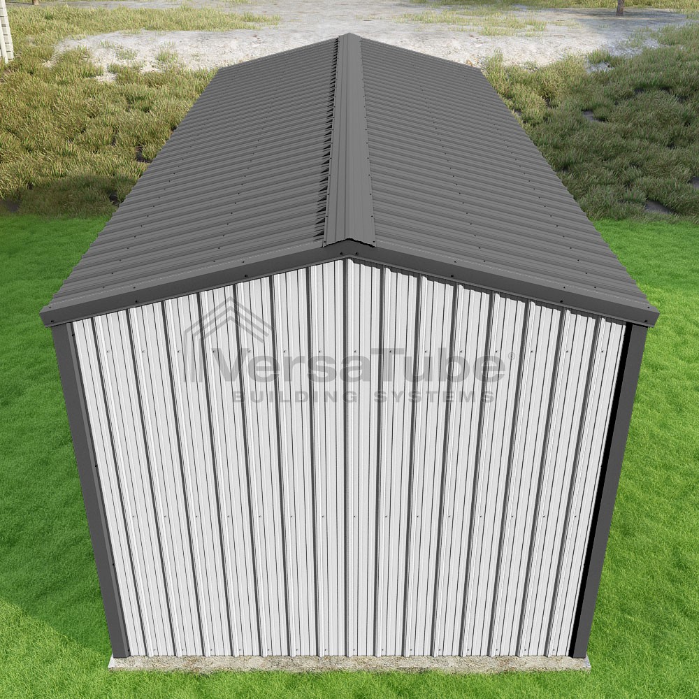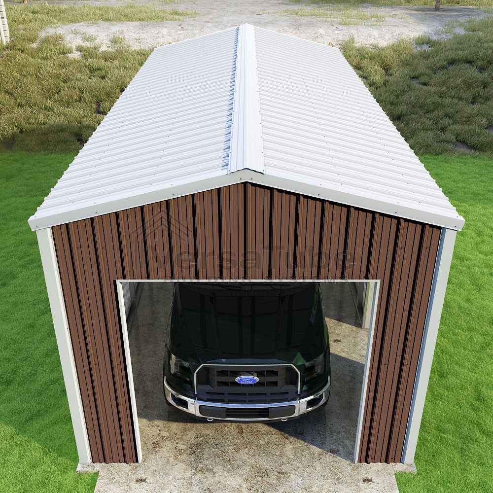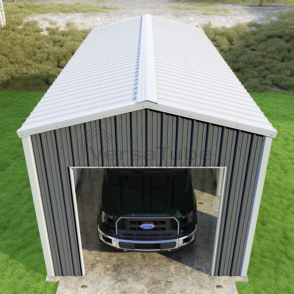 Summit Series DIY garage kit features vertical sheet metal roof and siding panels for a consistent look.