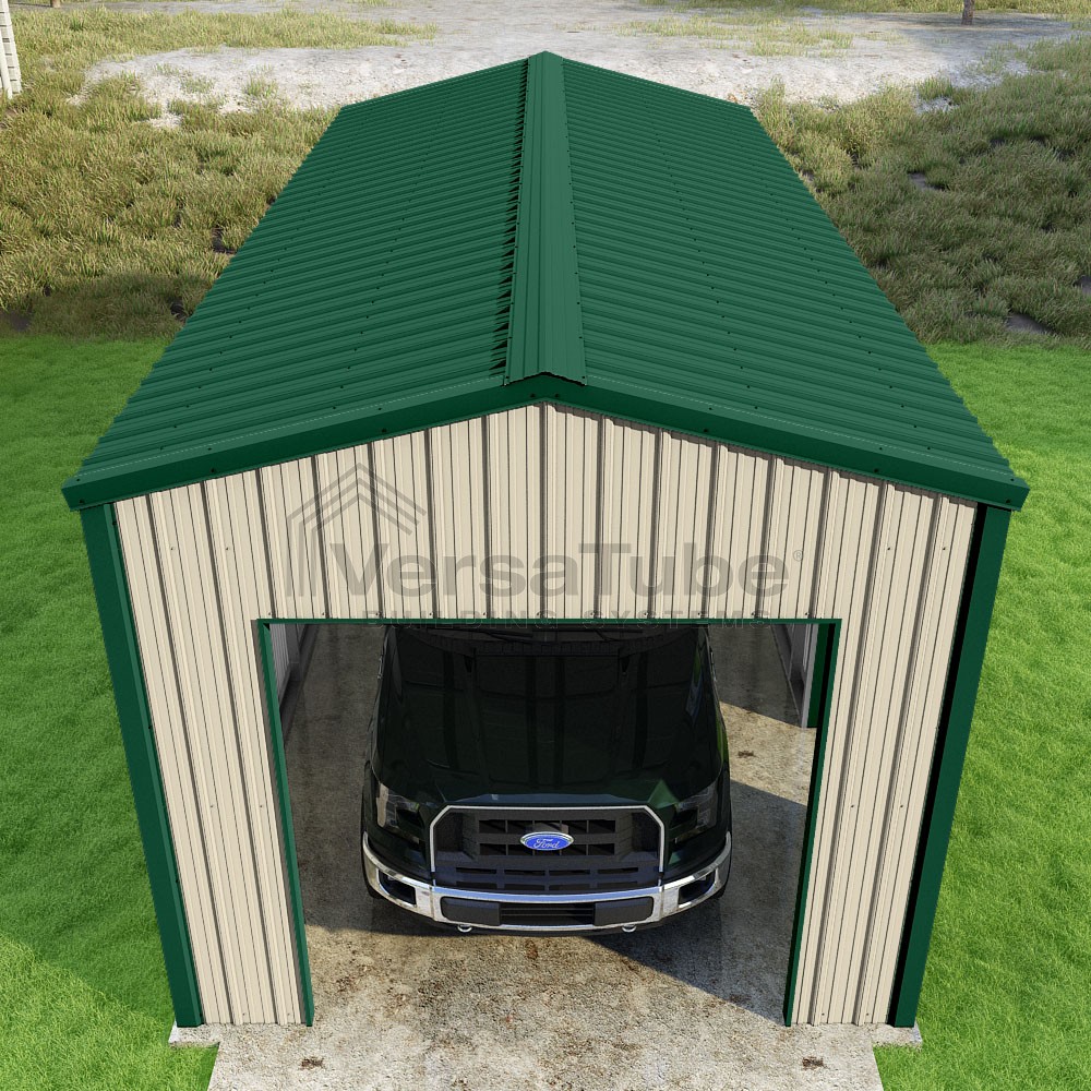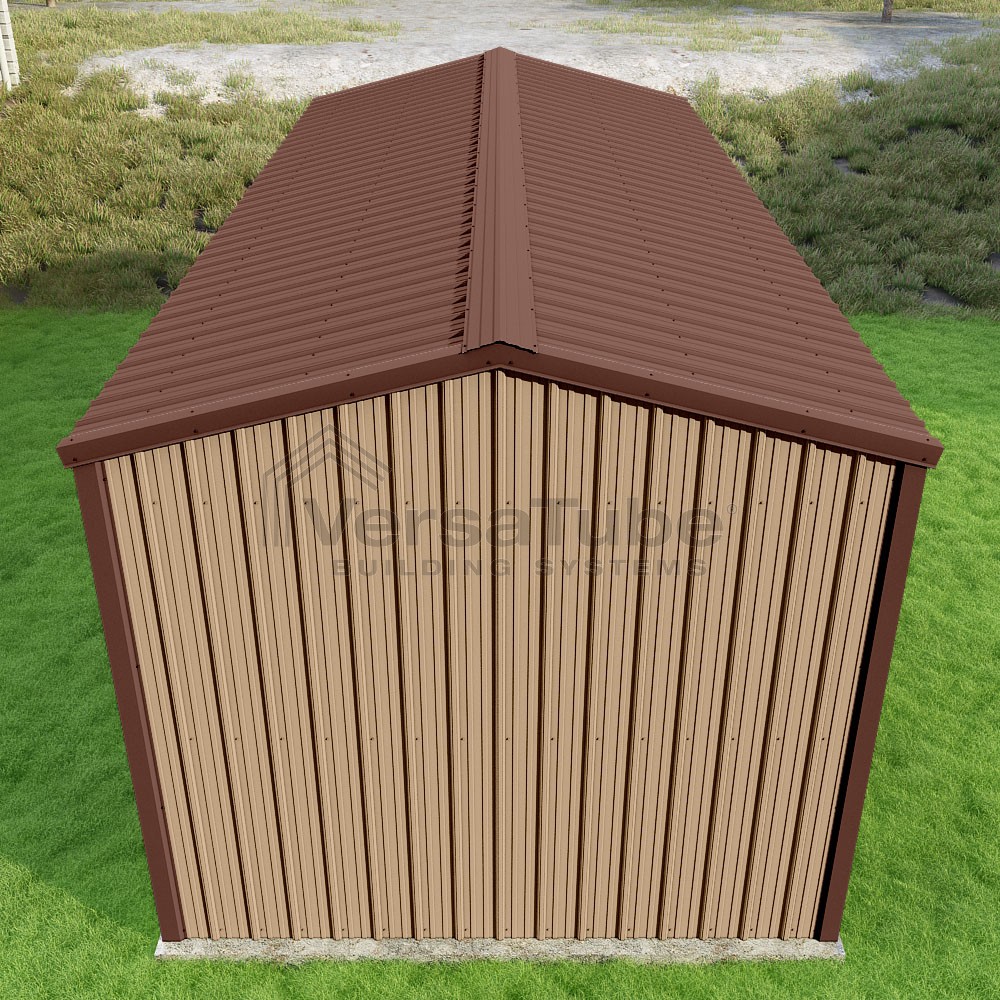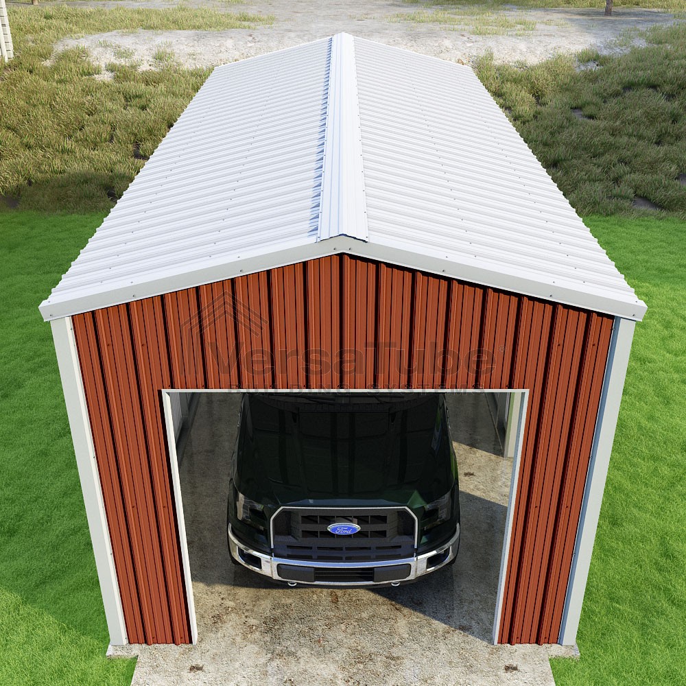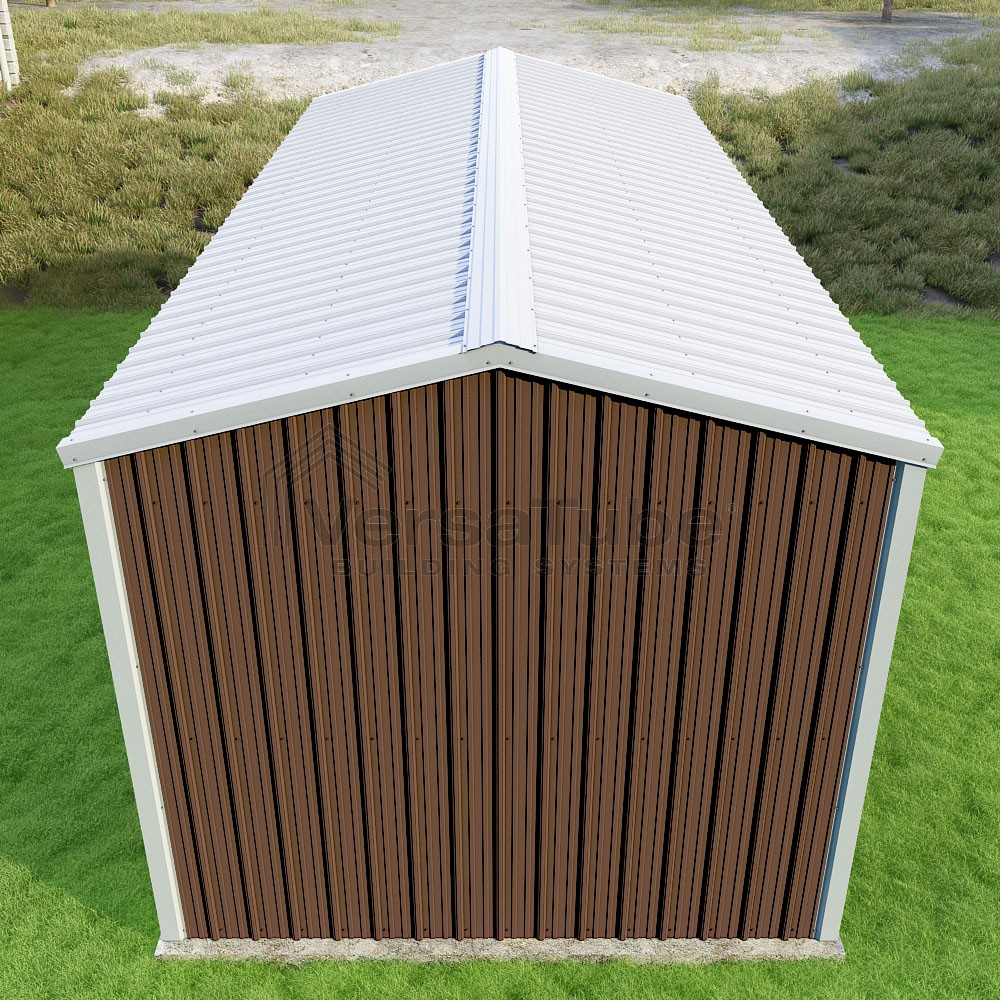 Summit Series DIY garage kit features vertical sheet metal roof and siding panels for a consistent look.