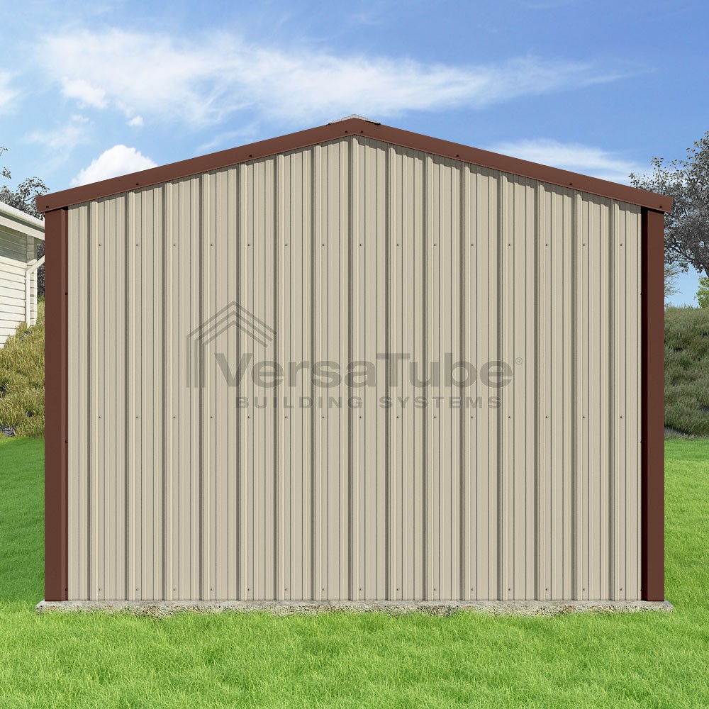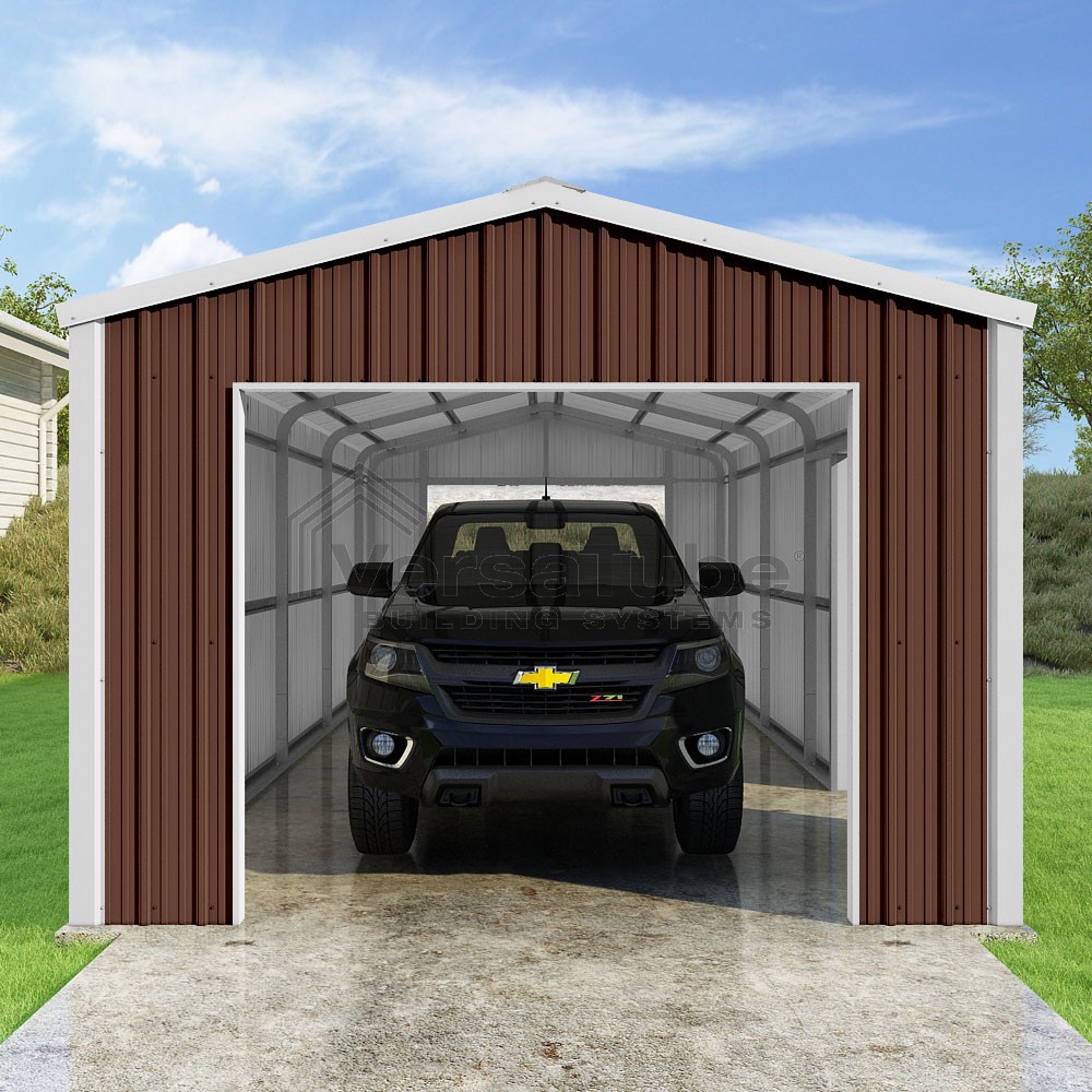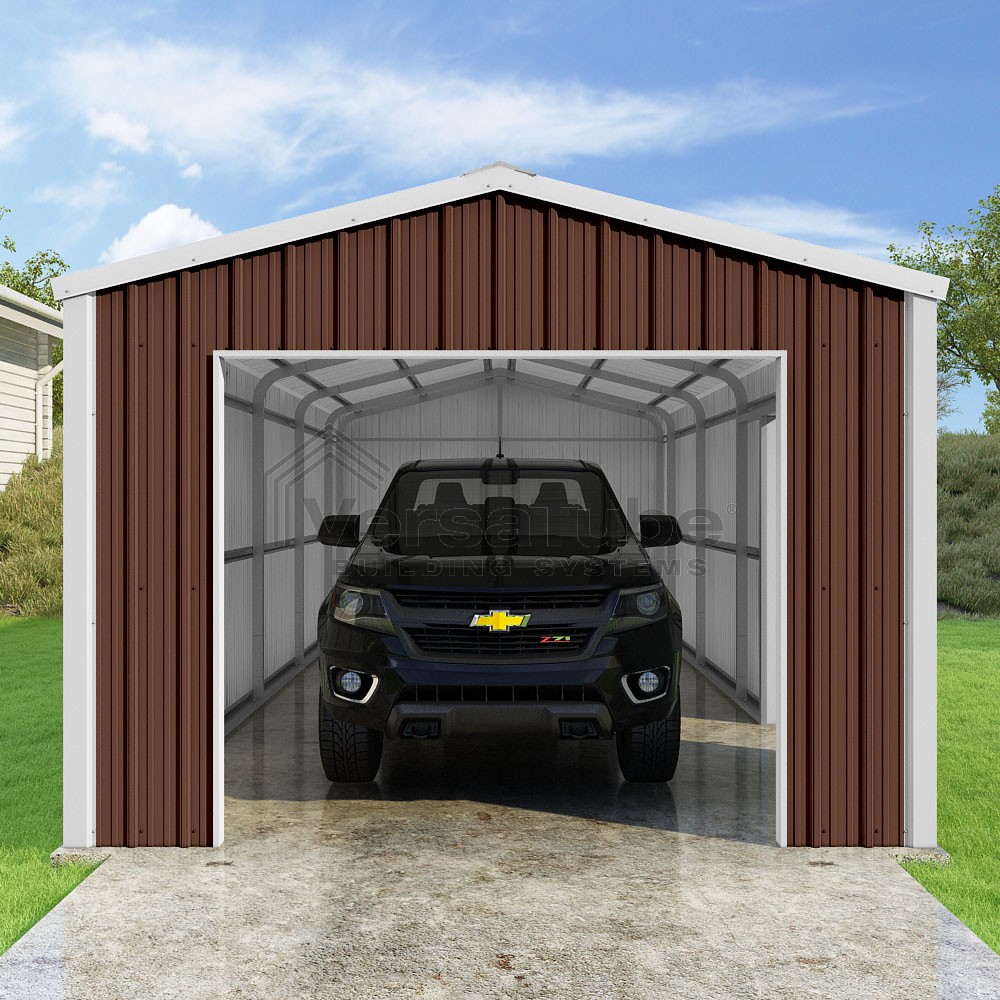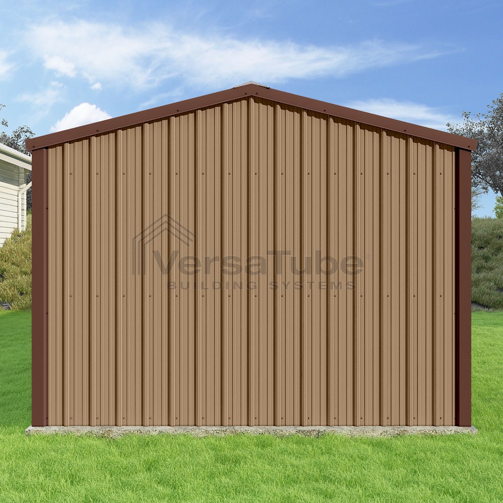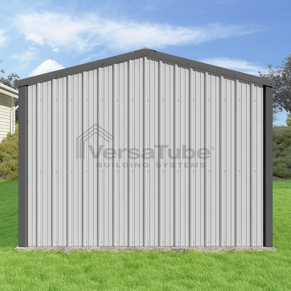 Summit Series DIY garage kit features vertical sheet metal roof and siding panels for a consistent look.