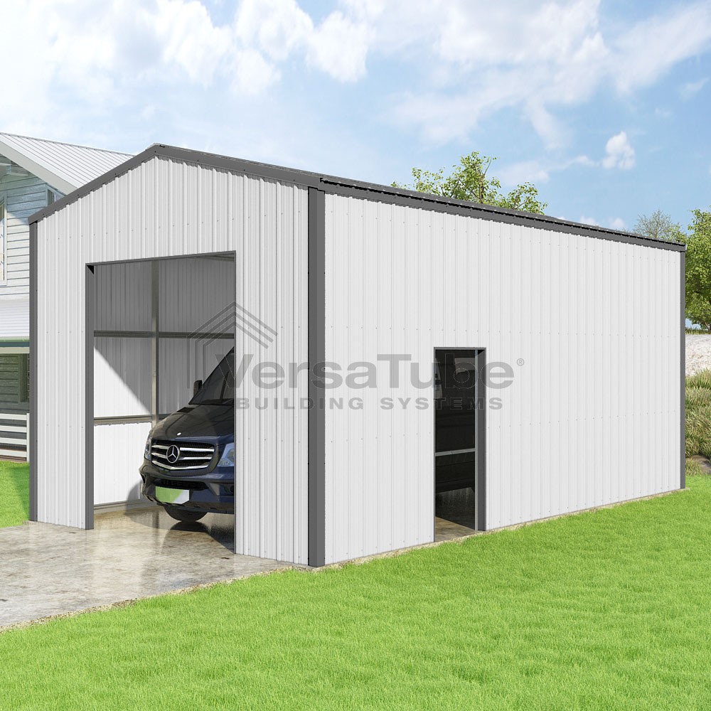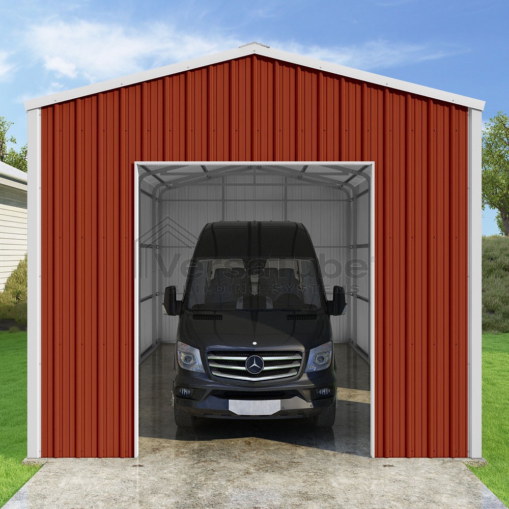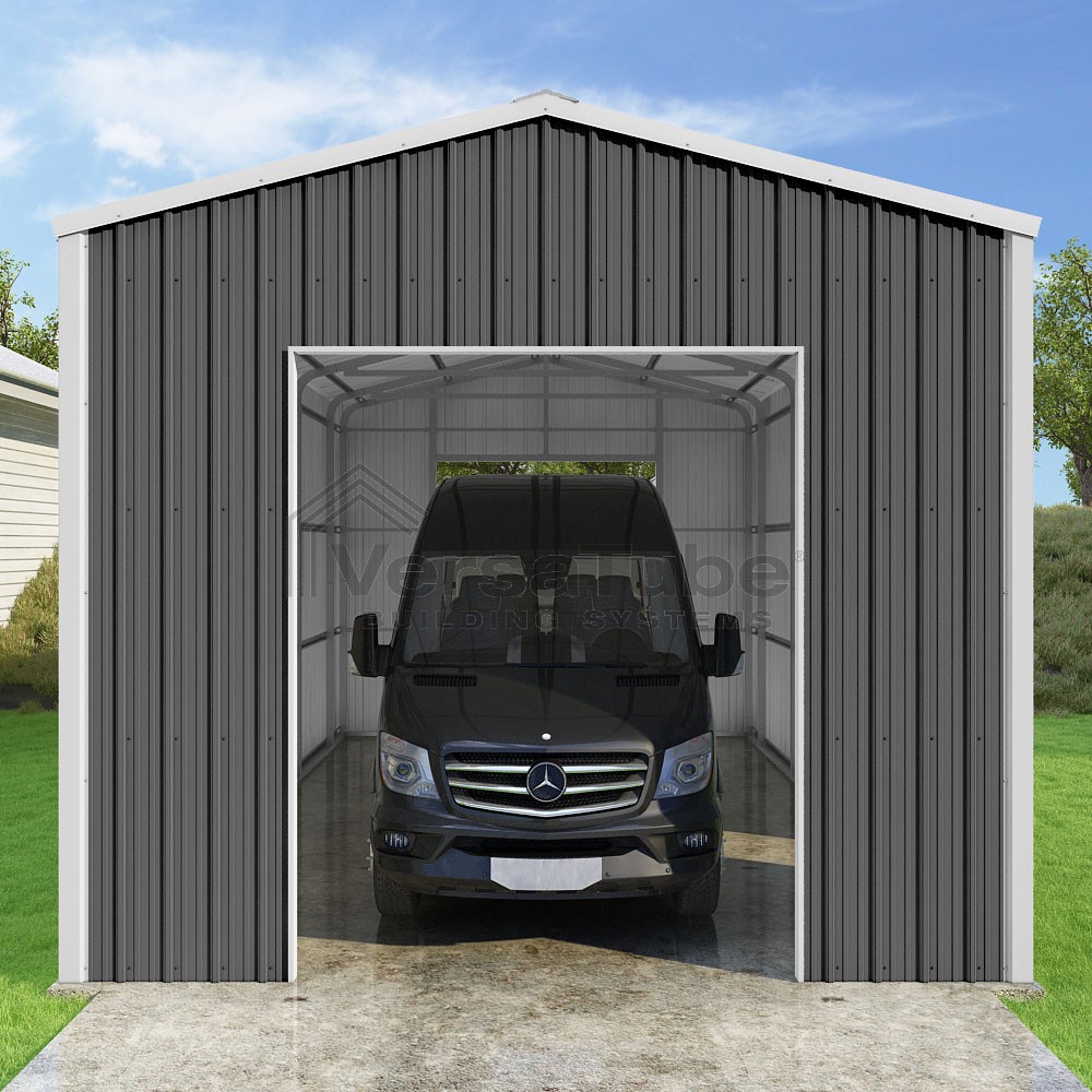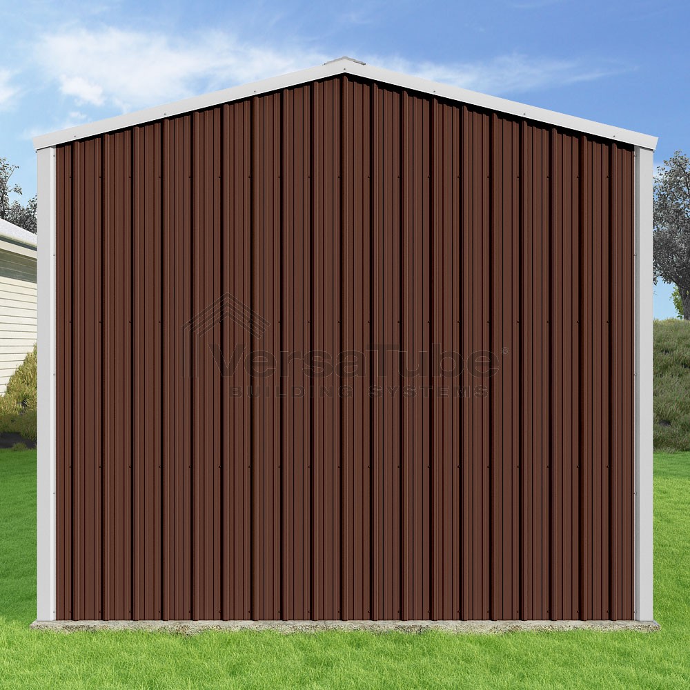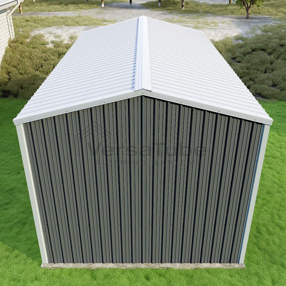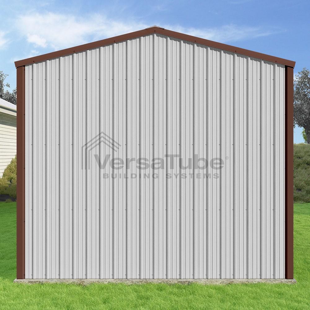 Summit Series DIY garage kit features vertical sheet metal roof and siding panels for a consistent look.