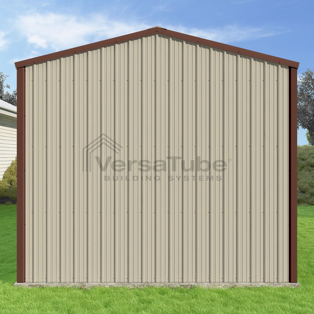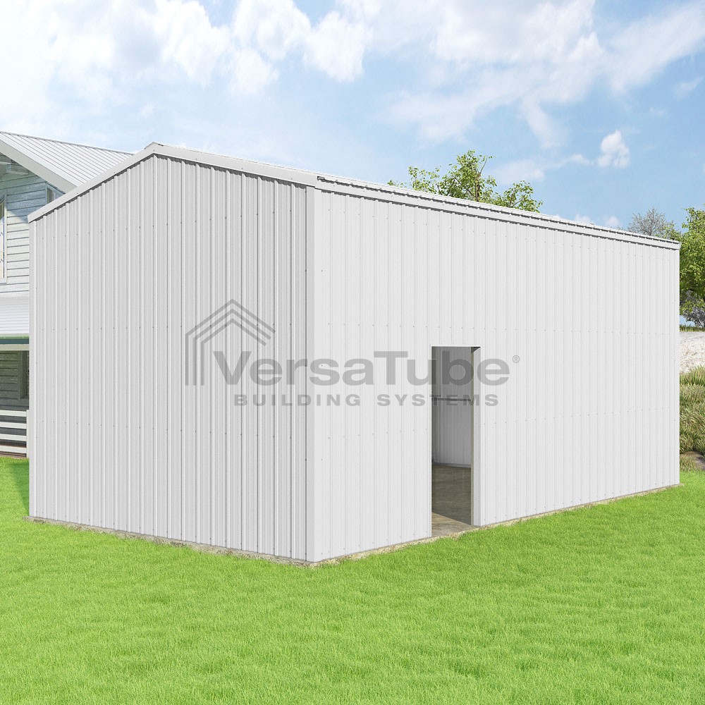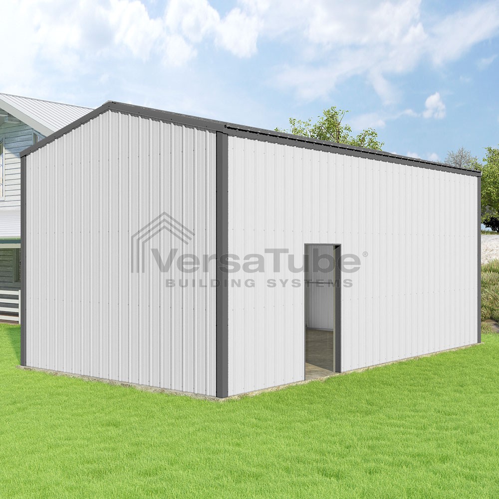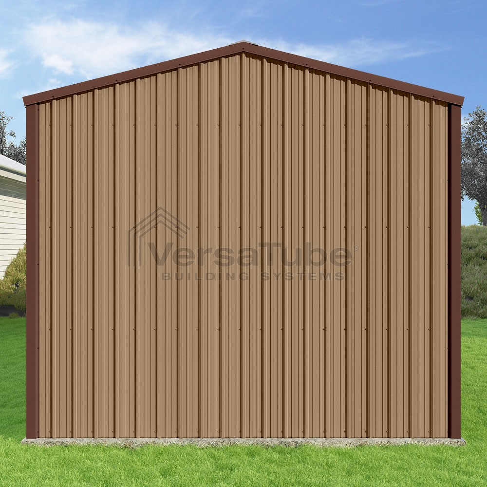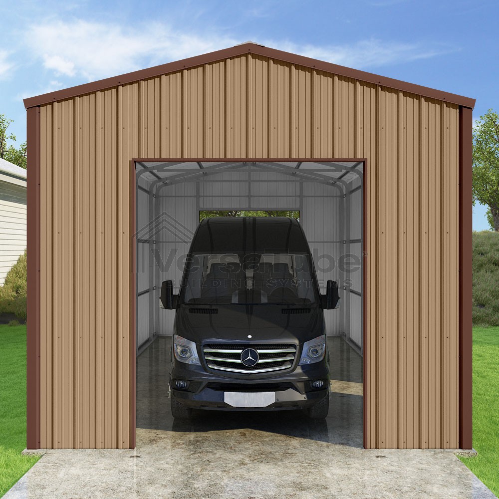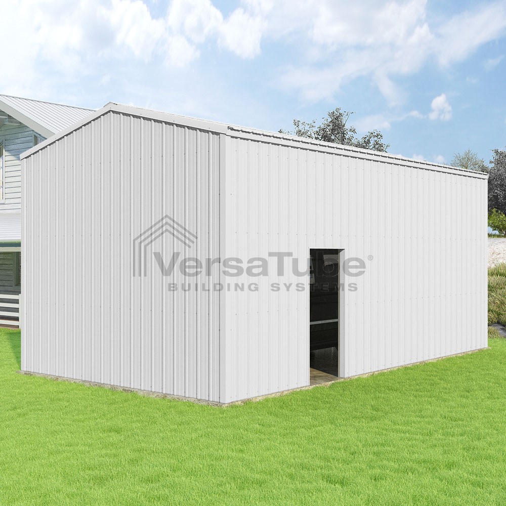 Summit Series DIY garage kit features vertical sheet metal roof and siding panels for a consistent look.