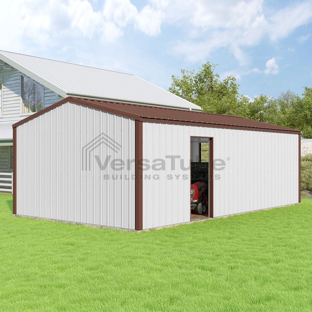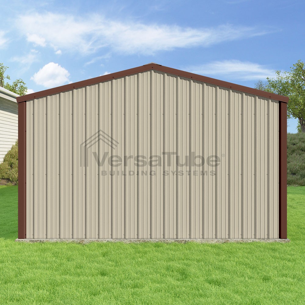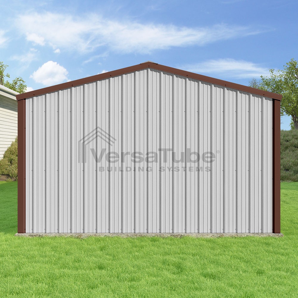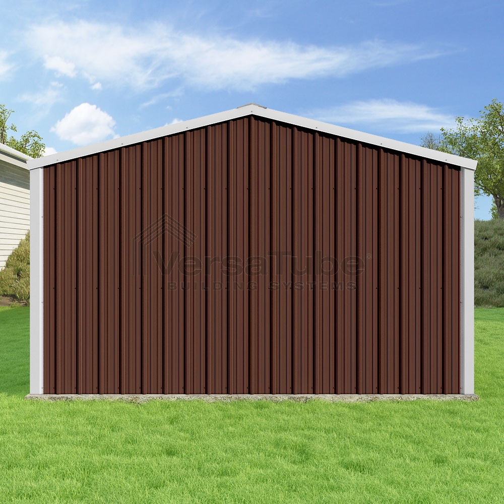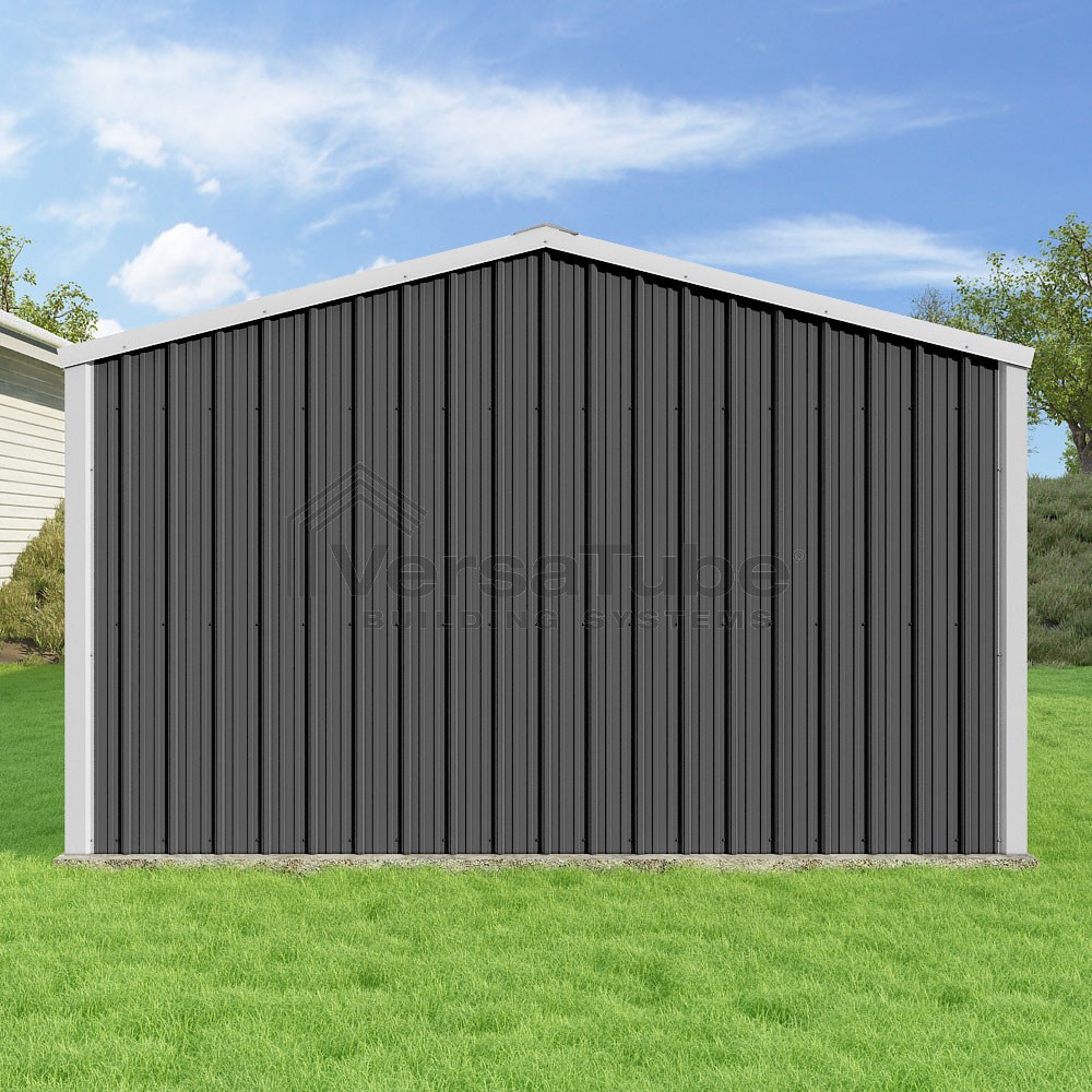 Summit Series DIY garage kit features vertical sheet metal roof and siding panels for a consistent look.