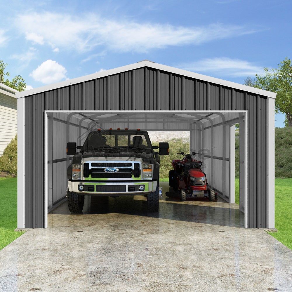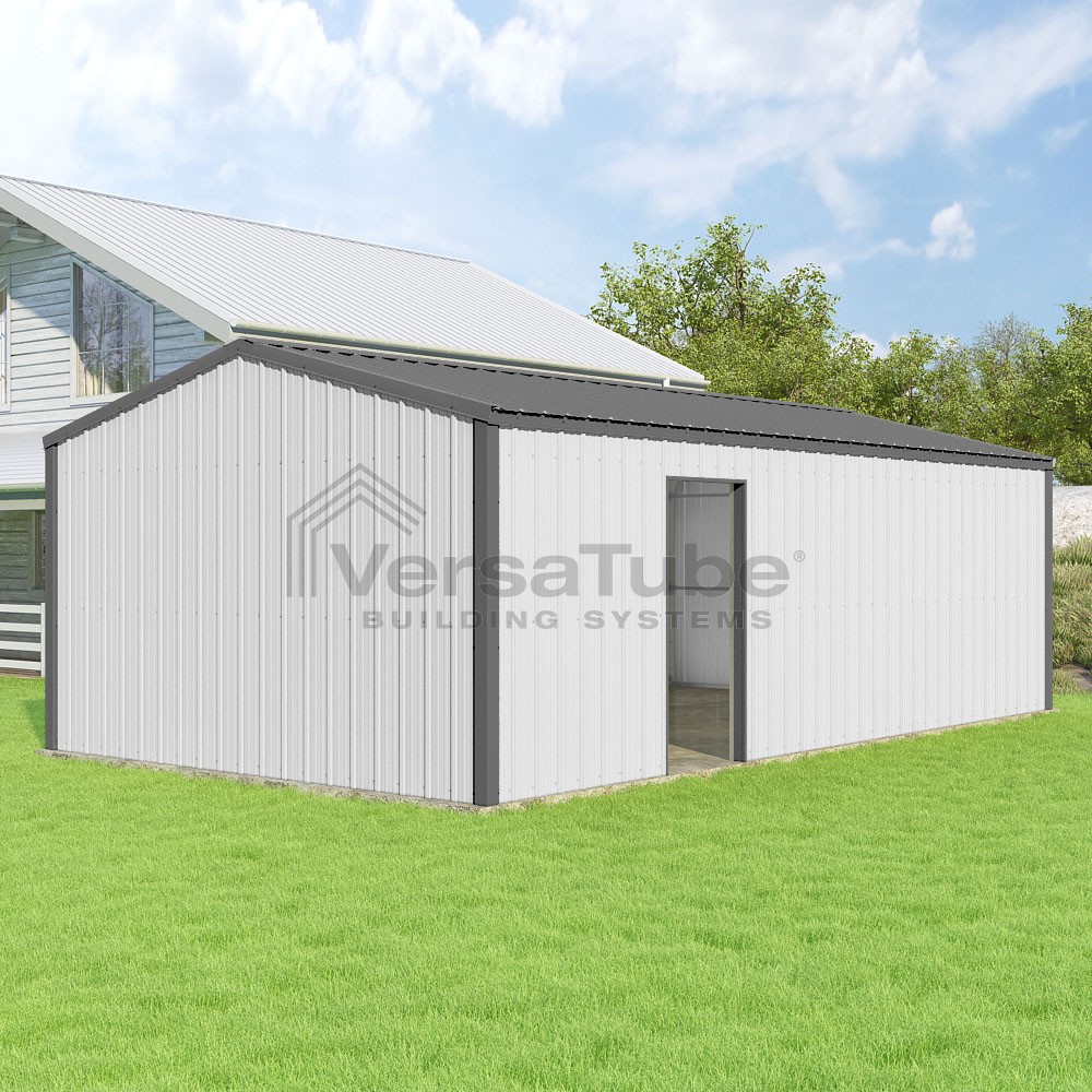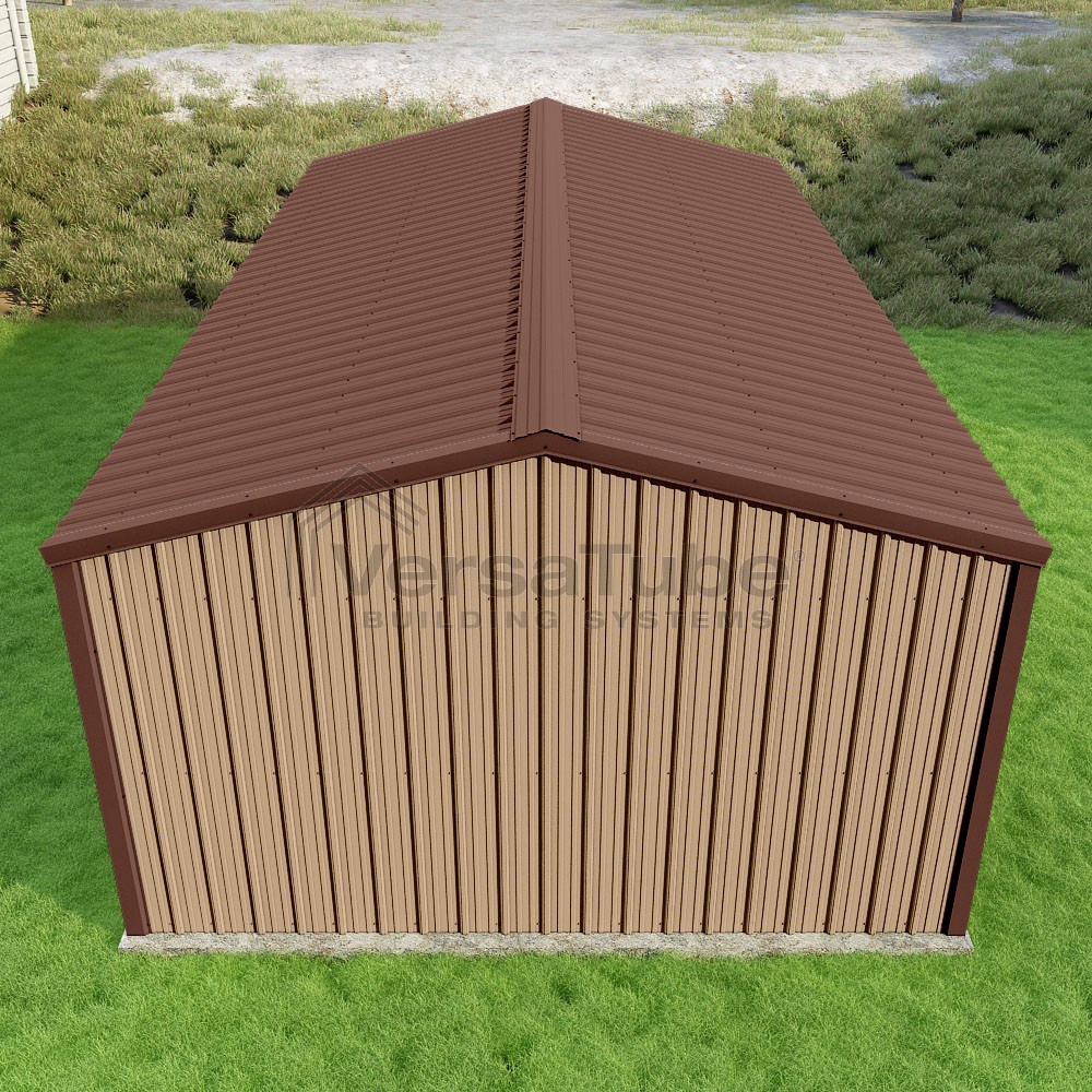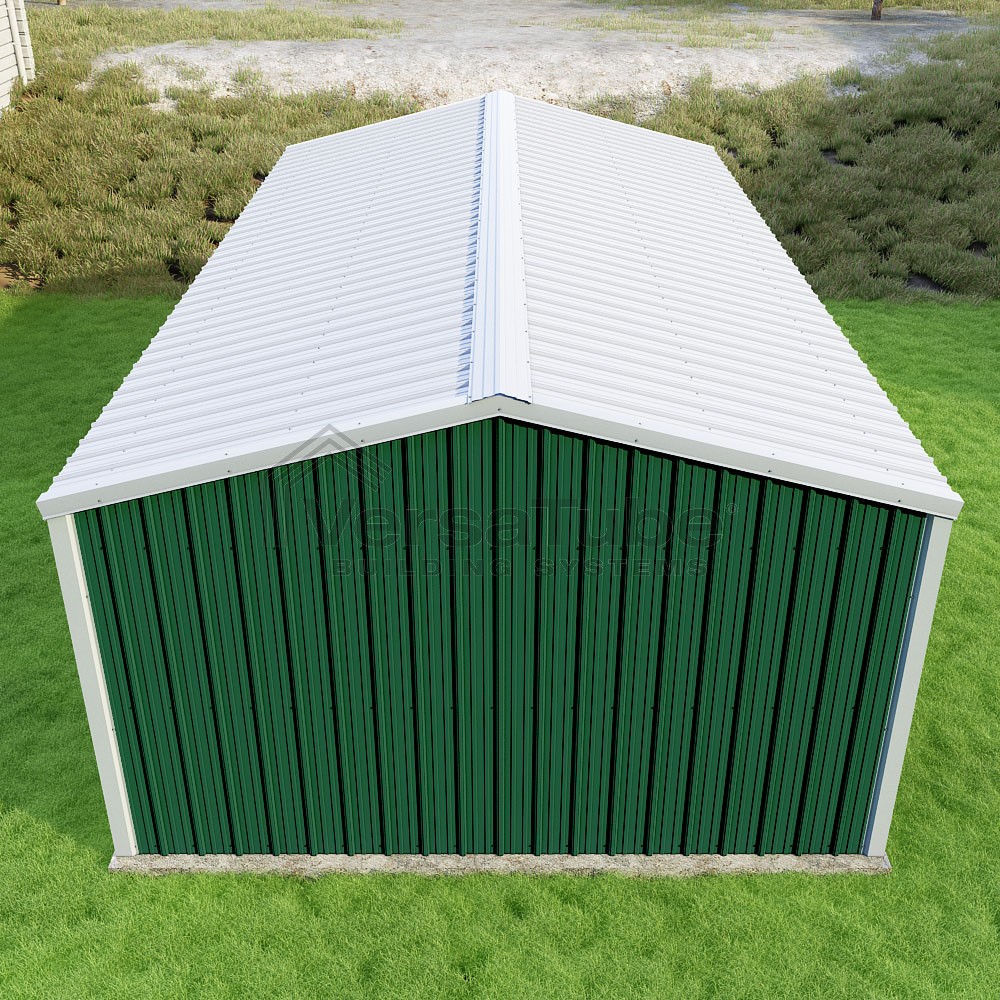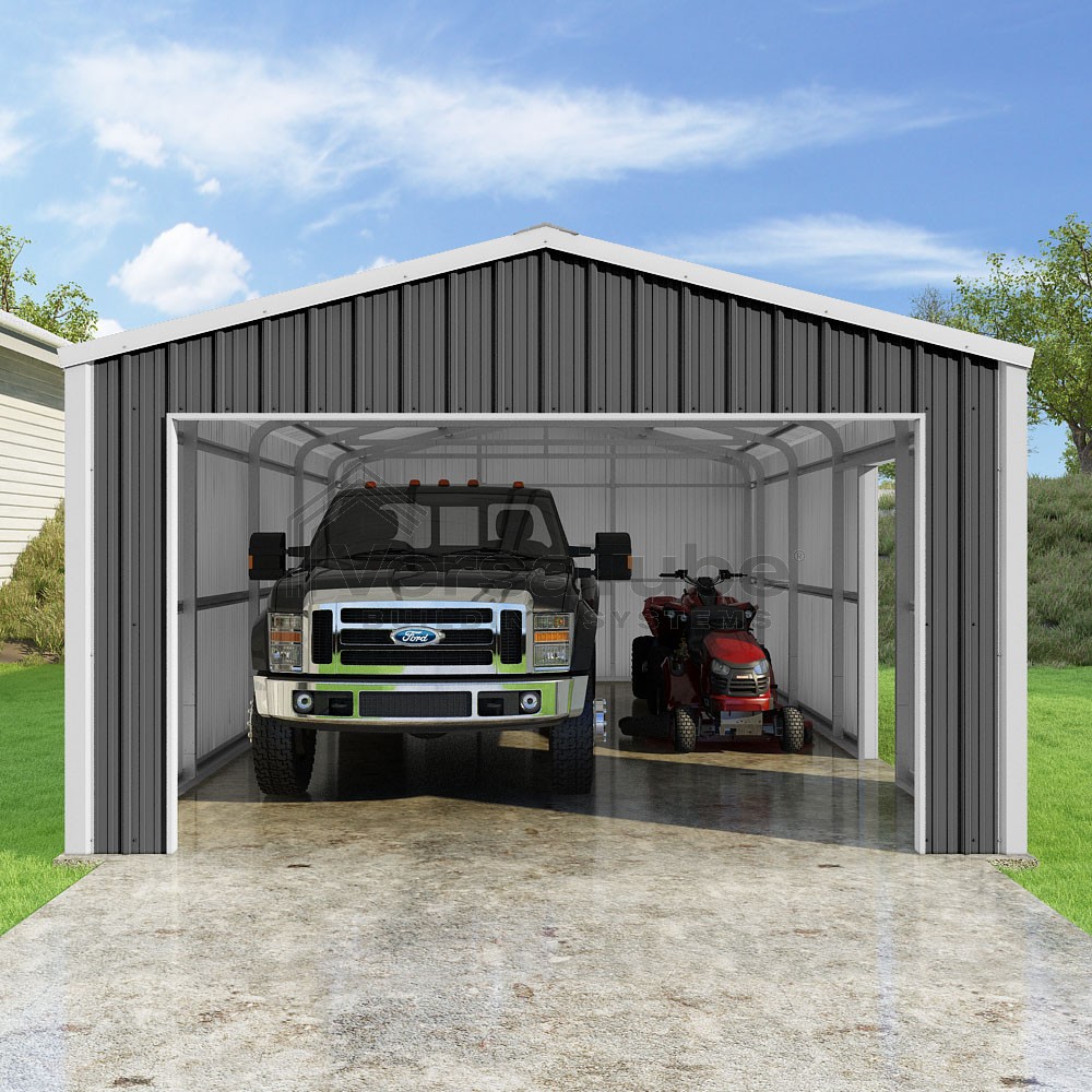 Summit Series DIY garage kit features vertical sheet metal roof and siding panels for a consistent look.