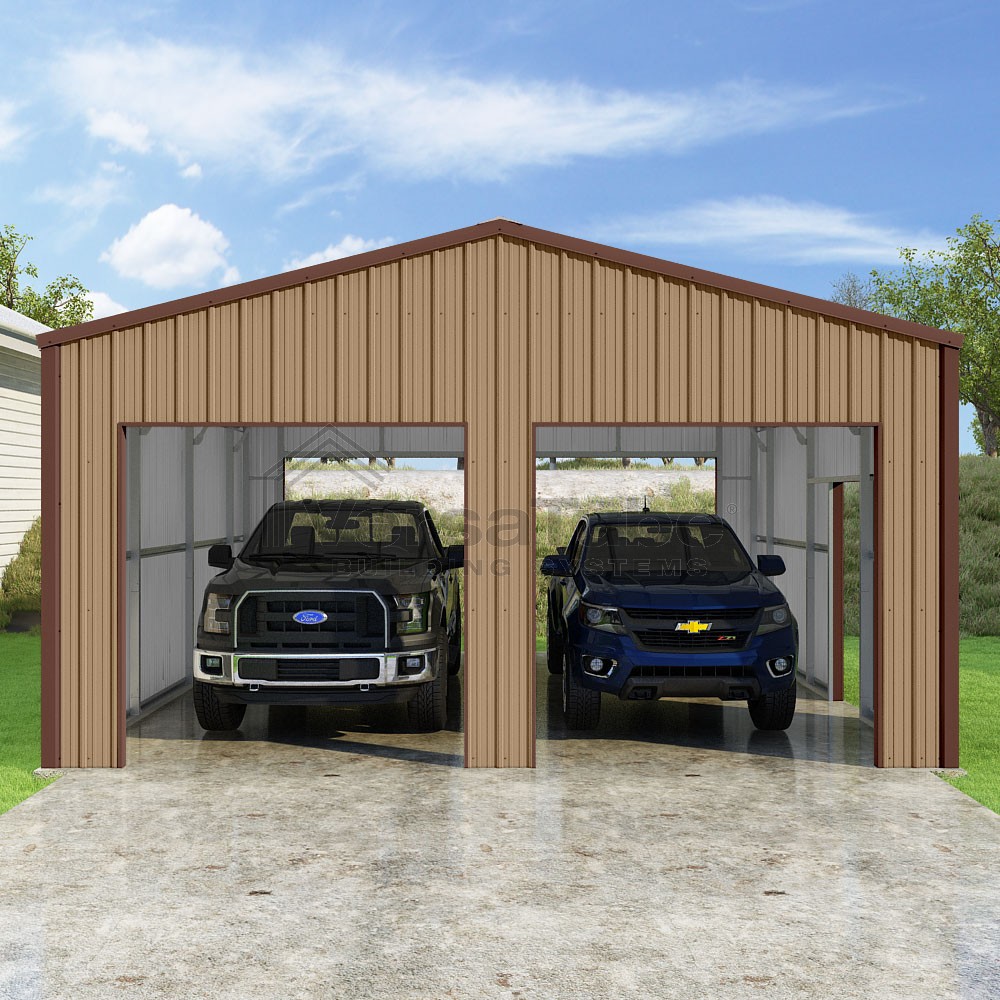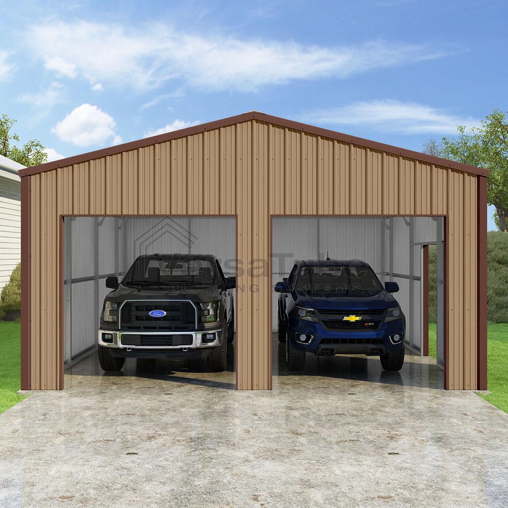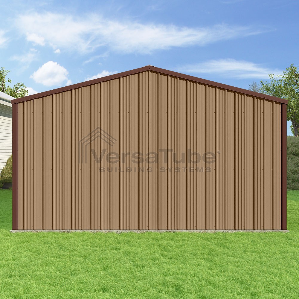 Summit Series DIY garage kit features vertical sheet metal roof and siding panels for a consistent look.