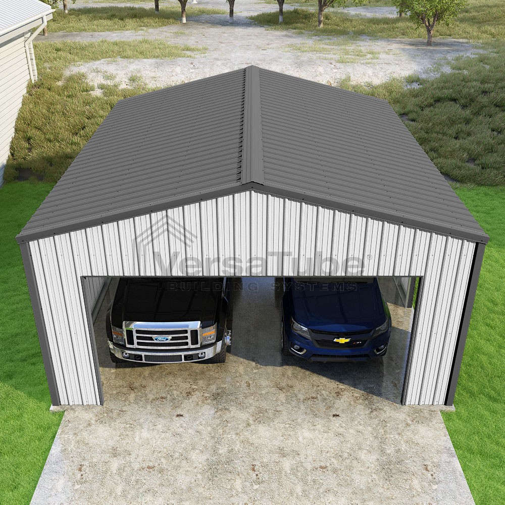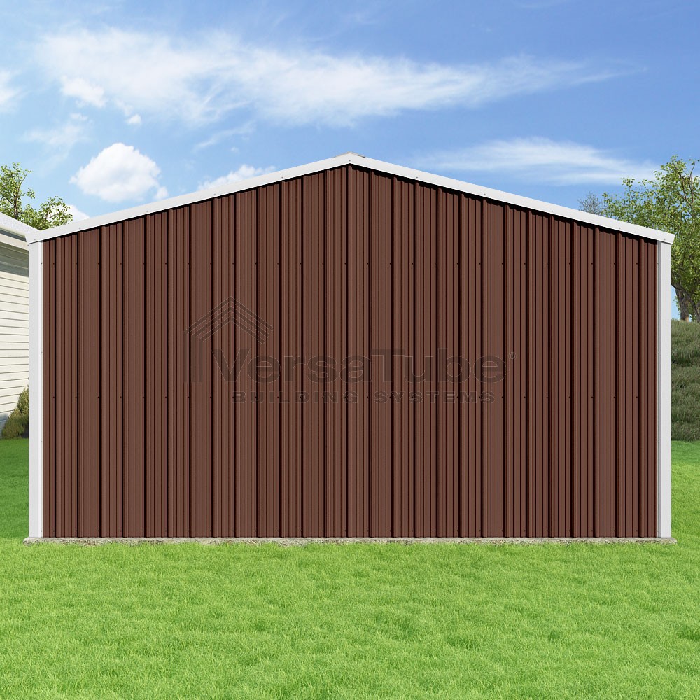 Summit Series DIY garage kit features vertical sheet metal roof and siding panels for a consistent look.
