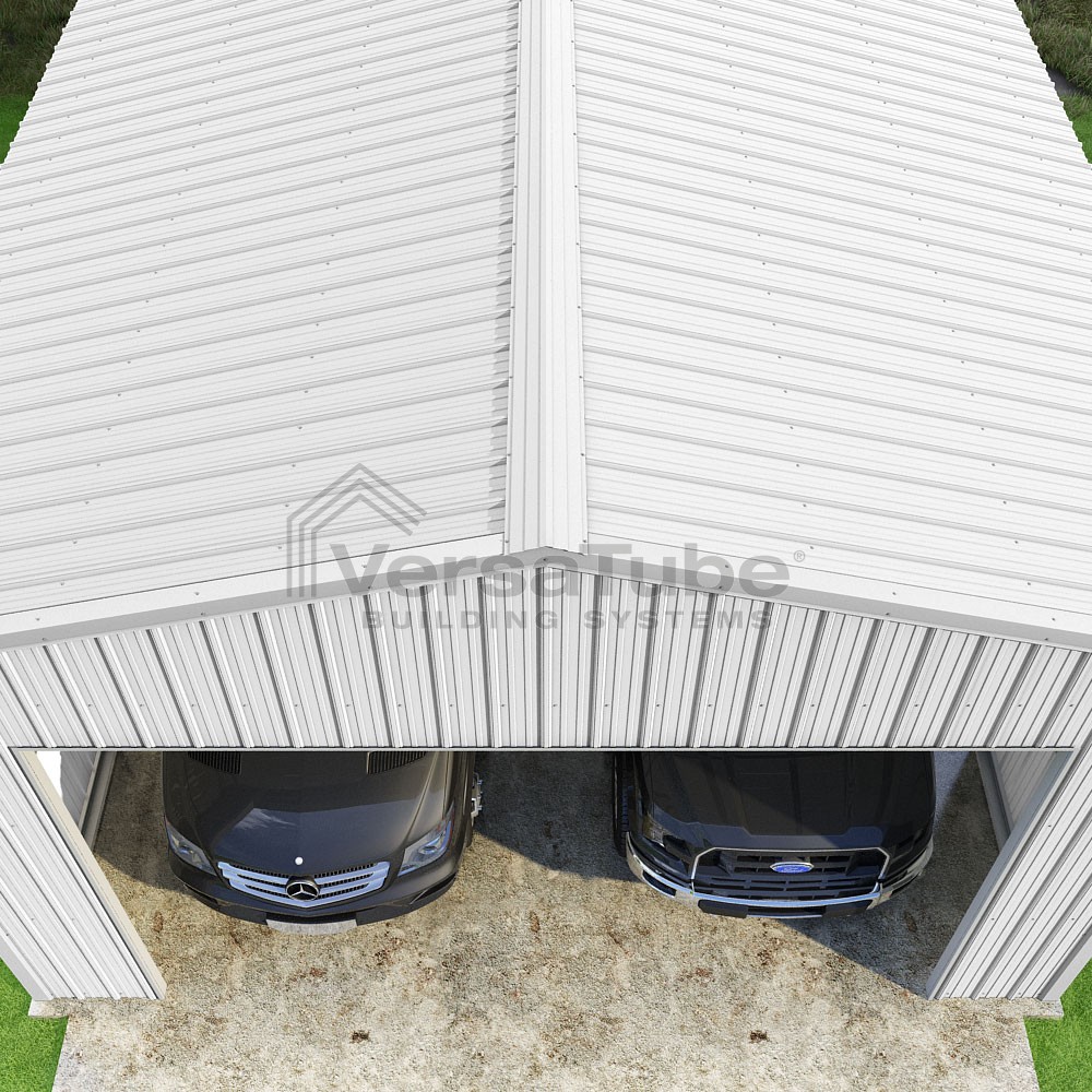 Summit Series DIY garage kit features vertical sheet metal roof and siding panels for a consistent look.
