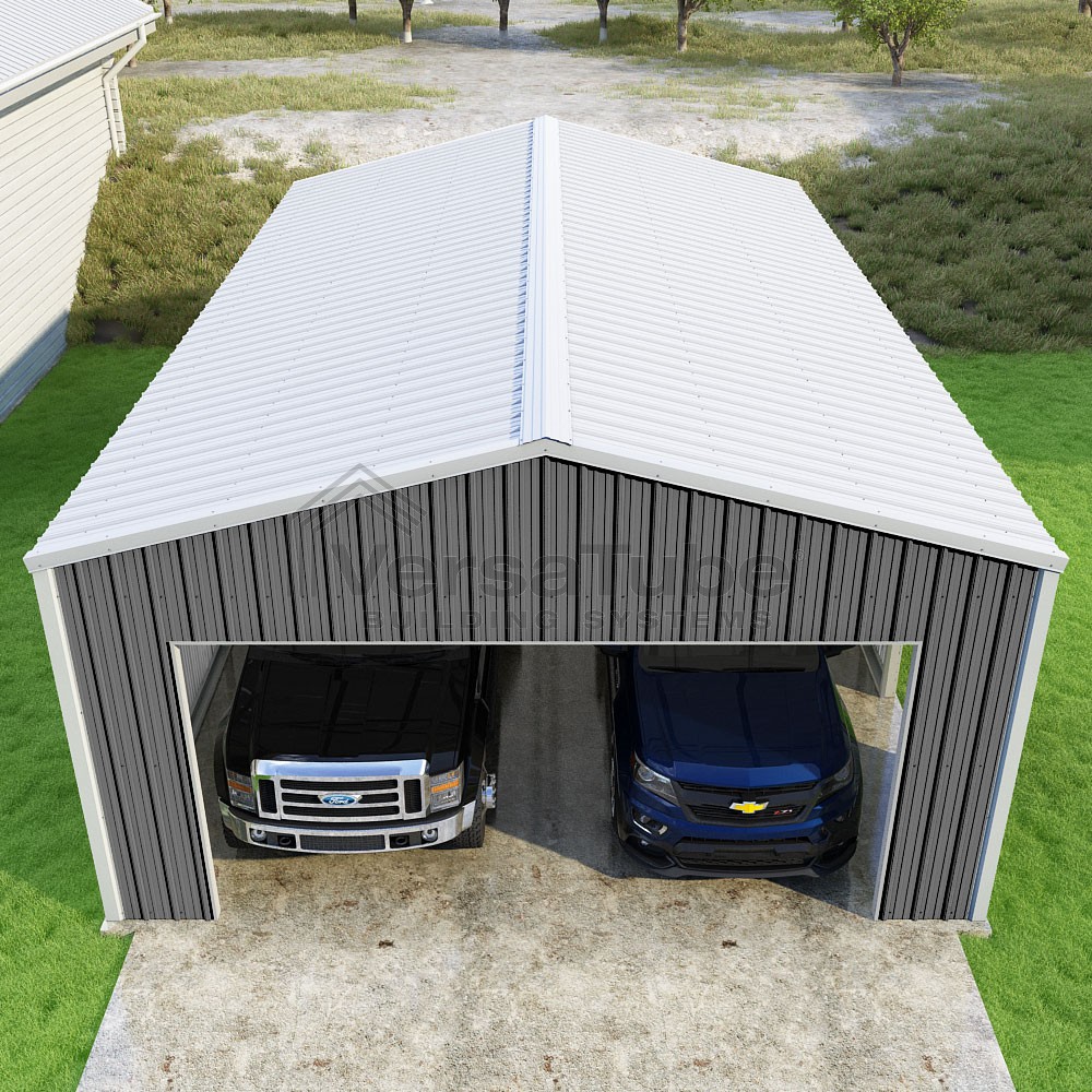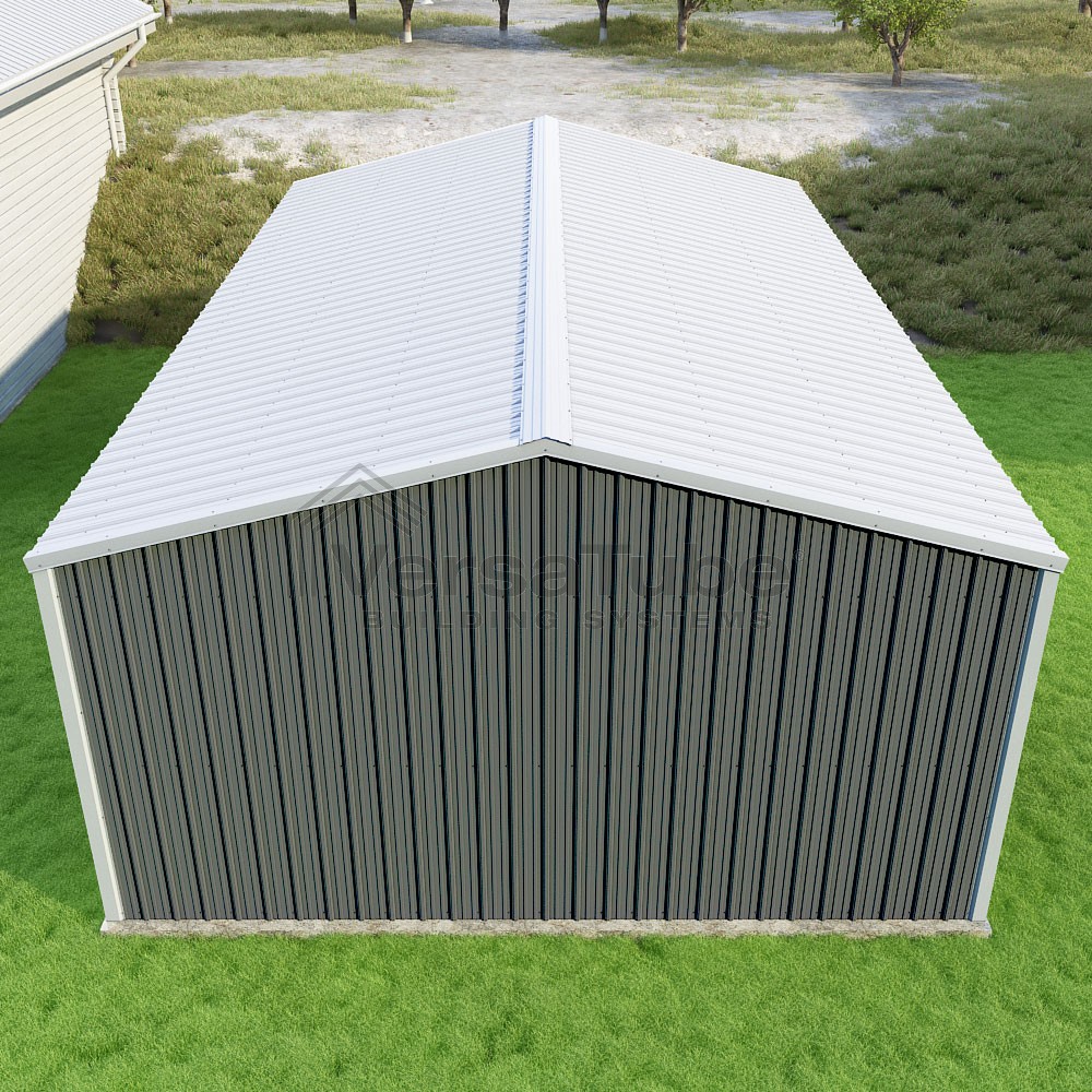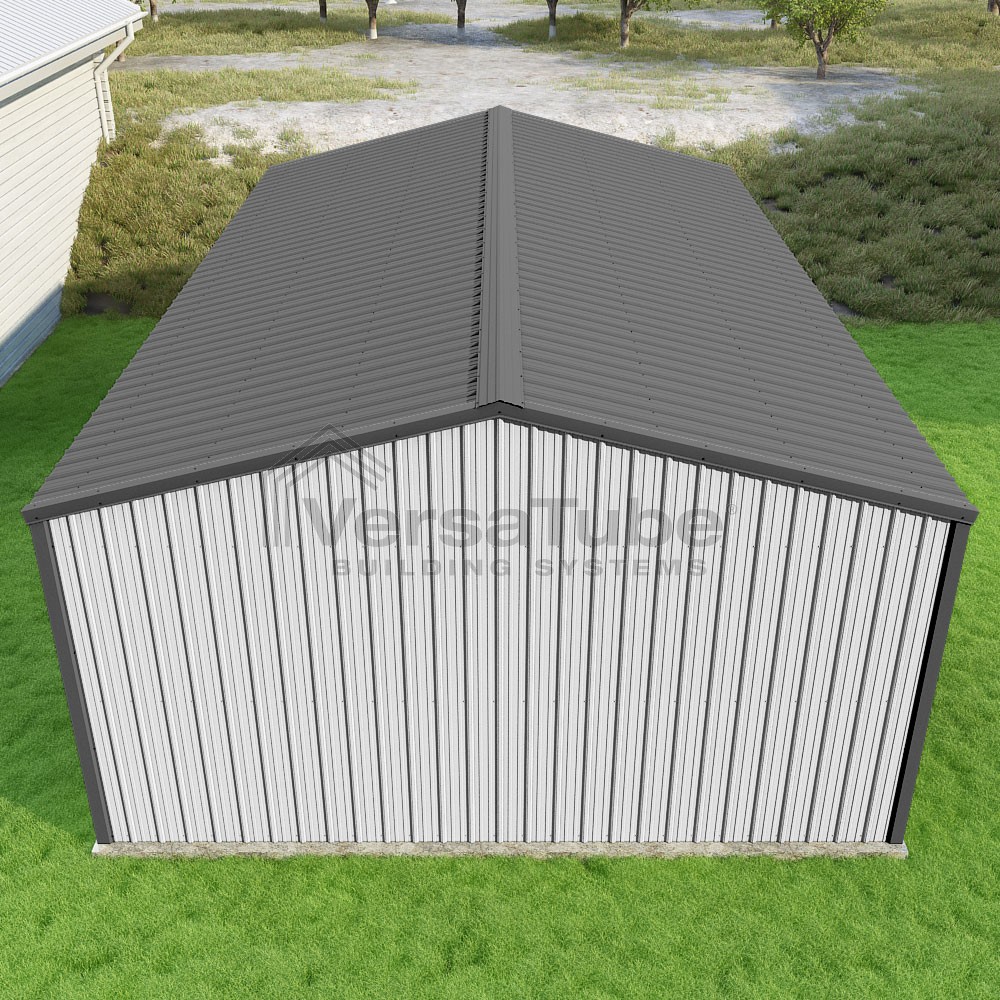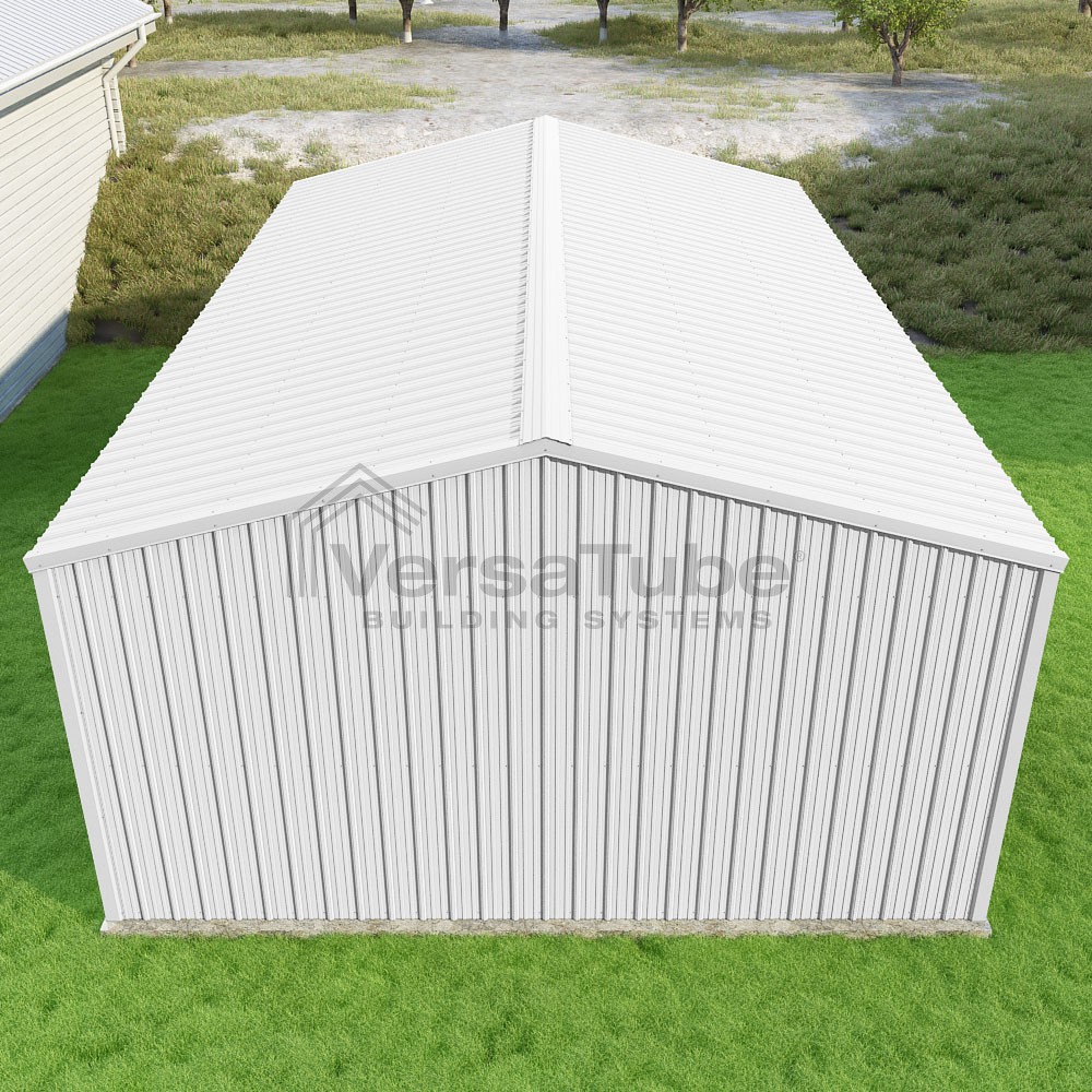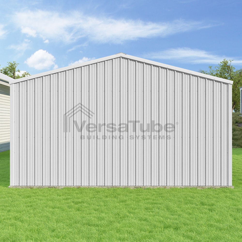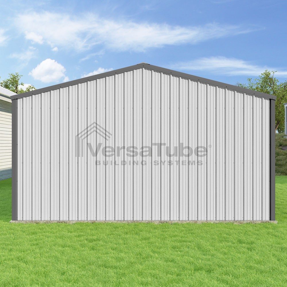Summit Series DIY garage kit features vertical sheet metal roof and siding panels for a consistent look.