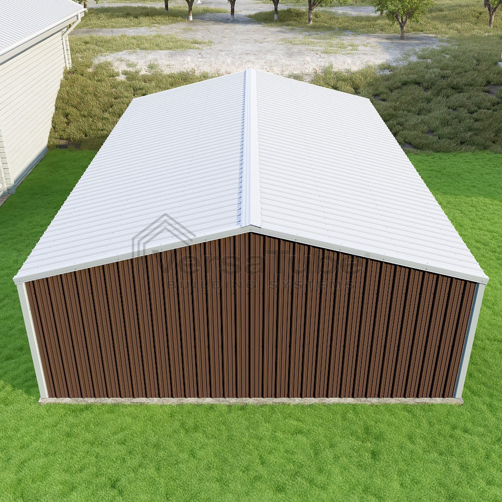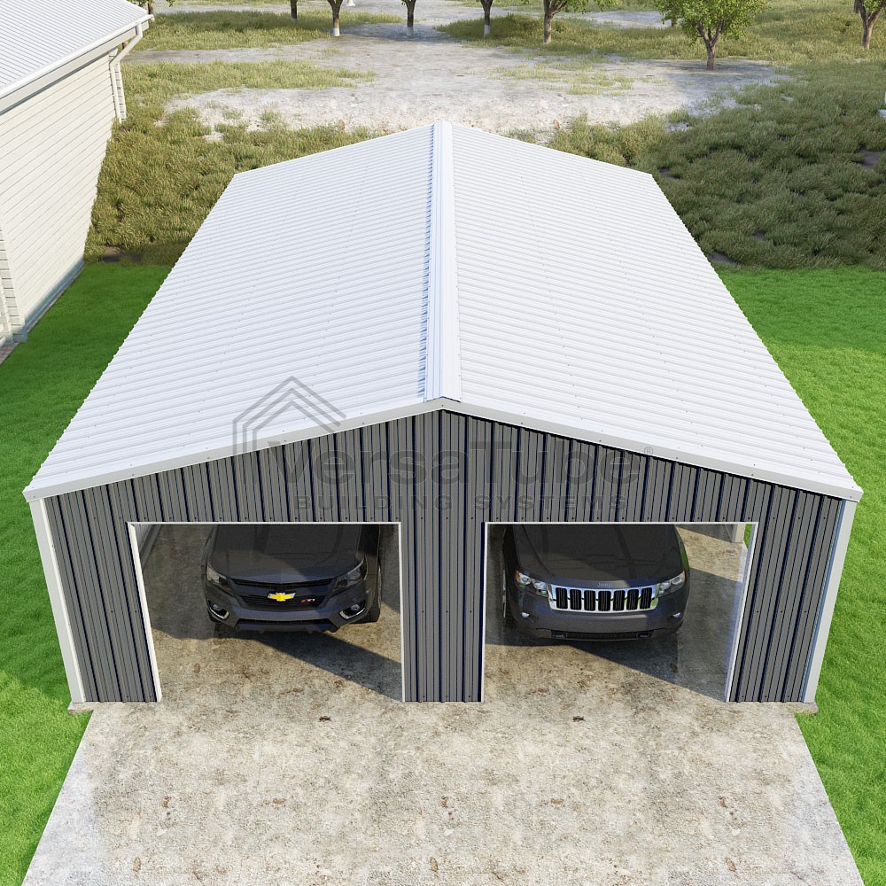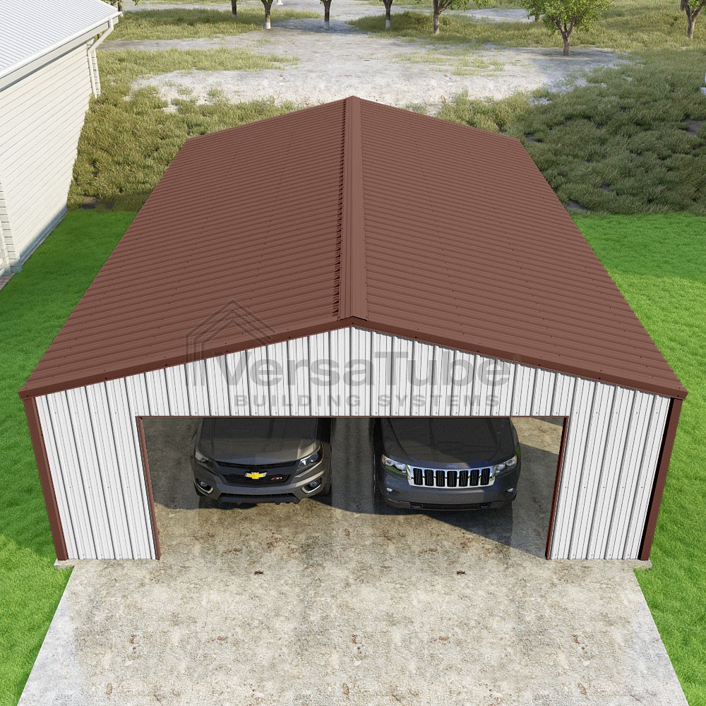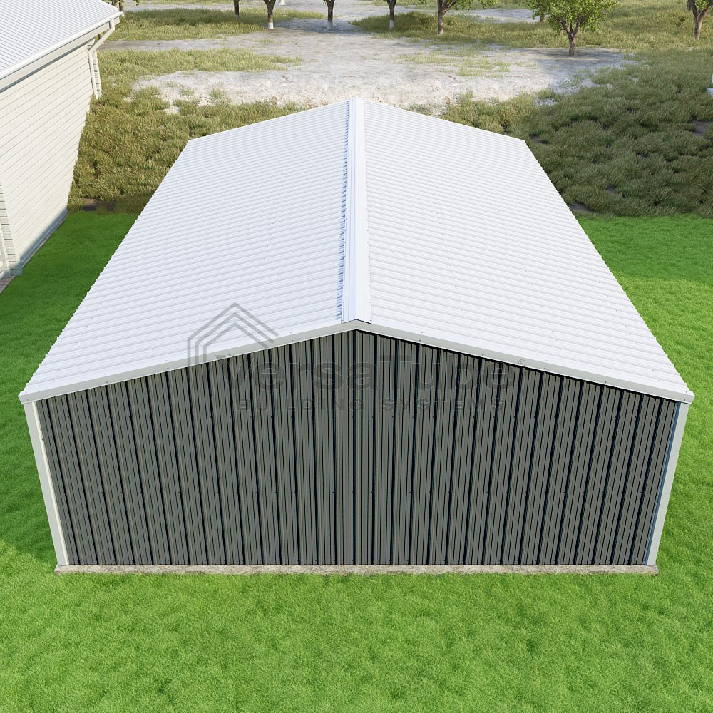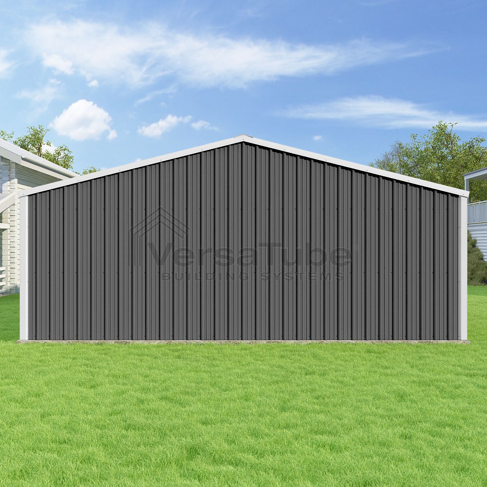 Summit Series DIY garage kit features vertical sheet metal roof and siding panels for a consistent look.