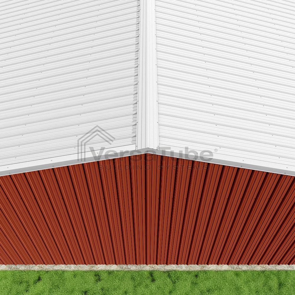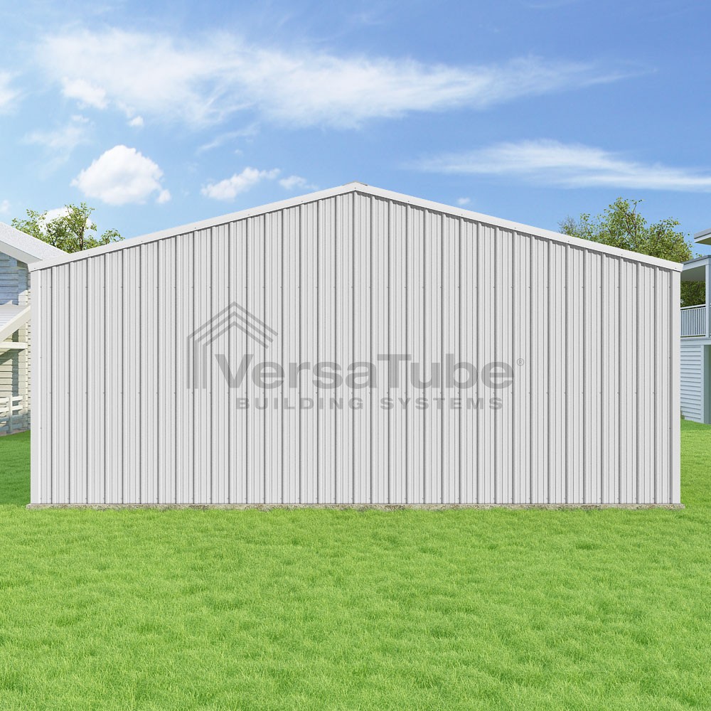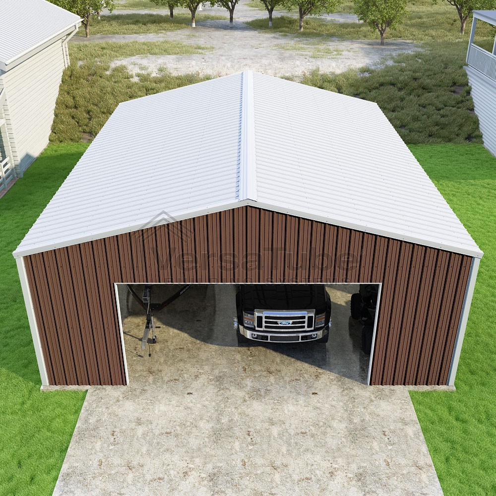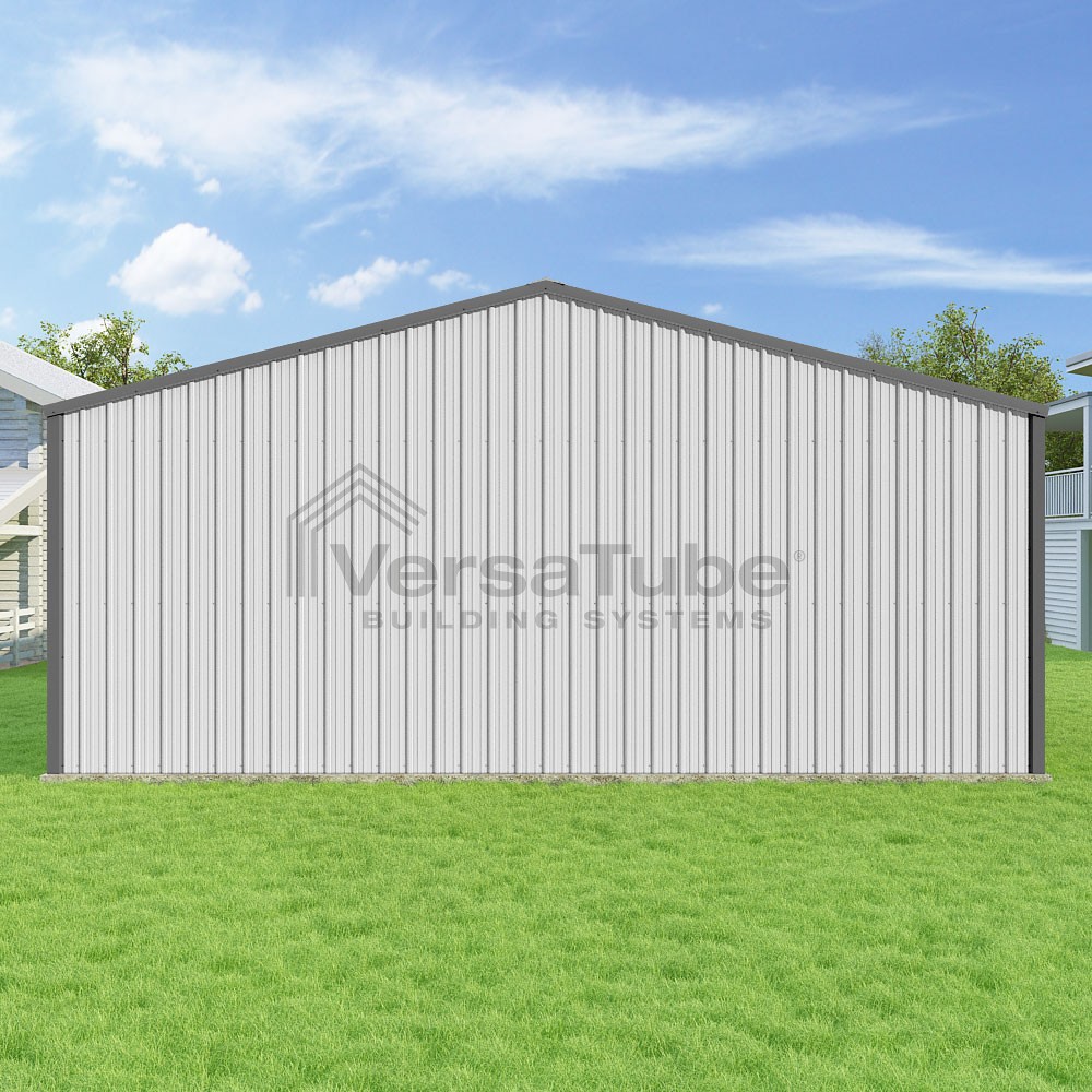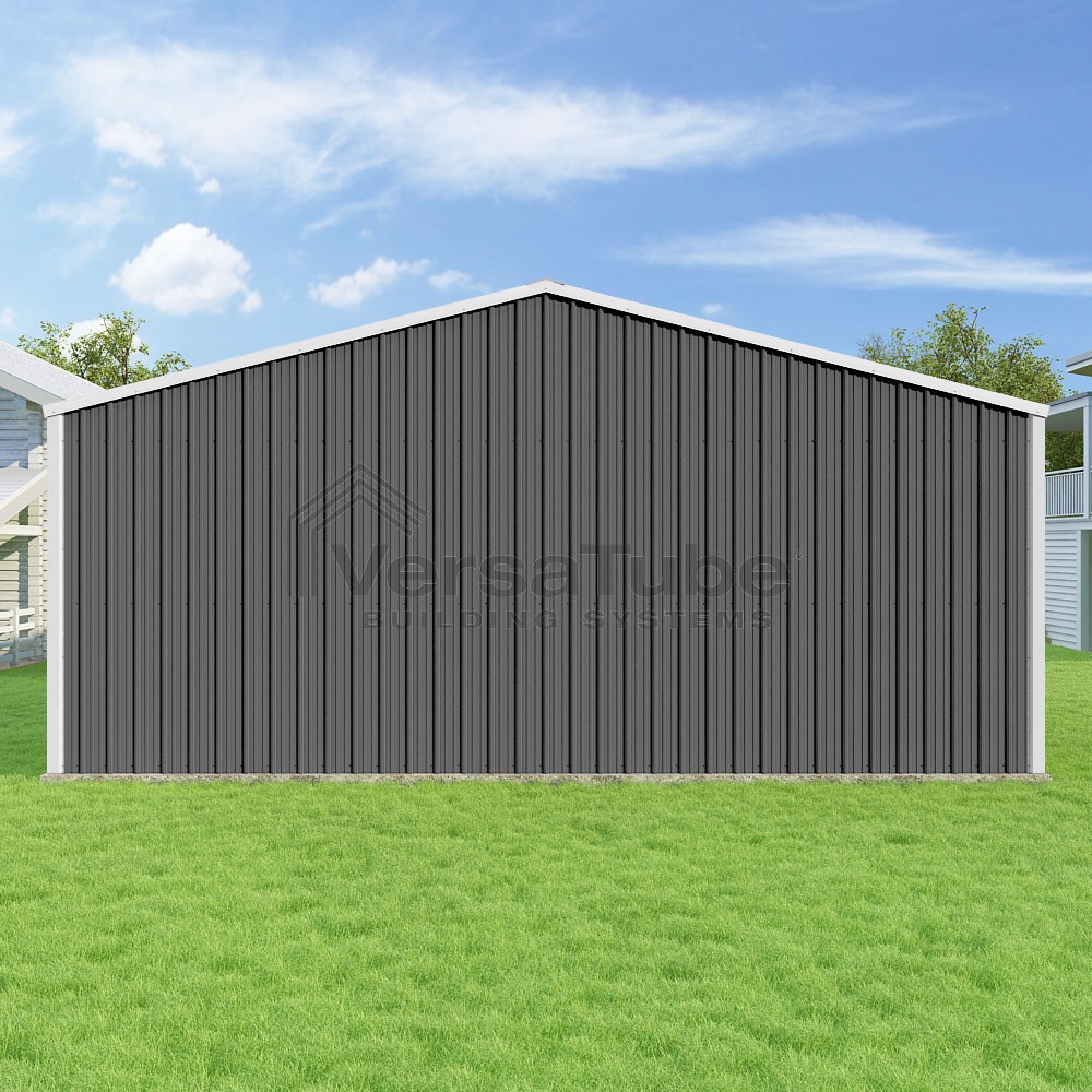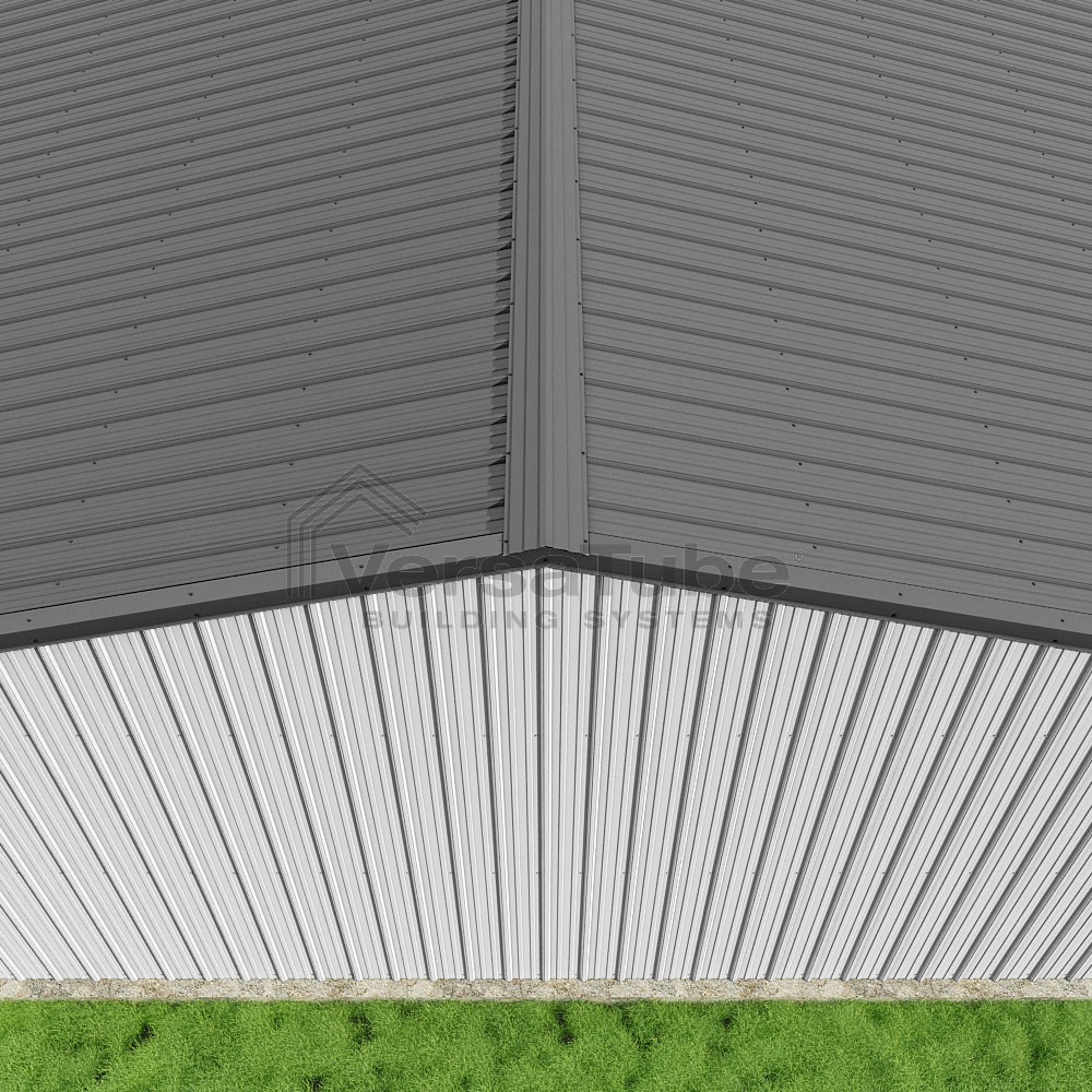 Summit Series DIY garage kit features vertical sheet metal roof and siding panels for a consistent look.