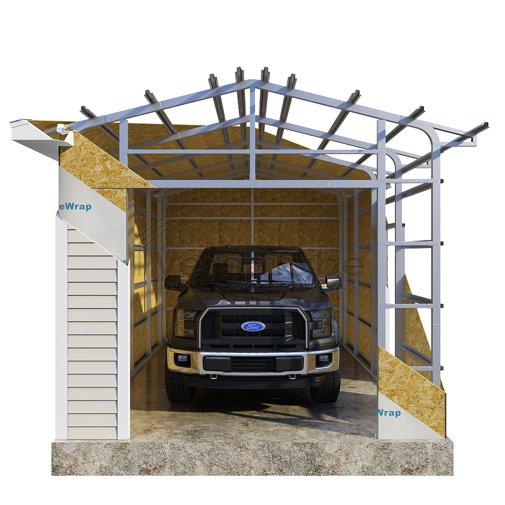 Additional interior truss bracing and 26 gauge sheet metal are available options if you are building in a higher snow load and/or wind load area and local code requirements must be achieved. Call a VersaTube Product Specialist 1-800-810-2993 with your load requirements and questions.
