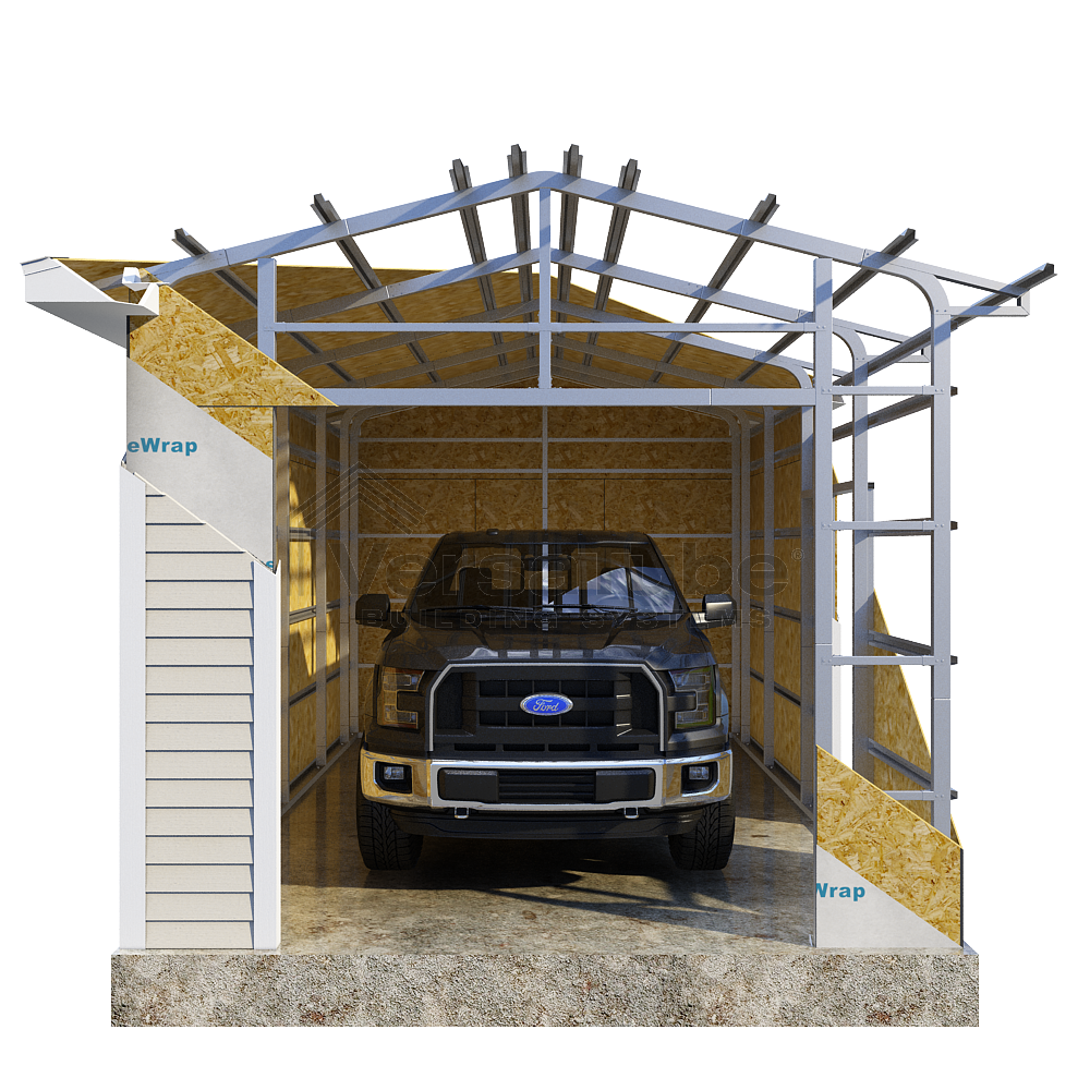 The required side girt components in the Summit design result in a more substantial building frame and allow for the use of plywood or OSB for vinyl or other siding products. And assembly time is drastically reduced with our patented Slip-Fit frame connections.