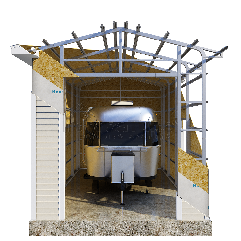 The required side girt components in the Summit design result in a more substantial building frame and allow for the use of plywood or OSB for vinyl or other siding products. And assembly time is drastically reduced with our patented Slip-Fit frame connections.