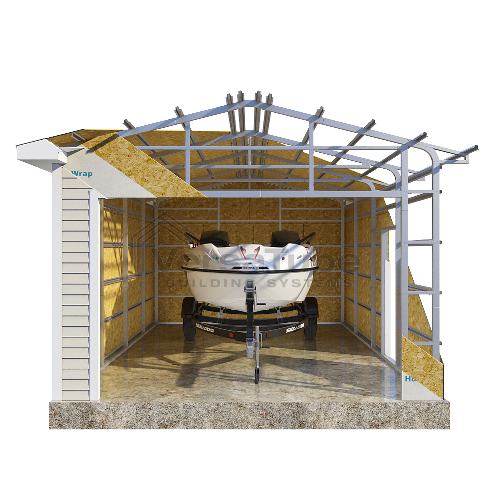 The required side girt components in the Summit design result in a more substantial building frame and allow for the use of plywood or OSB for vinyl or other siding products. And assembly time is drastically reduced with our patented Slip-Fit frame connections.